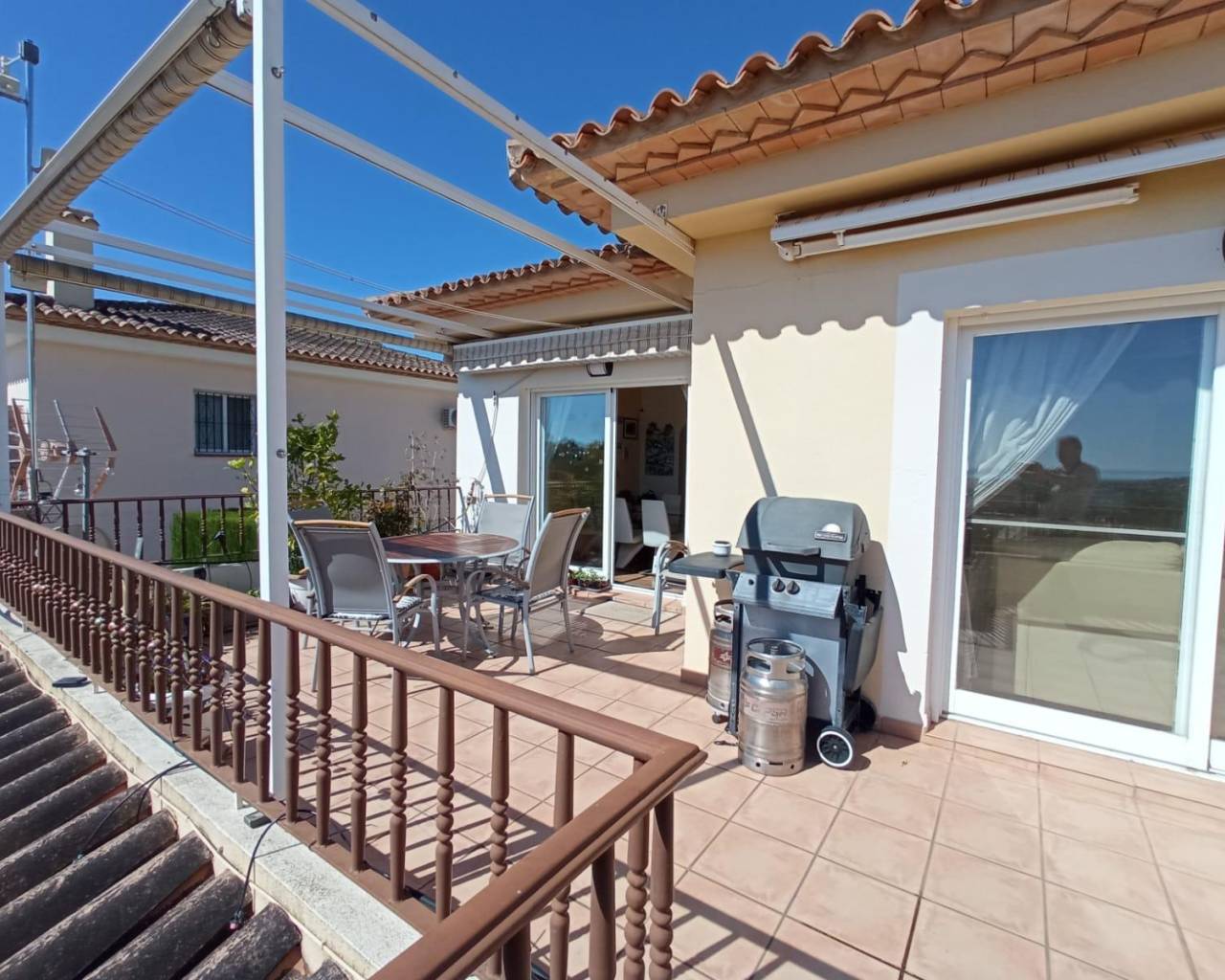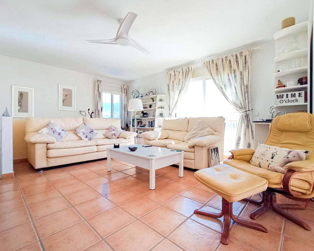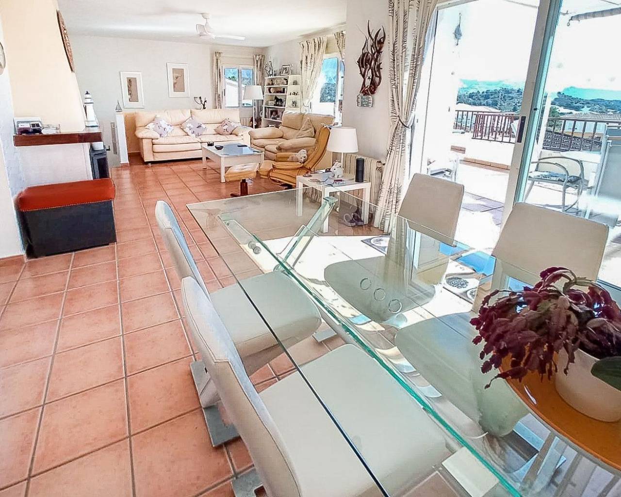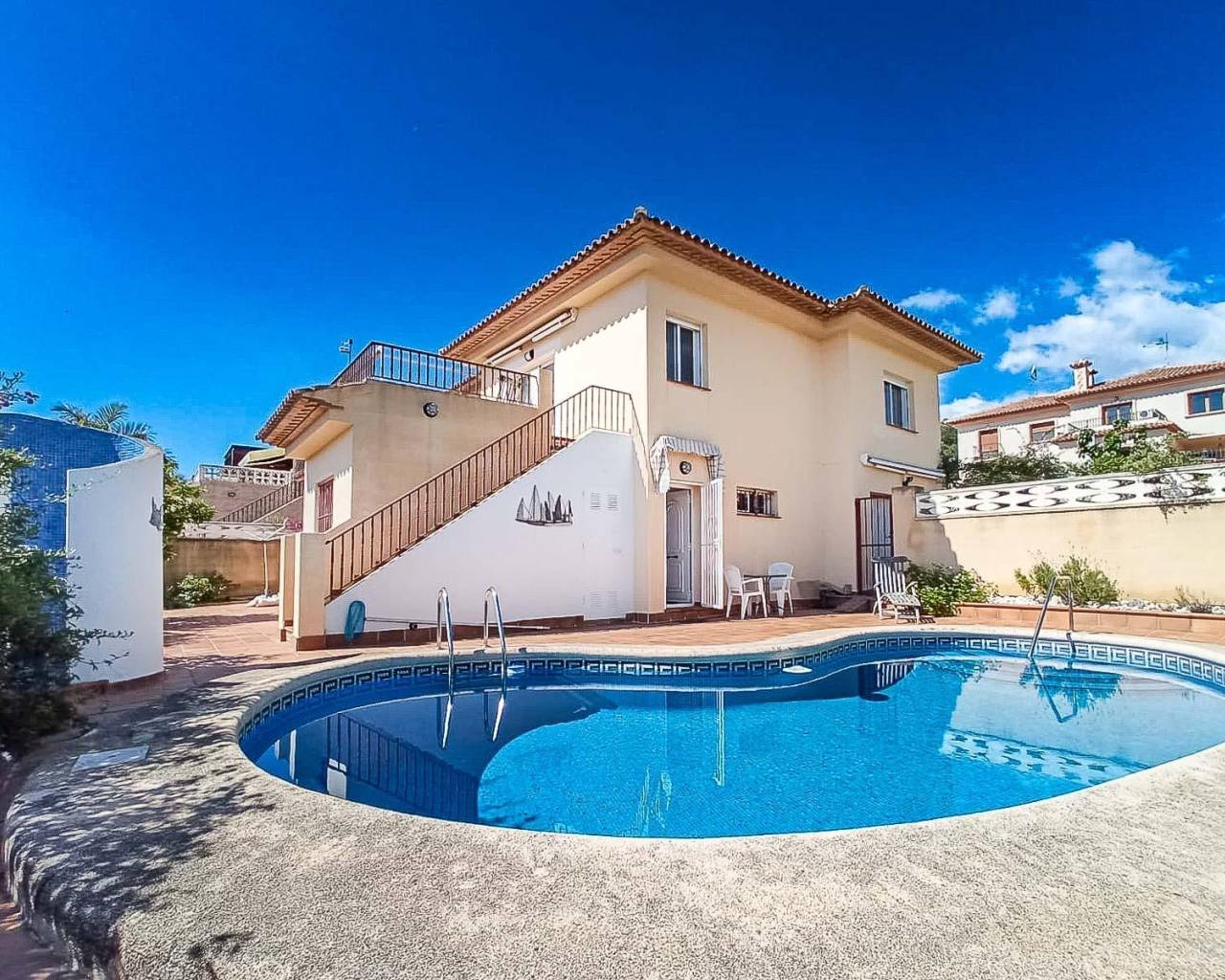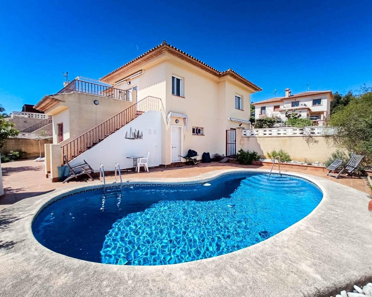 Chalet de 4 dormitorios (dividido en 2 plantas pudiendo hacerse 2 apartamentos independientes) de orientación este con amplia terraza con vistas al mar, la bahia de Altea y Sierra Bernia, garaje, piscina privada y 440m2 de parcela en urbanización tranquila cercana a supermercados.~Este chalet tiene un amplio salón comedor con mucha luz natural ya que da la terraza de impresionantes vistas. En esta planta tenemos la cocina semi-independiente totalmente equipada y amueblada, un aseo de cortesía, la habitación principal con luz natural y armario empotrados y un baño en suite con bañera y ducha aparte.~A la planta inferior se accede por un escalera interior que por un lado da a un pequeños despacho y al garaje / trastero y por otro, a través de una puerta (que podría ser cerrado o incluso tapada) un apartamento de 3 dormitorios, salón, baño completo y puerta independiente al exterior. Todas las habitaciones tienen luz natural. La principal con armario empotrado, una segunda con cama simple y armario empotrado y una tercera, con cristalera directa al patio y al jardín.~La parcela de 440m2 incluye la piscina, zona de patio, jardines y parking en bajada al garaje con puerta automática y portón eléctrico.~La vivienda esta situada entre Altea y La Nucía, en la misma calle hay un supermercado y otro establecimiento cerca.~A cinco minutos en coche está el centro de Altea, y Alfaz y La Nucía a 10 minutos.~~~~