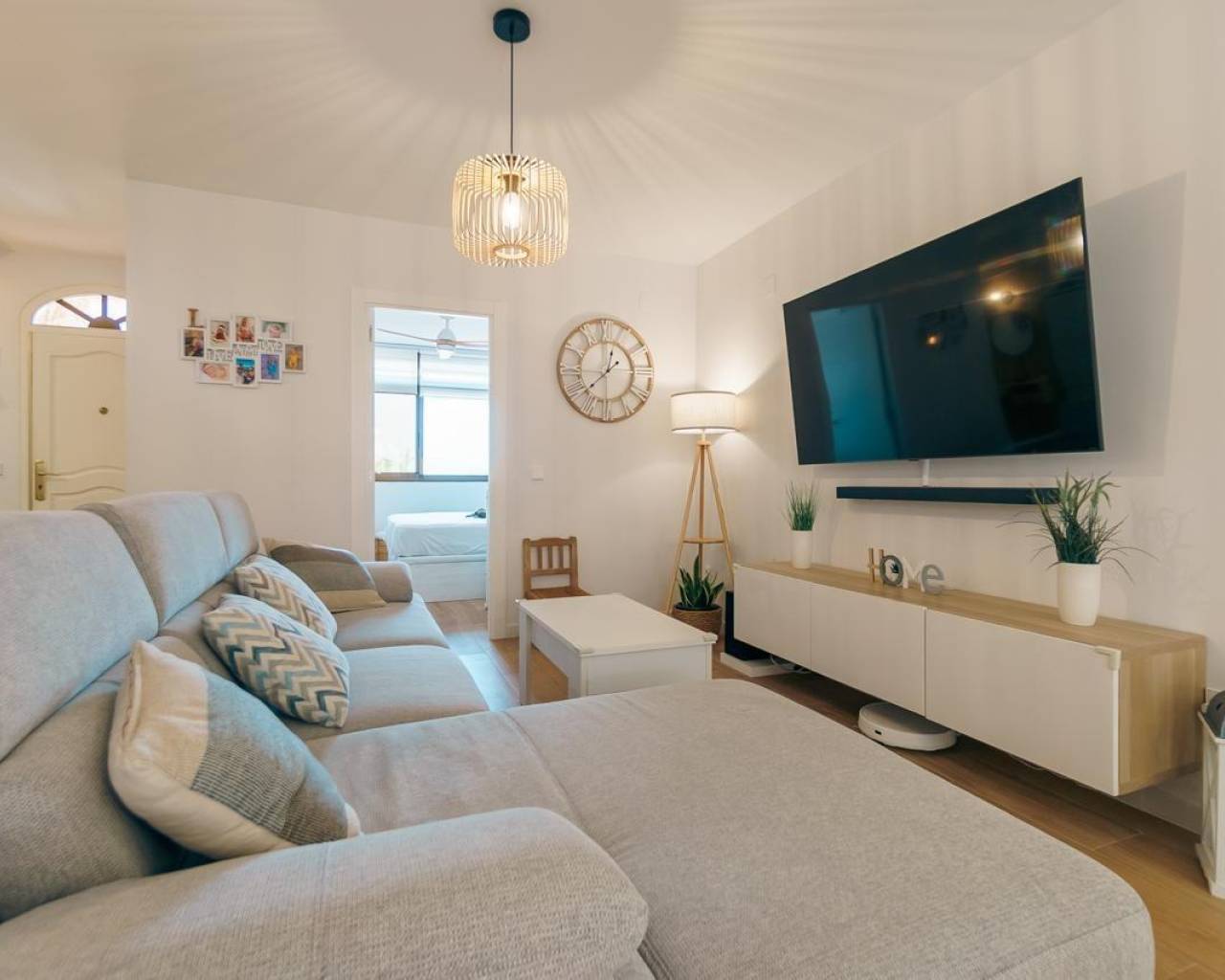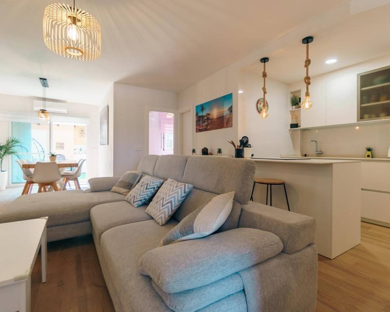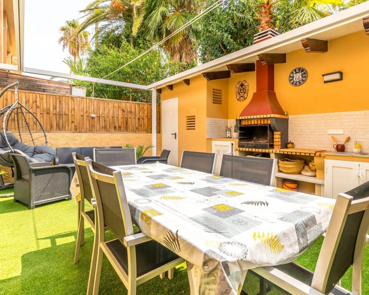 Apartamento reformado en planta baja con un dormitorio doble y uno sencillo, salón comedor, cocina tipo americana y un amplio patio exterior con barbacoa en urbanización muy cuidada con gran piscina comunitaria, jardines y zonas comunes.~Situado a sólo 900m del centro del Albir y a poco más de 1km de la playa, este apartamento totalmente reformado es muy luminoso y al estar en la planta baja tiene la ventaja de un patio exterior y acceso fácil.~Tiene un dormitorio doble con aseo en suite, armario empotrado y luz natural. El segundo dormitorio es sencillo y también tiene armario empotrado y luz natural.~El salón comedor de directamente al patio exterior, lo cual lo dota de mucha luminosidad y la cocina es tipo americana con electrodomésticos de primeras marcas.~El patio exterior es amplio y tiene una zona para comer fuera y barbacoa.~Se encuentra en una urbanización muy cuidada con varias zonas verdes y comunes así como una gran piscina comunitaria.~~