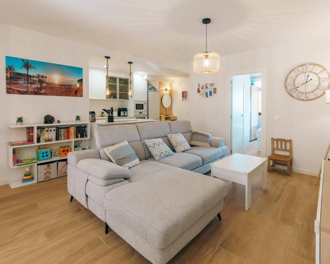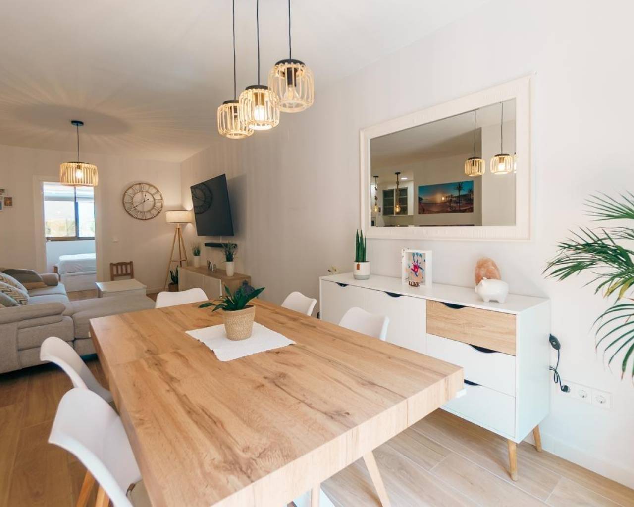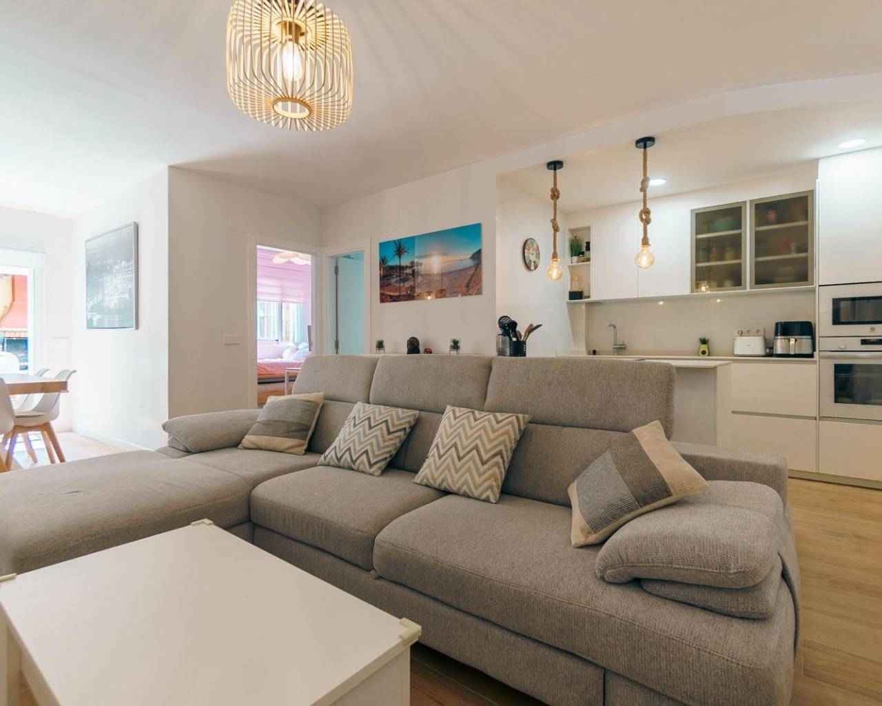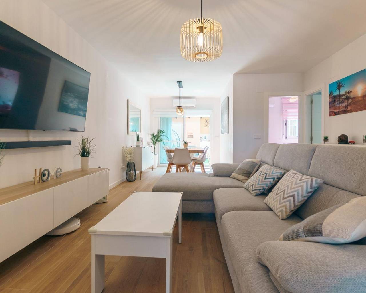 Apartamento reformado en planta baja con un dormitorio doble y uno sencillo, salón comedor, cocina tipo americana y un amplio patio exterior con barbacoa en urbanización muy cuidada con gran piscina comunitaria, jardines y zonas comunes.~Situado a sólo 900m del centro del Albir y a poco más de 1km de la playa, este apartamento totalmente reformado es muy luminoso y al estar en la planta baja tiene la ventaja de un patio exterior y acceso fácil.~Tiene un dormitorio doble con aseo en suite, armario empotrado y luz natural. El segundo dormitorio es sencillo y también tiene armario empotrado y luz natural.~El salón comedor de directamente al patio exterior, lo cual lo dota de mucha luminosidad y la cocina es tipo americana con electrodomésticos de primeras marcas.~El patio exterior es amplio y tiene una zona para comer fuera y barbacoa.~Se encuentra en una urbanización muy cuidada con varias zonas verdes y comunes así como una gran piscina comunitaria.~~