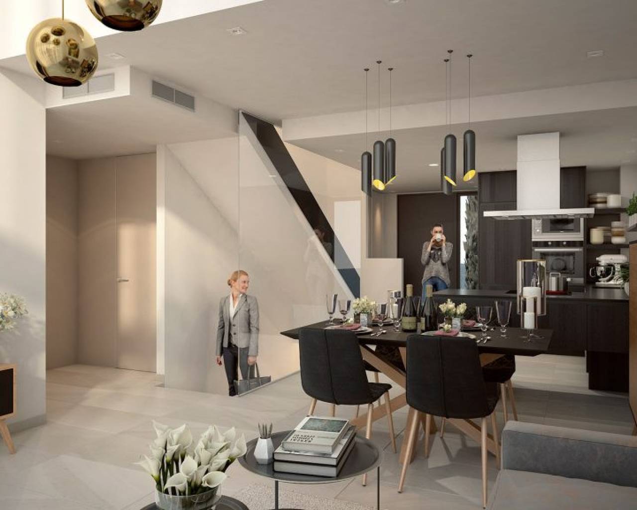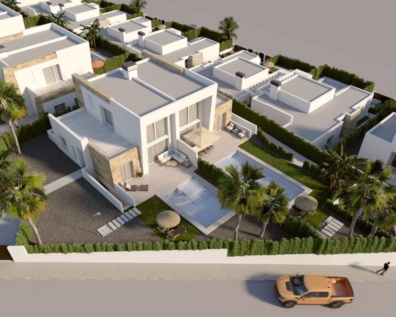 Estas magníficas casas adosadas se encuentran en nuestra nueva urbanización Mar Egeo, ubicada en una de las zonas más exclusivas y privilegiadas de la Costa Blanca Sur, rodeada de naturaleza y tranquilidad. Esta impresionante casa de dos plantas ofrece un diseño perfectamente organizado, pensado para proporcionar comodidad y funcionalidad en cada uno de sus espacios. En la primera planta, se encuentra un luminoso salón que conecta con el comedor y la cocina con barra de desayuno, creando un ambiente amplio para recibir a familiares y amigos. Desde el salón accedemos a un gran jardín con piscina privada. También cuenta con dos dormitorios y un baño completamente equipado con lavabo, espejo, mampara de ducha y calefacción por suelo radiante para mayor comodidad. En la segunda planta se encuentra el dormitorio principal con vistas panorámicas al exterior, baño privado y acceso al solárium. Además, cada dormitorio incluye grandes armarios para maximizar el espacio de almacenamiento. Este modelo de vivienda ofrece 2 opciones, Leros y Leros Plus, siendo esta última con un gran sótano. En resumen, esta vivienda presenta un diseño inteligente y equilibrado, perfecto para acomodar a una gran familia en un solo espacio sin sacrificar comodidad y estilo.