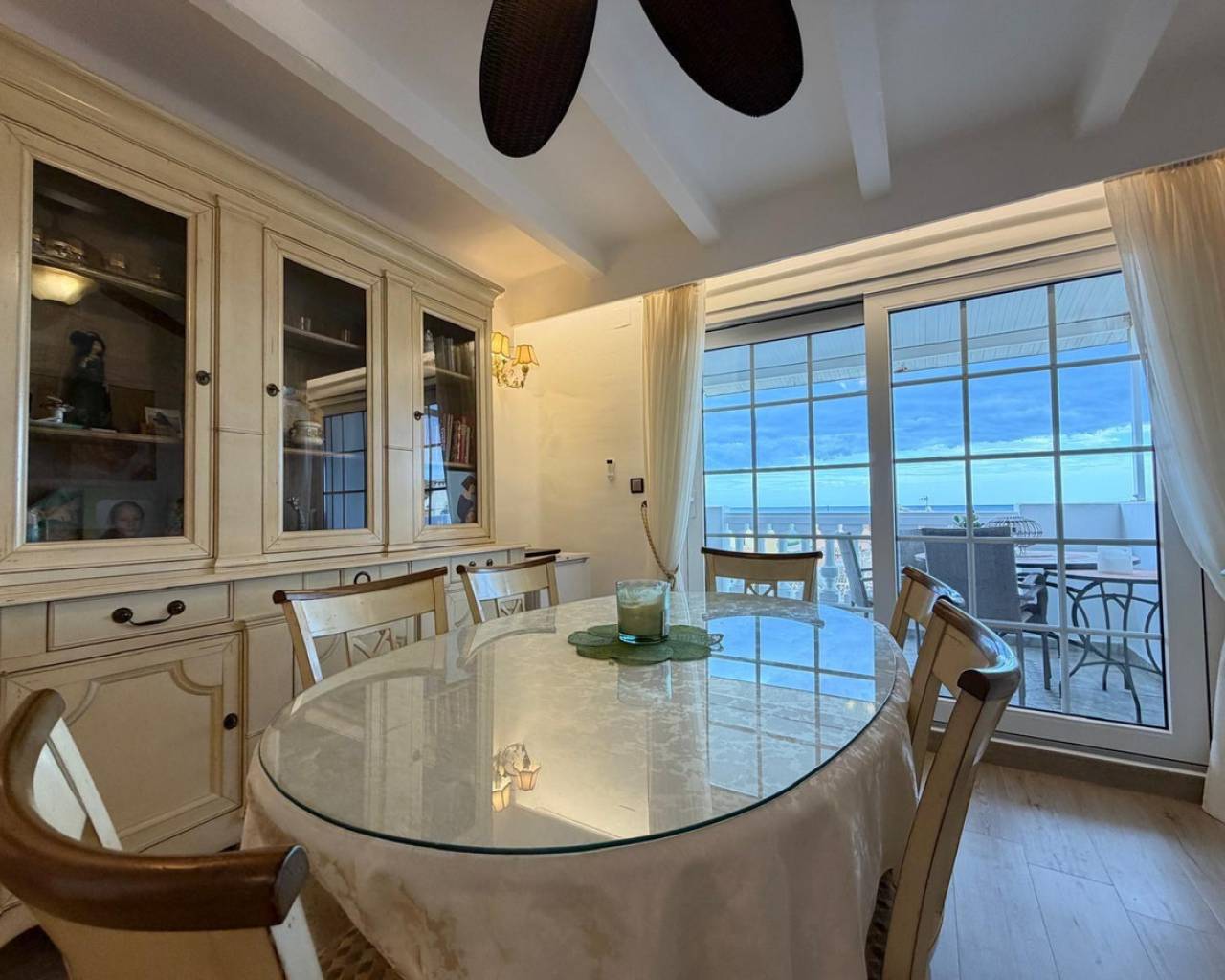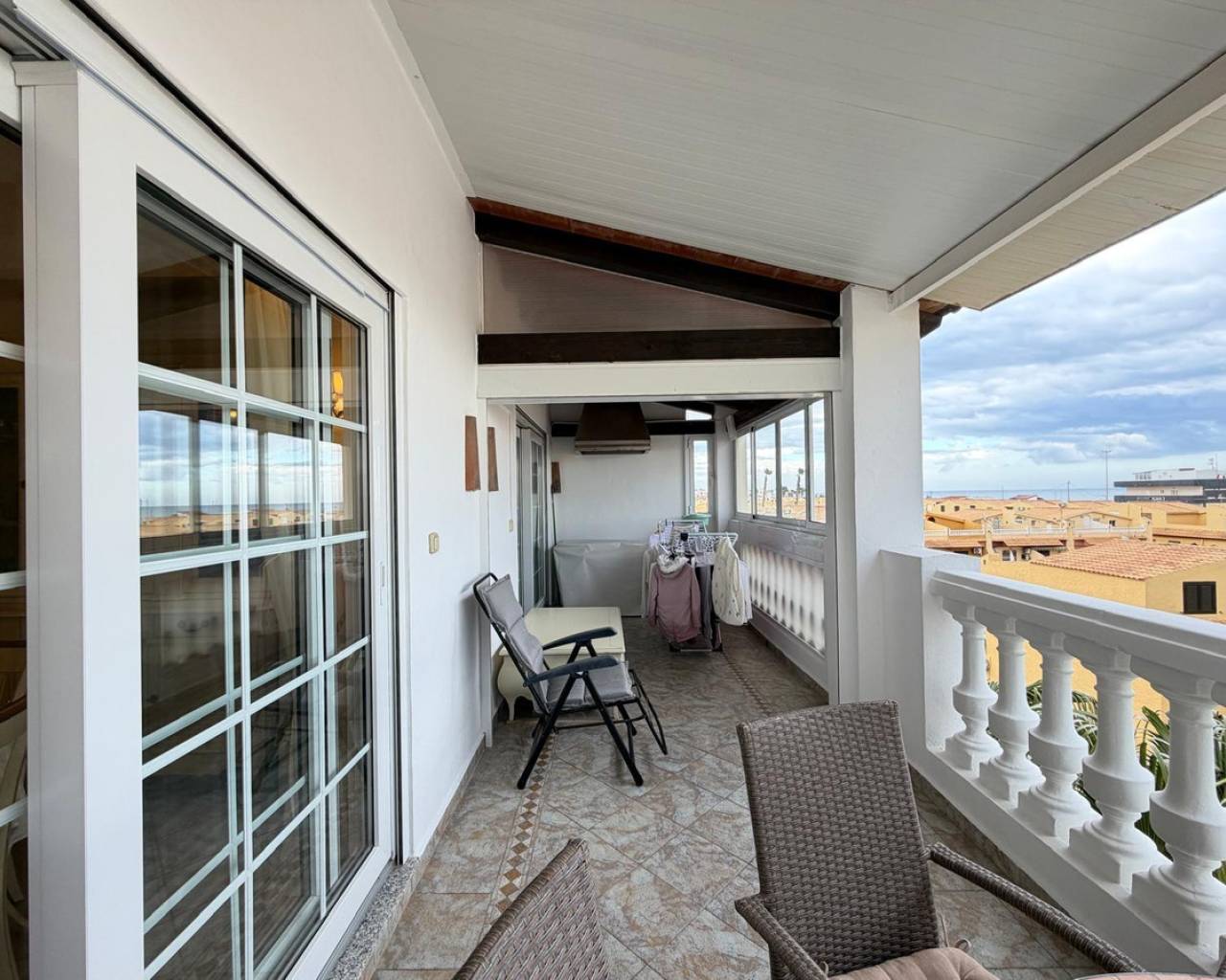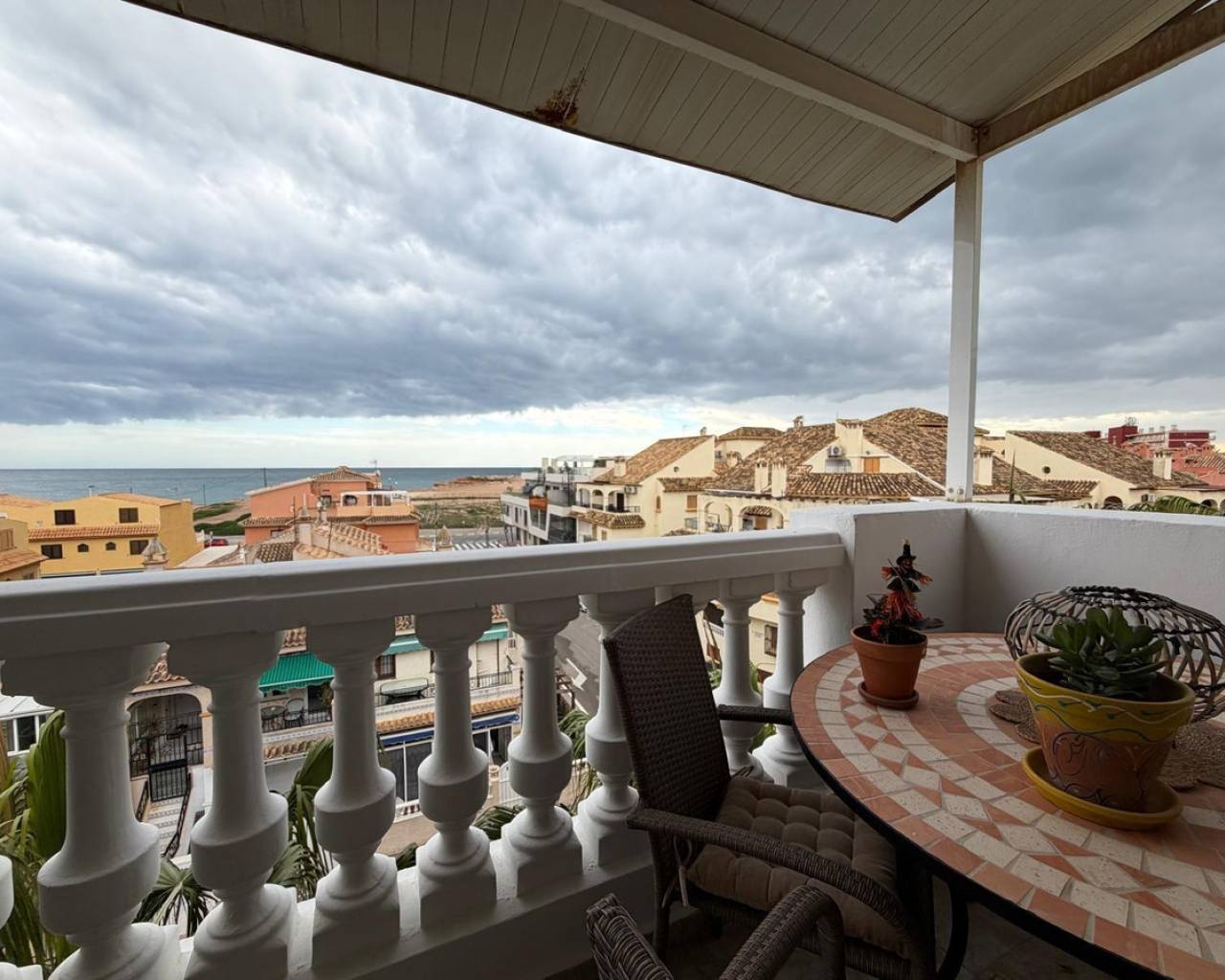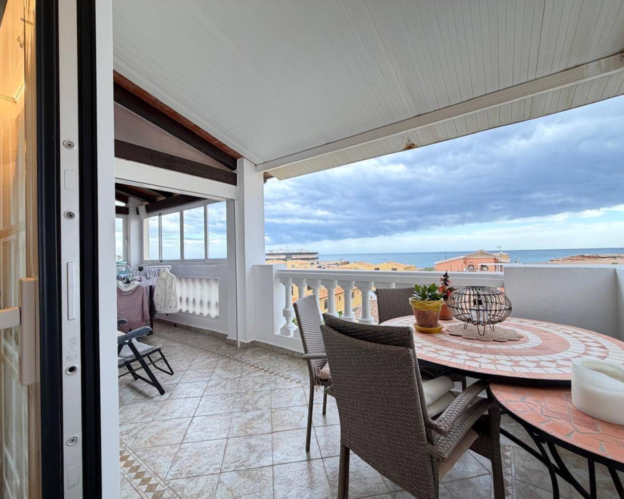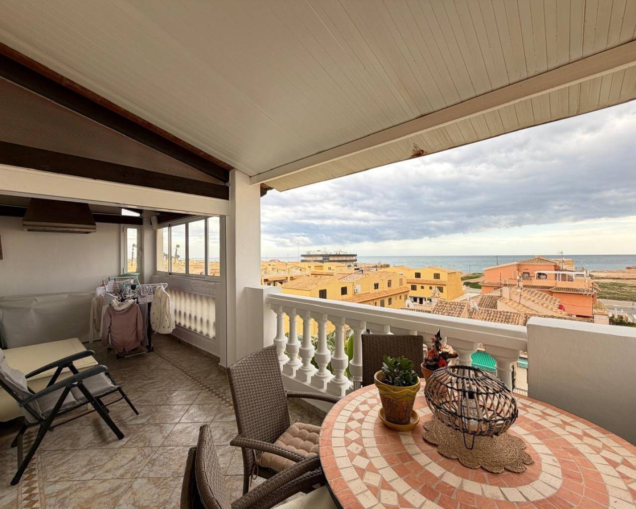 ÁTICO EN ALDEA DEL MAR — TORREVIEJASe vende exclusivo ático situado en uno de los complejos residenciales más prestigiosos de Torrevieja — Aldea del Mar, a tan solo 100 metros de la playa.???? Sobre el residencial Aldea del MarAldea del Mar es un complejo cerrado de estilo mediterráneo, conocido por su cuidada zona ajardinada, jardines tropicales y una espectacular piscina comunitaria. Ofrece un ambiente tranquilo y exclusivo, siendo una de las urbanizaciones más valoradas tanto para vivir como para invertir.Año de construcción: 2000.???? Características de la vivienda•Superficie total: 135 m²•3 dormitorios•3 baños•Terraza acristalada de 20 m²•Solárium privado•Vistas panorámicas al mar y a la ciudad•Distancia a la playa: 100 m???? Estado y mejoras (tras la reforma)La vivienda ha sido reformada integralmente y se encuentra en excelente estado:•Suelo radiante en los tres baños•Chimenea de leña en funcionamiento•Sistema de climatización Airzone•Ventanas nuevas (instaladas en abril del año pasado)•Reforma estética en toda la vivienda•Iluminación decorativa en todas las estancias•Zona de barbacoa con sistema de extracción en la terraza•Uno de los baños dispone de bañera con jacuzzi???? Reforma finalizada en diciembre.???? EquipamientoLa propiedad se vende totalmente amueblada, incluyendo muebles, electrodomésticos y elementos decorativos:•Lavadora•Lavavajillas•Placa de cocción Gaggenau•Frigorífico y congelador Smeg???? Extras incluidos•Plaza de aparcamiento incluida en el precio•Trastero incluido en el precio???? SoláriumAmplio solárium ideal para crear una zona chill-out y barbacoa, con impresionantes vistas panorámicas al mar y a la ciudad.