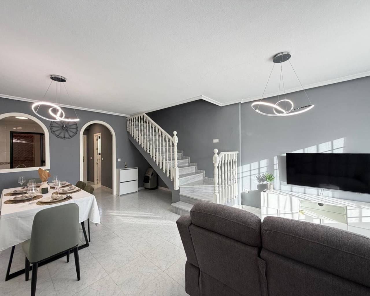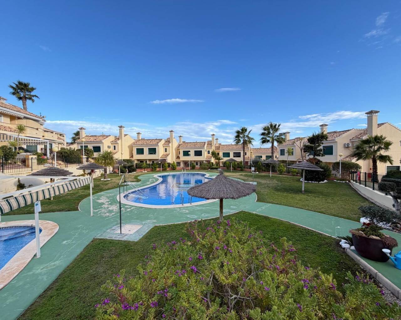 Se vende adosado en una de las mejores y más demandadas zonas de Orihuela Costa, provincia de Alicante, España.La vivienda está reformada, con una superficie total de 85 m², y dispone de:•2 dormitorios•2 baños•aire acondicionado•se vende totalmente amueblada•con electrodomésticos y elementos decorativos incluidos(todo tal como aparece en las fotografías)La propiedad cuenta además con:•2 parcelas privadas con una superficie total de 25 m²•solárium privado de 20 m² con vistas al marUbicada en el cuidado complejo residencial Lomas de Campoamor, construido en el año 2003.Sobre el complejo Lomas de CampoamorComplejo residencial tranquilo y bien mantenido, con amplias zonas verdes y espacios comunes.Dispone de piscina comunitaria, áreas de descanso y paseos interiores.Cercano a campos de golf, supermercados, restaurantes y todos los servicios necesarios.Las playas de Orihuela Costa se encuentran a pocos minutos en coche.???? Ideal como:•vivienda habitual•segunda residencia•inversión para alquiler