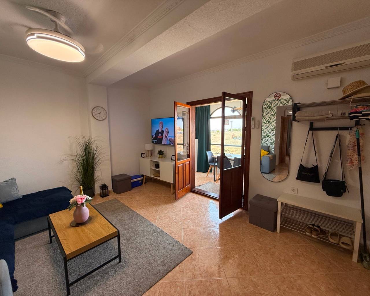Se ofrece a la venta un apartamento totalmente reformado, ubicado a tan solo 300 metros de la playa de arena de La Mata, en una de las zonas más demandadas de la Costa Blanca. La vivienda se encuentra en la segunda planta de un edificio sin ascensor y consta de dos dormitorios, un baño, un salón luminoso con cocina americana con ventana y una amplia terraza acristalada, ideal para disfrutar durante todo el año. El apartamento está listo para entrar a vivir o para alquiler turístico. Dispone de aire acondicionado, garantizando confort en cualquier época del año. El edificio no cuenta con piscina, pero hay aparcamiento comunitario disponible justo debajo del edificio. Uno de los mayores atractivos de esta propiedad es su licencia turística, que permite el alquiler vacacional de forma legal, convirtiéndola en una excelente oportunidad de inversión. La ubicación es inmejorable, con tiendas, restaurantes y todos los servicios a pocos pasos, así como la cercanía al mar. El aeropuerto de Alicante se encuentra a aproximadamente 45 minutos en coche, lo que añade un plus de comodidad tanto para propietarios como para visitantes. Una propiedad ideal como segunda residencia, inversión para alquiler vacacional o vivienda para todo el año junto al mar.