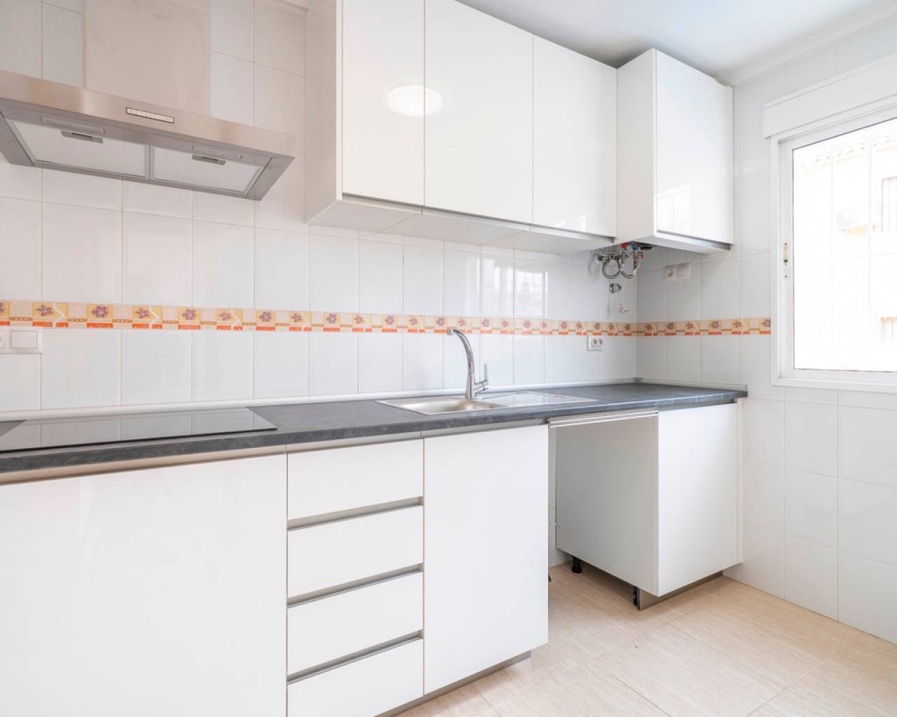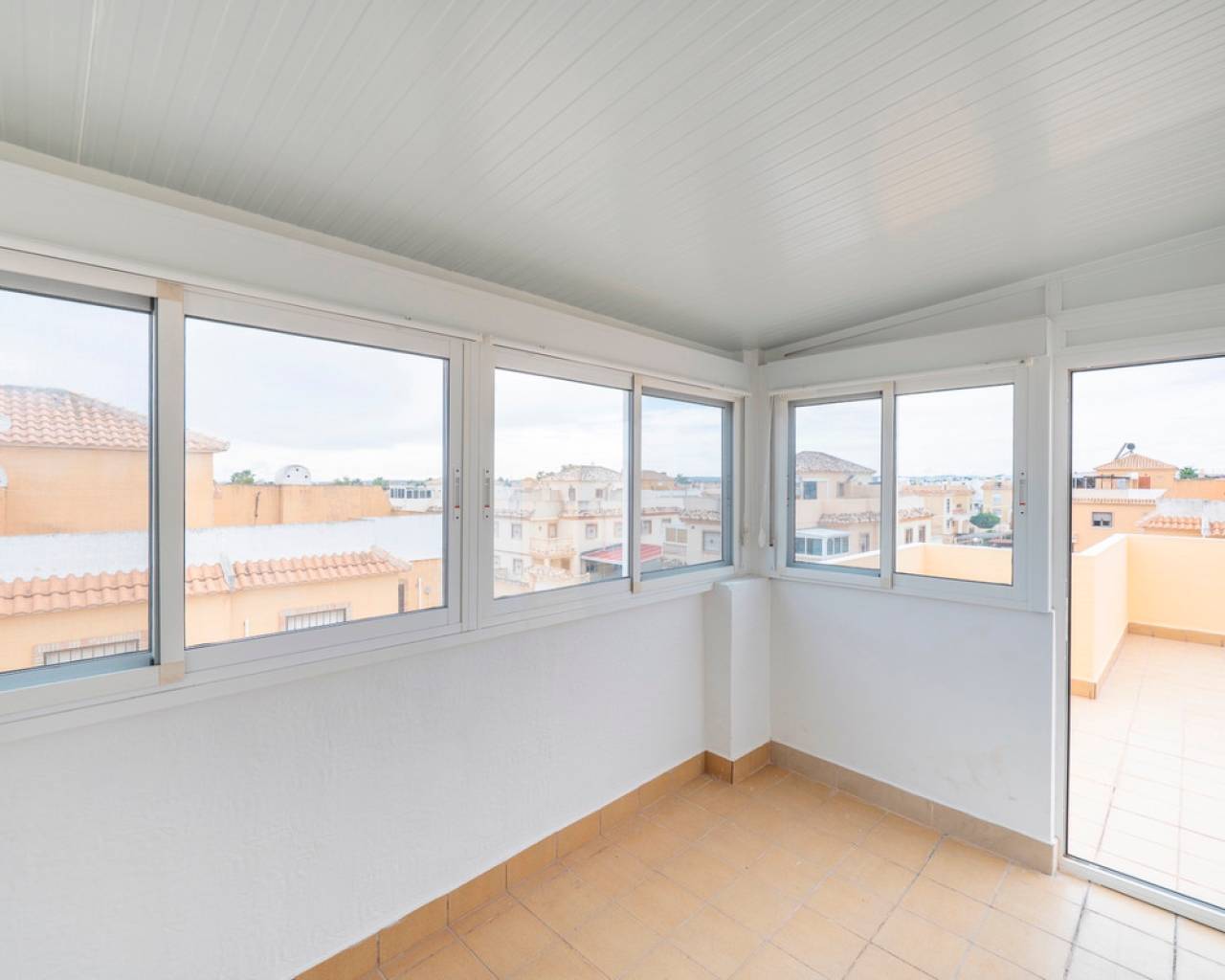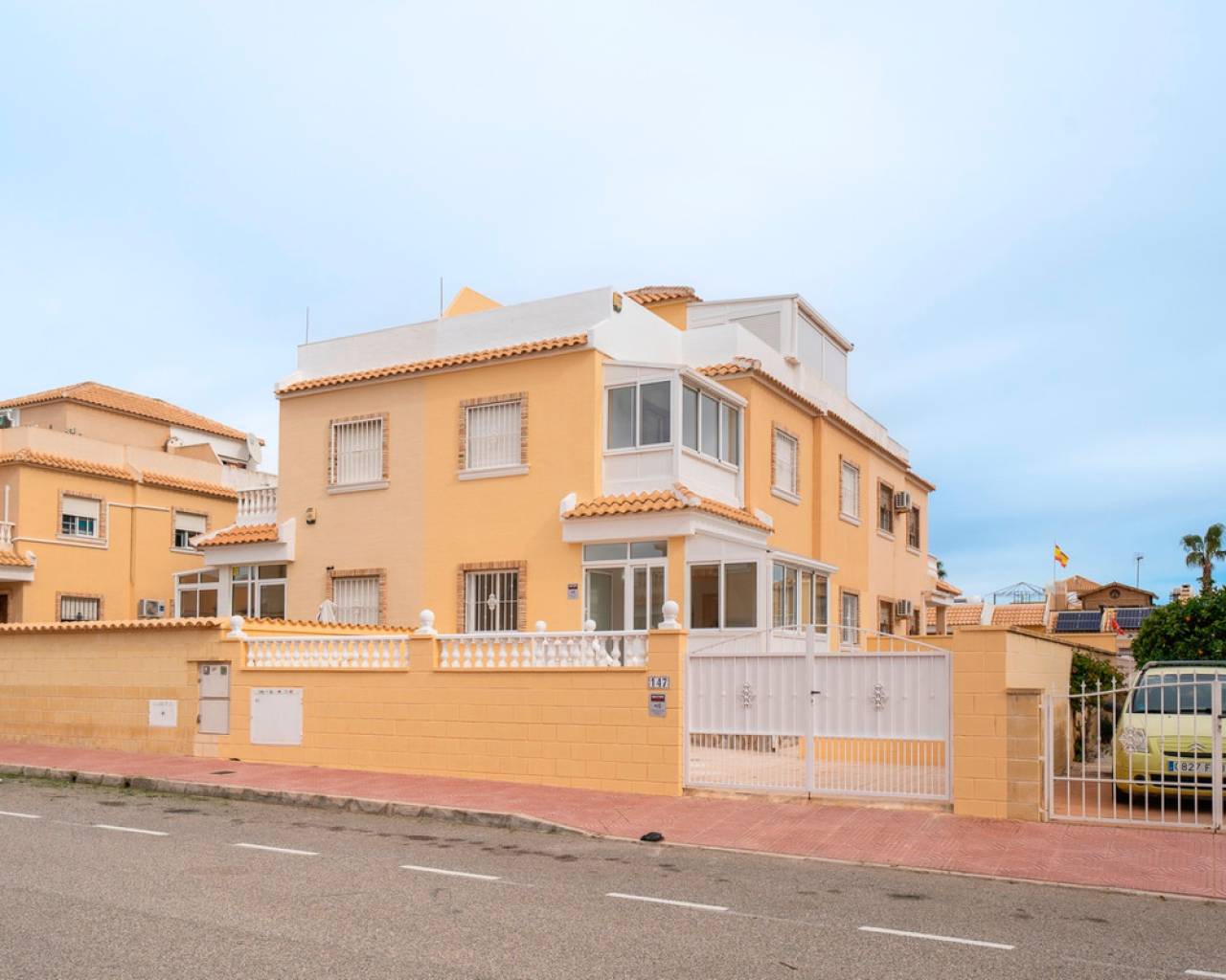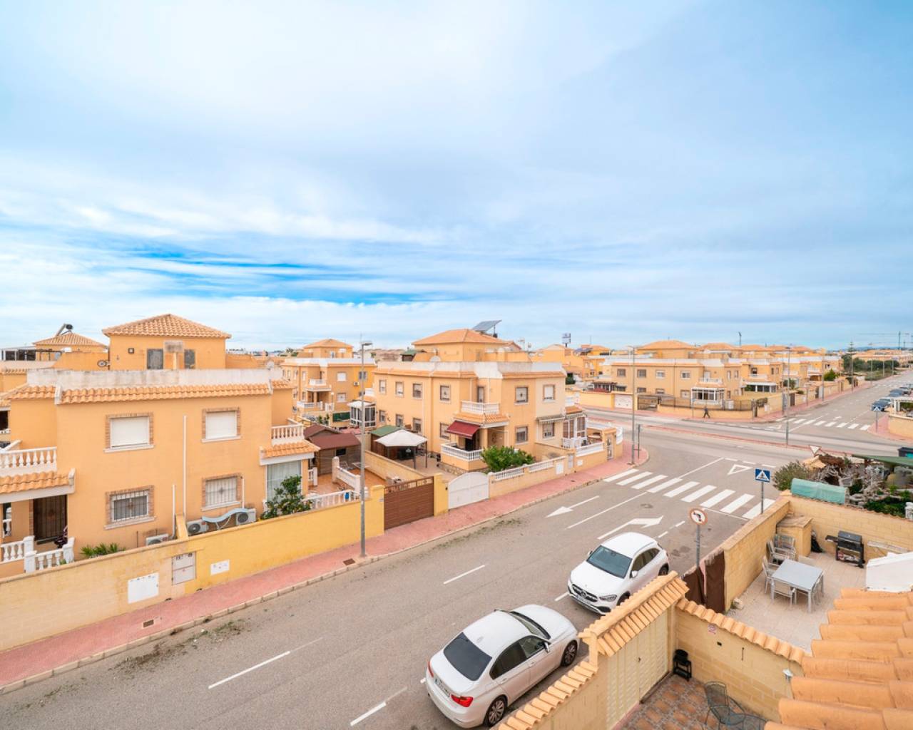 Propiedad distribuida en dos plantas más solárium, ubicada en una parcela privada con jardín y piscina propia, dentro de una urbanización con dos piscinas comunitarias en Ciudad Quesada (Rojales). En la planta de acceso se encuentra la parcela con terraza y piscina privada, un recibidor acristalado, salón-comedor, cocina independiente con mobiliario a estrenar y encimera de mármol negro, y un baño completo. La primera planta dispone de tres dormitorios, el principal con armario empotrado y acceso a una terraza acristalada, además de un segundo baño completo. En la planta superior se ubica un solárium exterior de 25 m² y un espacio acristalado tipo torreón de 8 m², ideal como zona polivalente o trastero. Situada cerca de supermercados, zonas naturales y todos los servicios, a pocos minutos del centro de Rojales y de las playas.