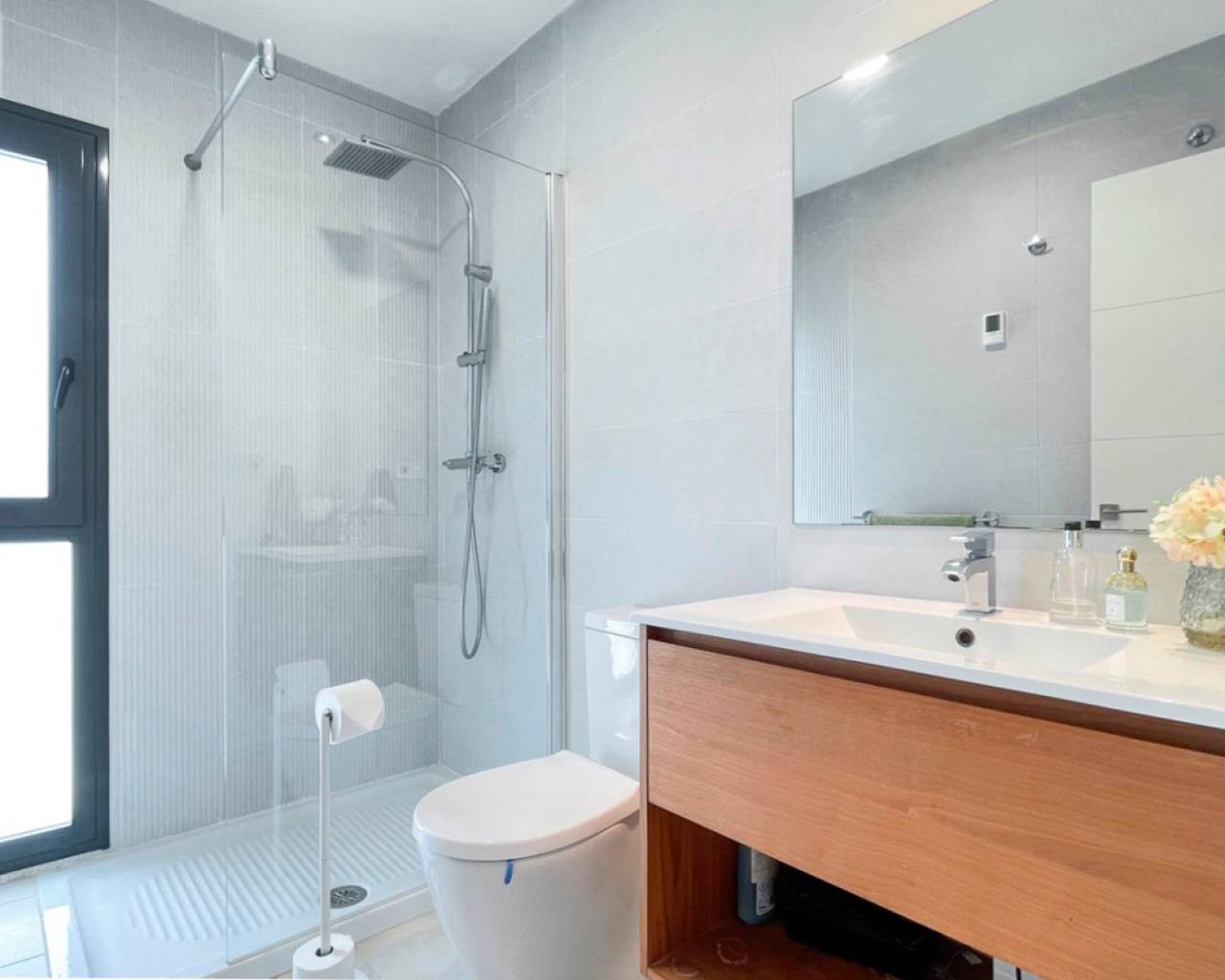 Presentamos una hermosa villa independiente en esquina, situada en la prestigiosa y tranquila zona de Pueblo Bravo, en Ciudad Quesada. La propiedad se encuentra en una parcela de casi 300 m² y destaca por su diseño moderno, amplitud y el inconfundible ambiente del estilo de vida mediterráneo. La villa cuenta con 2 dormitorios, 2 baños, un amplio y luminoso salón con cocina americana y un cuarto de servicio con lavadero. Los grandes ventanales panorámicos del salón se abren a una soleada terraza con piscina privada (5x2 m), creando el espacio perfecto para relajarse y disfrutar del aire libre. La parcela dispone de puerta de entrada independiente y plaza de aparcamiento. Las amplias cristaleras proporcionan abundante luz natural, aportando una sensación de amplitud y permitiendo disfrutar al máximo del sol español. Ambos dormitorios están equipados con camas dobles, y los baños están totalmente terminados y amueblados. La villa se vende totalmente amueblada, lista para entrar a vivir o para alquilar. Esta es una excelente oportunidad para quienes buscan una vivienda cómoda para las vacaciones, un hogar para vivir todo el año o una inversión en una de las zonas más deseadas de la Costa Blanca. Para más información, no dude en ponerse en contacto con nosotros – estaremos encantados de ofrecerle más detalles y concertar una visita.