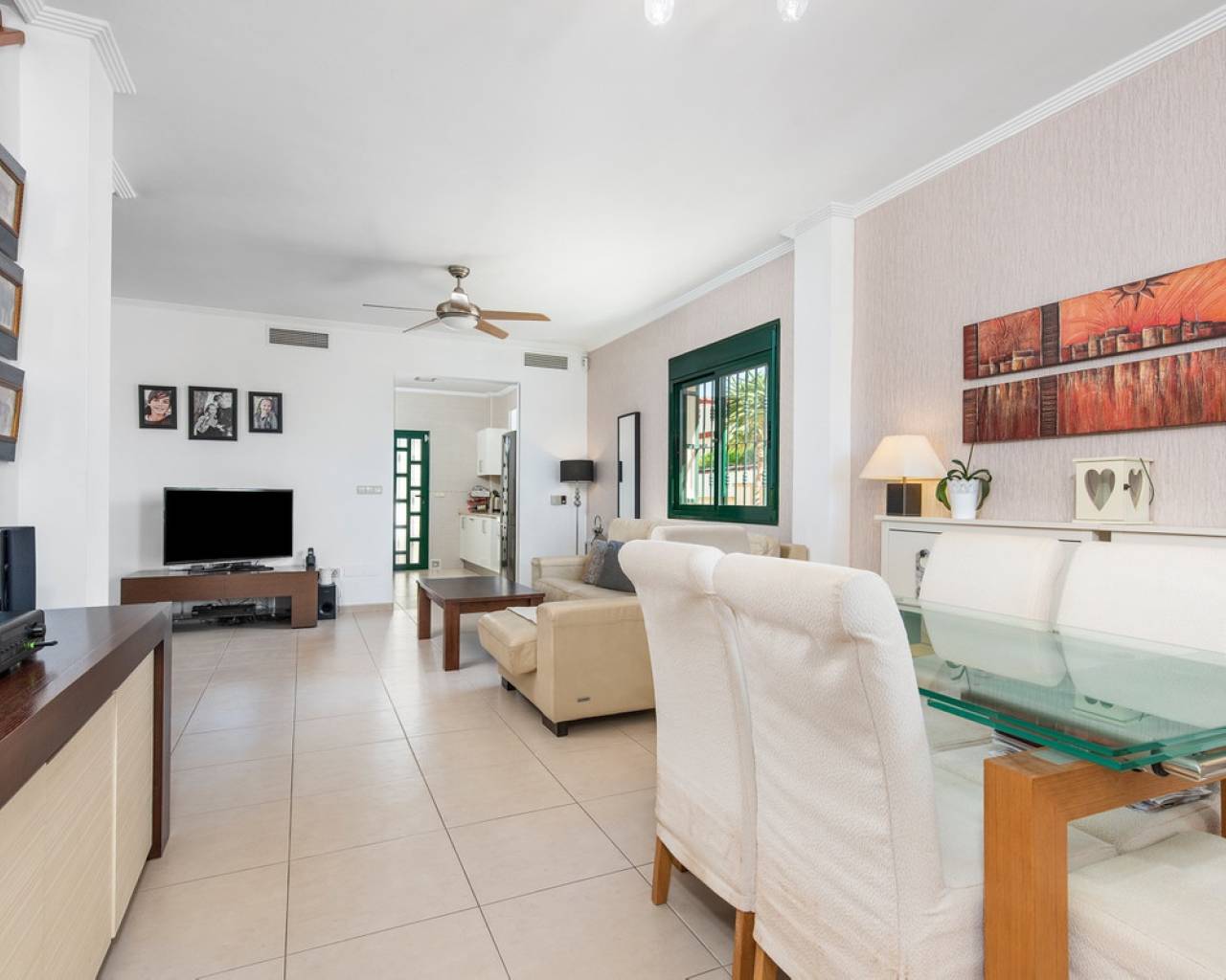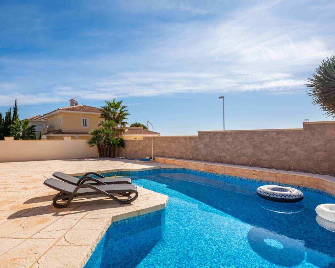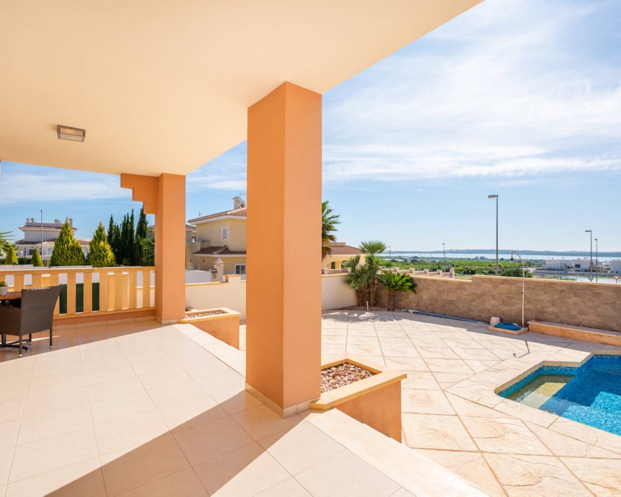 Esta encantadora villa de 4 dormitorios se encuentra en Ciudad Quesada con impresionantes vistas. El chalet tiene una superficie habitable de 192 metros cuadrados y se distribuye en dos plantas. Consta de 4 habitaciones dobles, 2 baños, una cocina moderna y una gran sala de estar con comedor y salon. El chalet también tiene un trastero. El chalet está equipada con aire acondicionado. Zona exteriorEl chalet se encuentra en una parcela orientada al sur de 546 metros cuadrados. Tiene un hermoso jardín de azulejos donde puedes encontrar una piscina y mucho espacio para áreas de descanso al aire libre y tumbonas. Por la entrada también hay una gran terraza cubierta. En la parte trasera de la casa hay un amplio aparcamiento con espacio para varios coches. El chalet también tiene una gran terraza en el primer planta con impresionantes vistas sobre los lagos de sal y Torrevieja. ÁreaCiudad Quesada es un lugar acogedor y popular en la Costa Blanca. Aquí encontrará tiendas, restaurantes, cafés, bares, farmacias, bancos, peluquerías, servicios médicos y dentales y mucho más. En la calle principal se ha construido recientemente un centro comercial con varias tiendas. Ciudad Quesada también ofrece varias actividades para toda la familia, como el famoso campo de golf La Marquesa, bolos, mini golf, canchas de tenis, campos de fútbol, gimnasios, spas, parque acuático estacional y mucho más.