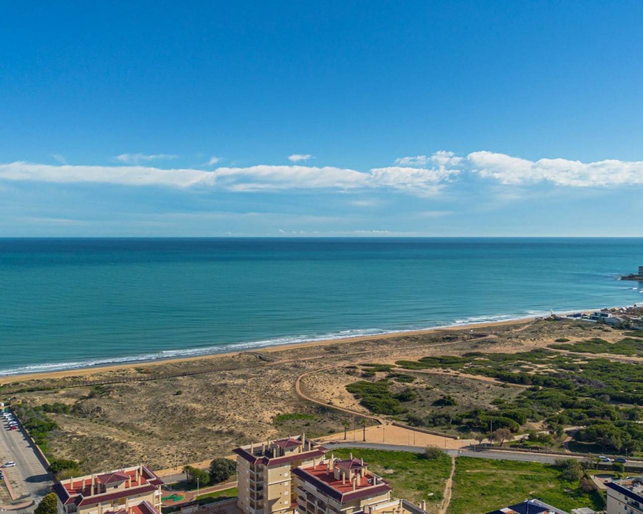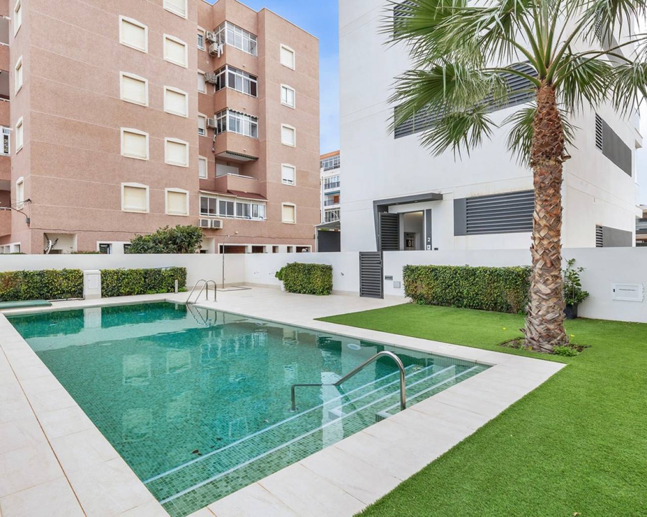 Este apartamento de nueva construcción en la planta baja en La Mata se vende completamente listo para entrar a vivir (llave en mano) y está situado en una residencia pequeña y bien cuidada, a poca distancia de la playa. La propiedad combina el confort moderno, los acabados de alta calidad y un agradable estilo de vida mediterráneo. El piso tiene dos dormitorios amplios y luminosos y dos modernos cuartos de baño con duchas a ras de suelo, lo que garantiza un confort y una privacidad óptimos. La elegante sala de estar con cocina abierta y totalmente equipada conecta a la perfección con la zona exterior y crea una experiencia de vida espaciosa y luminosa. El amplio jardín privado es una extensión natural de la sala de estar y ofrece suficiente espacio para una zona de salón y comedor, ideal para disfrutar de la vida al aire libre en la Costa Blanca durante todo el año. La propiedad se vende totalmente lista para entrar a vivir, incluyendo muebles y accesorios. Además, el piso cuenta con una plaza de aparcamiento privada delante del edificio y un trastero privado en el sótano, ambos incluidos en el precio. Los residentes también pueden utilizar la piscina comunitaria de la residencia. Gracias a su excelente ubicación en La Mata, cerca de la playa y de todos los servicios, este piso es ideal como segunda residencia, inversión o residencia permanente en la Costa Blanca.