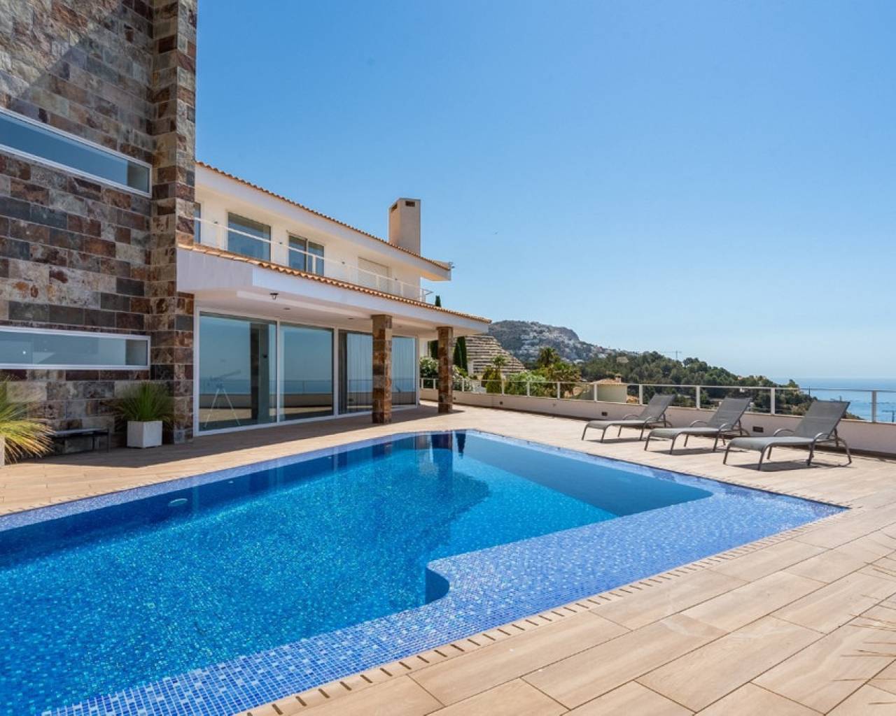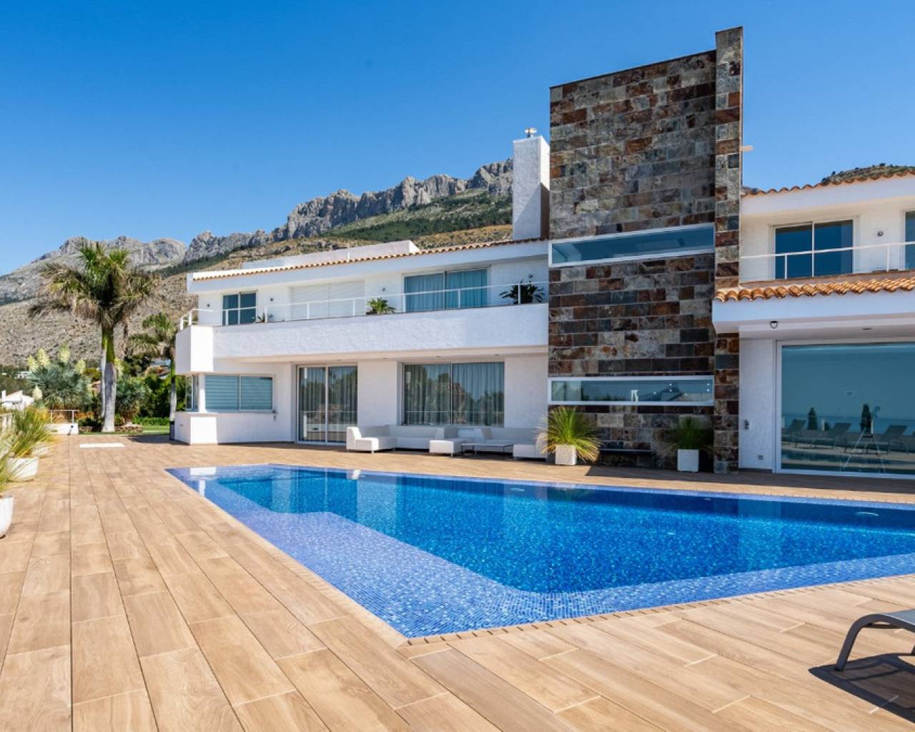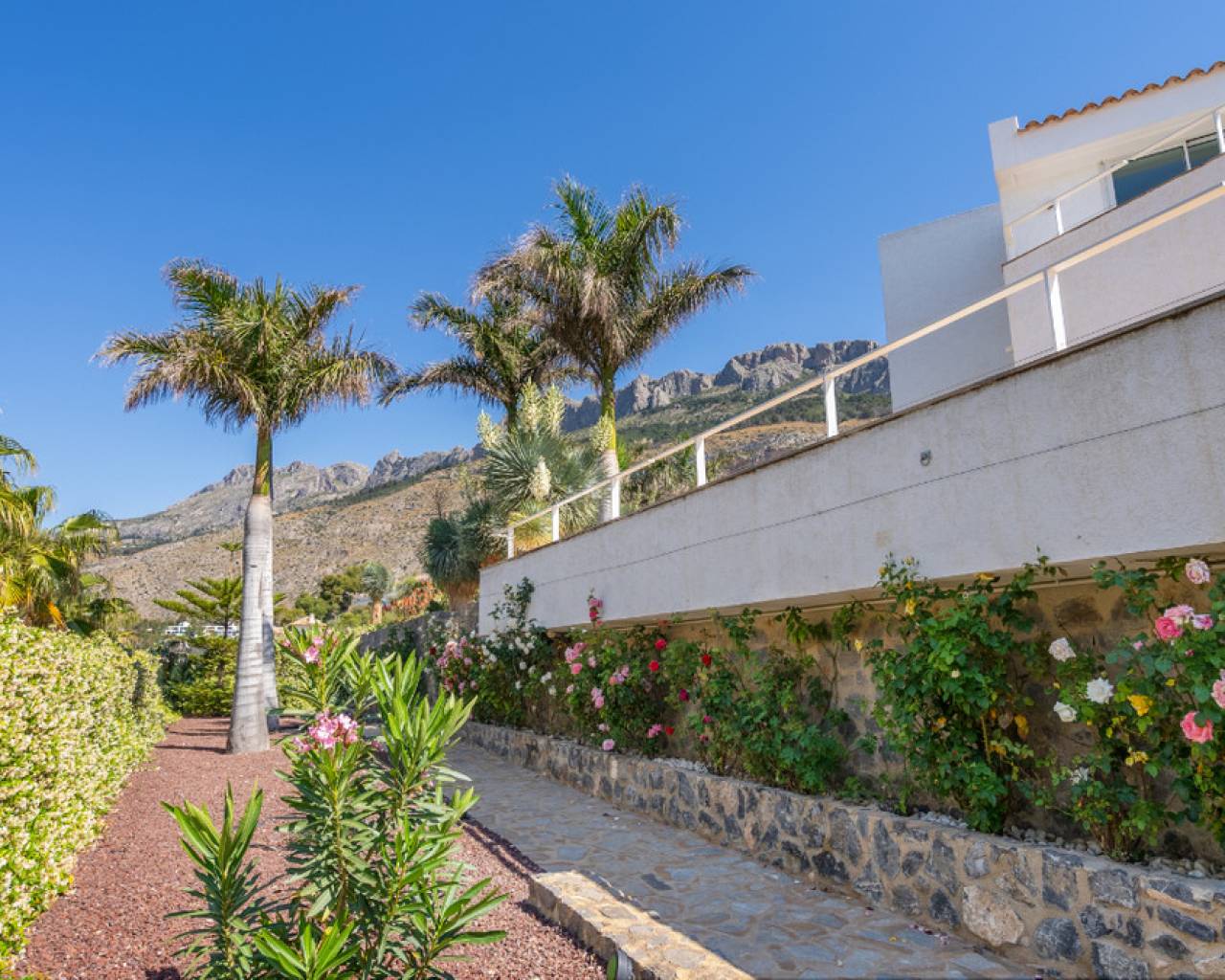 Impresionante villa de lujo de gran tamaño y elegancia con 7 dormitorios, piscina, ascensor, garaje para 5 coches, domótica, gimnasio, orientación sur y vistas. Impresionante obra arquitectónica de contundente presencia y excepcional tamaño, que se erige en la montaña de Altea como si de un castillo se tratase. Su inusual tamaño, elegante diseño moderno y las excelentes calidades con las que esta bella casa ha sido construida, son ya de por sí sorprendentes. Sus embaucadoras vistas al mar, su perfecta orientación sur, sus numerosas estancias y su atípico garaje para cinco coches, es absolutamente único. Si su extraordinario tamaño, su elegante estética y las maravillosas vistas al mar enamoran a primera vista; el interior es aún más sorprendente por sus exquisitos materiales y sus enormes espacios llenos de luz gracias a los grandes ventanales que iluminan cada rincón y tornan las increíbles vistas al mar en protagonistas indiscutibles, como si fuera la perfecta puesta en escena para disfrutar del máximo lujo a diario, sin nada que envidiar a los mejores resorts del mundo. Esta hermosa villa está situada en una de las zonas residenciales más exclusivas de la Costa del Mediterráneo por su sol todo el año, sus vistas al mar y a la montaña, su tranquilidad y su cercanía a los accesos a la autopista y el aeropuerto . Además, a muy pocos minutos en coche, está el pintoresco casco antiguo de Altea, con sus vibrantes calles llenas de terrazas, su cuidada playa, club náutico, elegantes tiendas, club de golf y numerosas opciones de ocio acuático y gastronómico para todos los gustos.