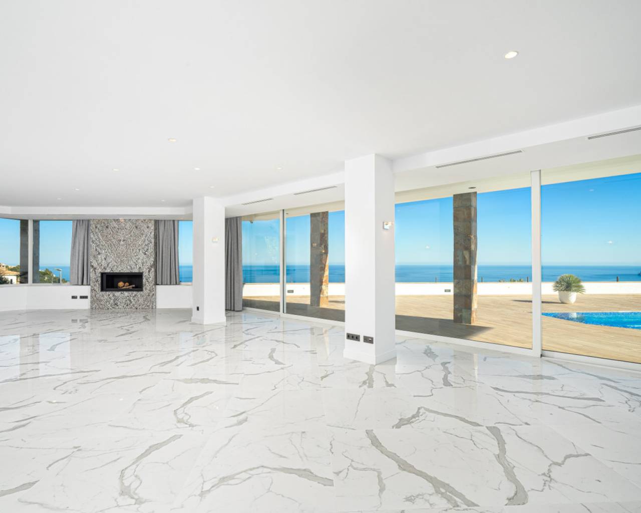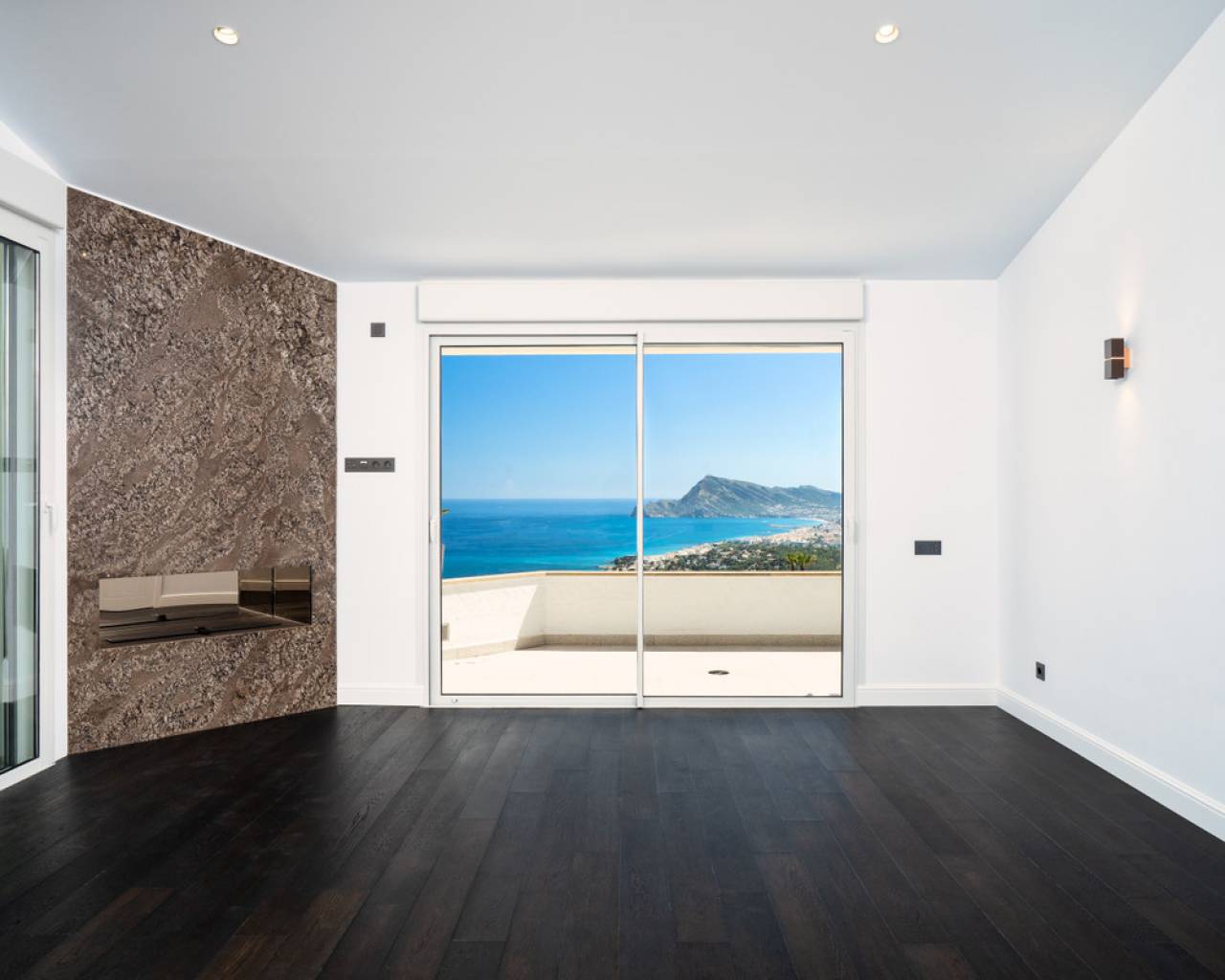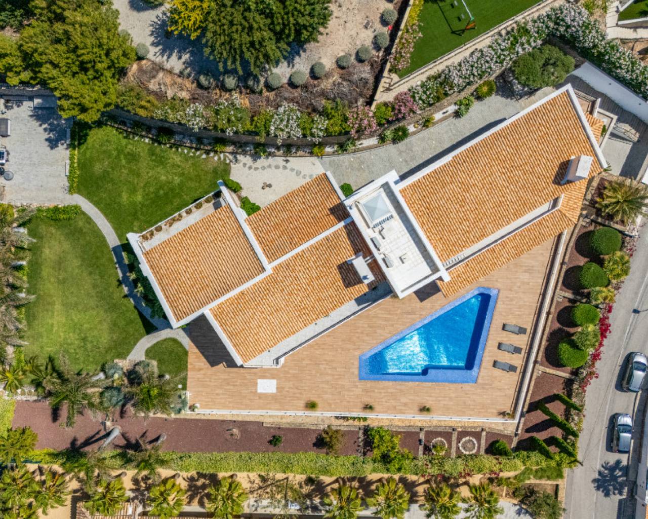 Impresionante villa de lujo de gran tamaño y elegancia con 7 dormitorios, piscina, ascensor, garaje para 5 coches, domótica, gimnasio, orientación sur y vistas. Impresionante obra arquitectónica de contundente presencia y excepcional tamaño, que se erige en la montaña de Altea como si de un castillo se tratase. Su inusual tamaño, elegante diseño moderno y las excelentes calidades con las que esta bella casa ha sido construida, son ya de por sí sorprendentes. Sus embaucadoras vistas al mar, su perfecta orientación sur, sus numerosas estancias y su atípico garaje para cinco coches, es absolutamente único. Si su extraordinario tamaño, su elegante estética y las maravillosas vistas al mar enamoran a primera vista; el interior es aún más sorprendente por sus exquisitos materiales y sus enormes espacios llenos de luz gracias a los grandes ventanales que iluminan cada rincón y tornan las increíbles vistas al mar en protagonistas indiscutibles, como si fuera la perfecta puesta en escena para disfrutar del máximo lujo a diario, sin nada que envidiar a los mejores resorts del mundo. Esta hermosa villa está situada en una de las zonas residenciales más exclusivas de la Costa del Mediterráneo por su sol todo el año, sus vistas al mar y a la montaña, su tranquilidad y su cercanía a los accesos a la autopista y el aeropuerto . Además, a muy pocos minutos en coche, está el pintoresco casco antiguo de Altea, con sus vibrantes calles llenas de terrazas, su cuidada playa, club náutico, elegantes tiendas, club de golf y numerosas opciones de ocio acuático y gastronómico para todos los gustos.