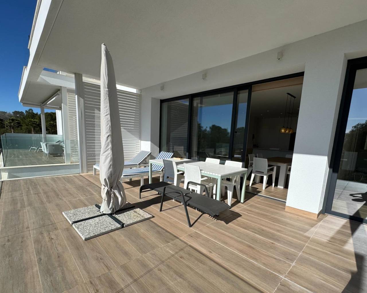 Este precioso apartamento se encuentra en el corazón de las colinas boscosas del prestigioso Las Colinas Golf & Country Club, un exclusivo resort de más de 300 hectáreas reconocido internacionalmente por su privacidad, naturaleza y estilo de vida de alta calidad. El complejo ofrece un campo de golf de campeonato, pistas de tenis y pádel, gimnasio totalmente equipado, senderos naturales y varios restaurantes de renombre. La vivienda ofrece un estilo de vida mediterráneo refinado, donde la elegancia, el confort y la perfecta conexión entre interior y exterior se unen. La amplia terraza privada orientada al sur es el verdadero protagonista de la propiedad, diseñada como una extensión natural del salón. Distribuida con zonas diferenciadas para descanso, comedor y solárium — y parcialmente cubierta para disfrutarla durante todo el año — es el lugar ideal para largas comidas al aire libre, veladas relajadas o momentos de tranquilidad bajo el sol español. Las vistas a los cuidados jardines comunitarios aportan privacidad y serenidad. El interior presenta un diseño moderno y luminoso. La cocina está totalmente equipada con electrodomésticos de alta gama, incluyendo frigorífico-congelador, lavavajillas, microondas, vinoteca y campana extractora, ofreciendo funcionalidad y amplio espacio de almacenamiento. El dormitorio principal es un auténtico refugio privado, con baño en suite elegante y ducha efecto lluvia tipo walk-in. Grandes puertas correderas conectan directamente con la terraza, reforzando la sensación de continuidad entre interior y exterior. Dos dormitorios adicionales y un segundo baño completan la vivienda, ideales para invitados, familia o despacho. La propiedad se vende completamente amueblada e incluye aire acondicionado en todas las estancias, suelo radiante en los baños, plaza de garaje subterránea privada y trastero independiente. Los residentes de Níspero disfrutan de zonas comunes perfectamente mantenidas, con una elegante piscina y gimnasio totalmente equipado, ideales para un estilo de vida equilibrado y exclusivo. Una vivienda elegante que ofrece espacio, privacidad y calidad de vida.~Contáctenos para organizar su visita privada.