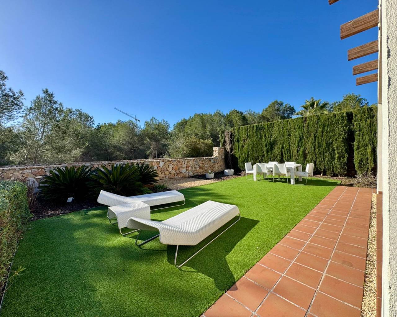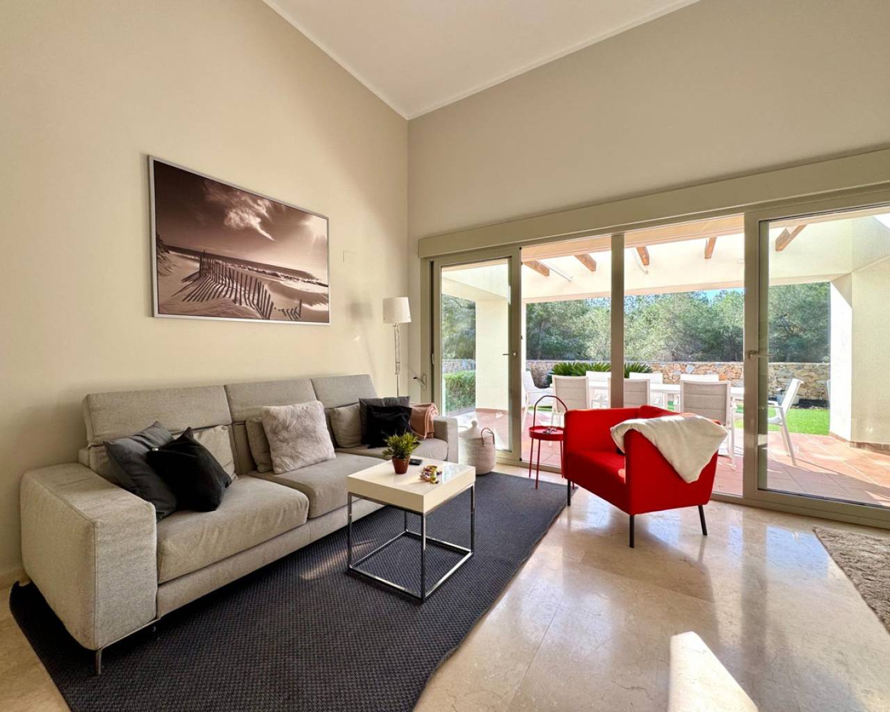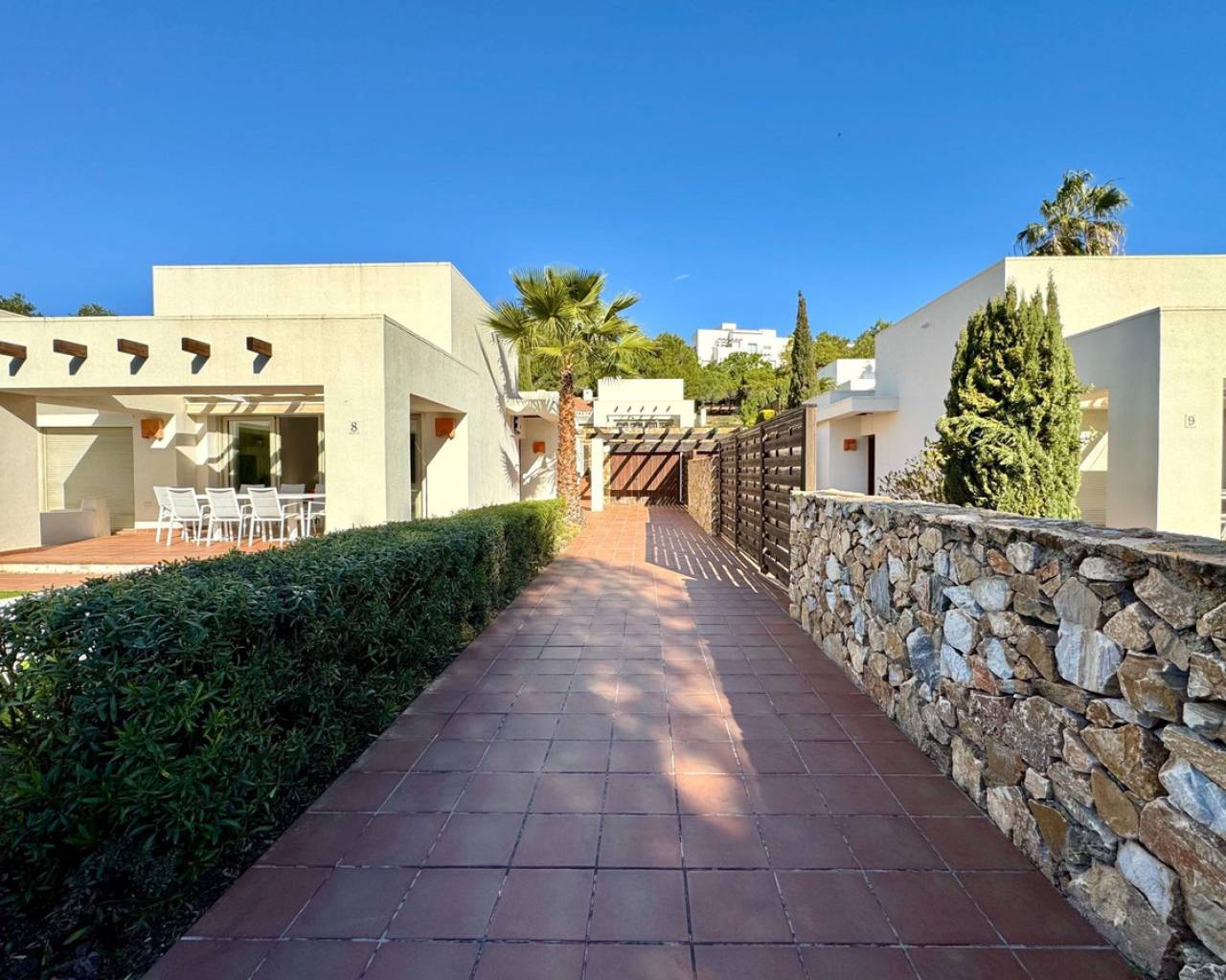 Bienvenido a Villa Encina, una joya arquitectónica ubicada en el corazón del prestigioso complejo Las Colinas, donde la exclusividad, la luz y la naturaleza se combinan para ofrecer un estilo de vida mediterráneo sin igual. Con 108 m2 de construcción, completamente amueblada, y una distribución pensada al detalle, esta villa desprende elegancia y confort en cada rincón. Sus amplios dormitorios y luminosas zonas de día, orientadas al sur, crean un ambiente cálido y acogedor, perfecto para vivir o recibir invitados.~~El verdadero encanto de Villa Encina reside en su terraza cubierta de 70 m2, un espacio donde el interior se funde con el exterior, ideal para disfrutar de desayunos soleados, cenas al aire libre o momentos de relajación con vistas a la vegetación y la tranquilidad del entorno. La parcela de 372,24 m2 ofrece un jardín privado y una zona de aparcamiento, garantizando privacidad y comodidad absoluta.~~Rodeada de campos de golf de primer nivel, naturaleza, senderos y servicios de alta calidad, esta villa es más que una vivienda: es un refugio mediterráneo donde cada detalle ha sido cuidadosamente pensado para combinar estilo, luz y bienestar. Villa Encina ofrece la oportunidad de vivir la auténtica experiencia de Las Colinas, un hogar listo para entrar a vivir, que invita a disfrutar de la vida, la calma y la sofisticación en un entorno incomparable.