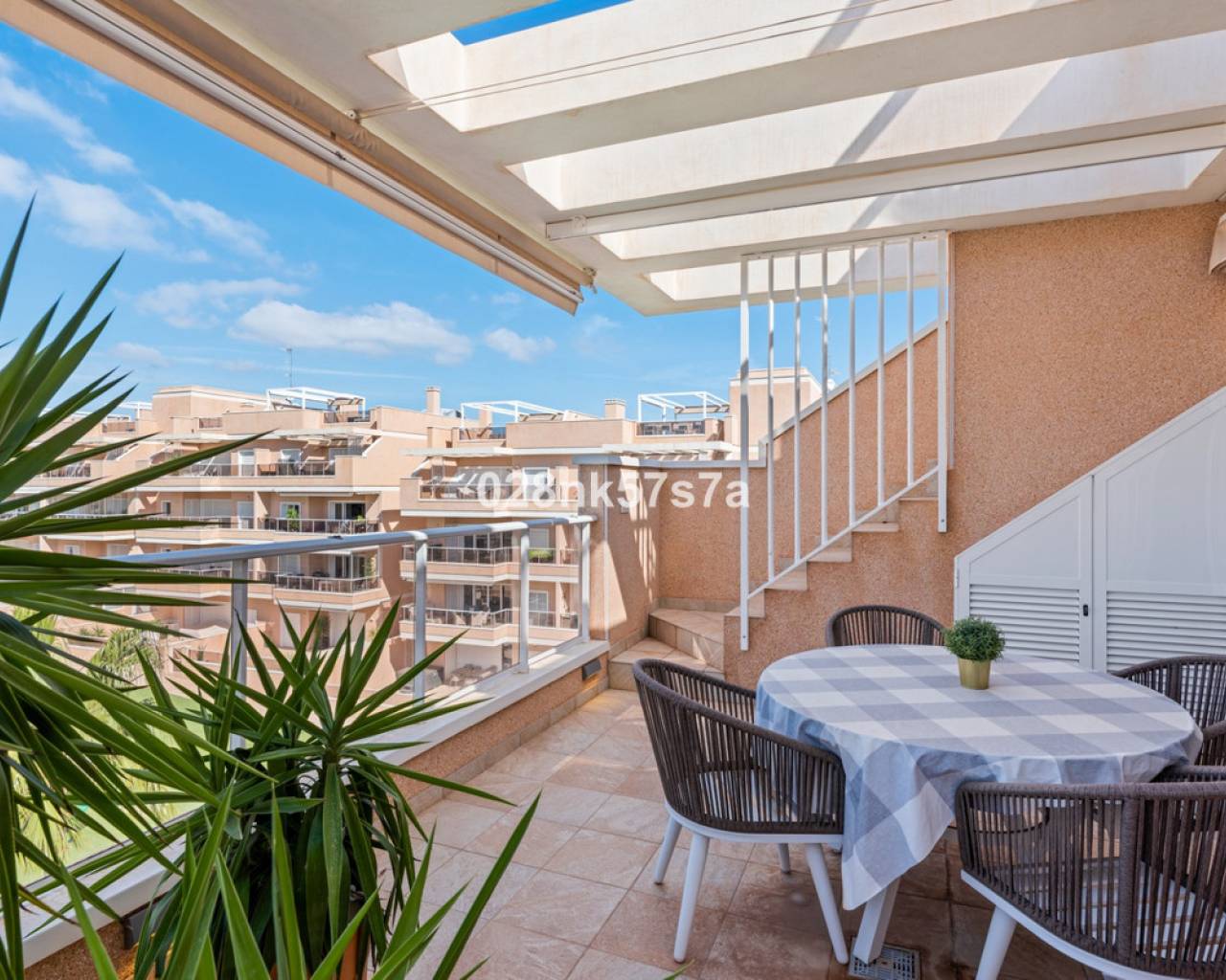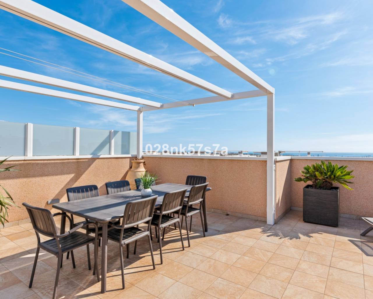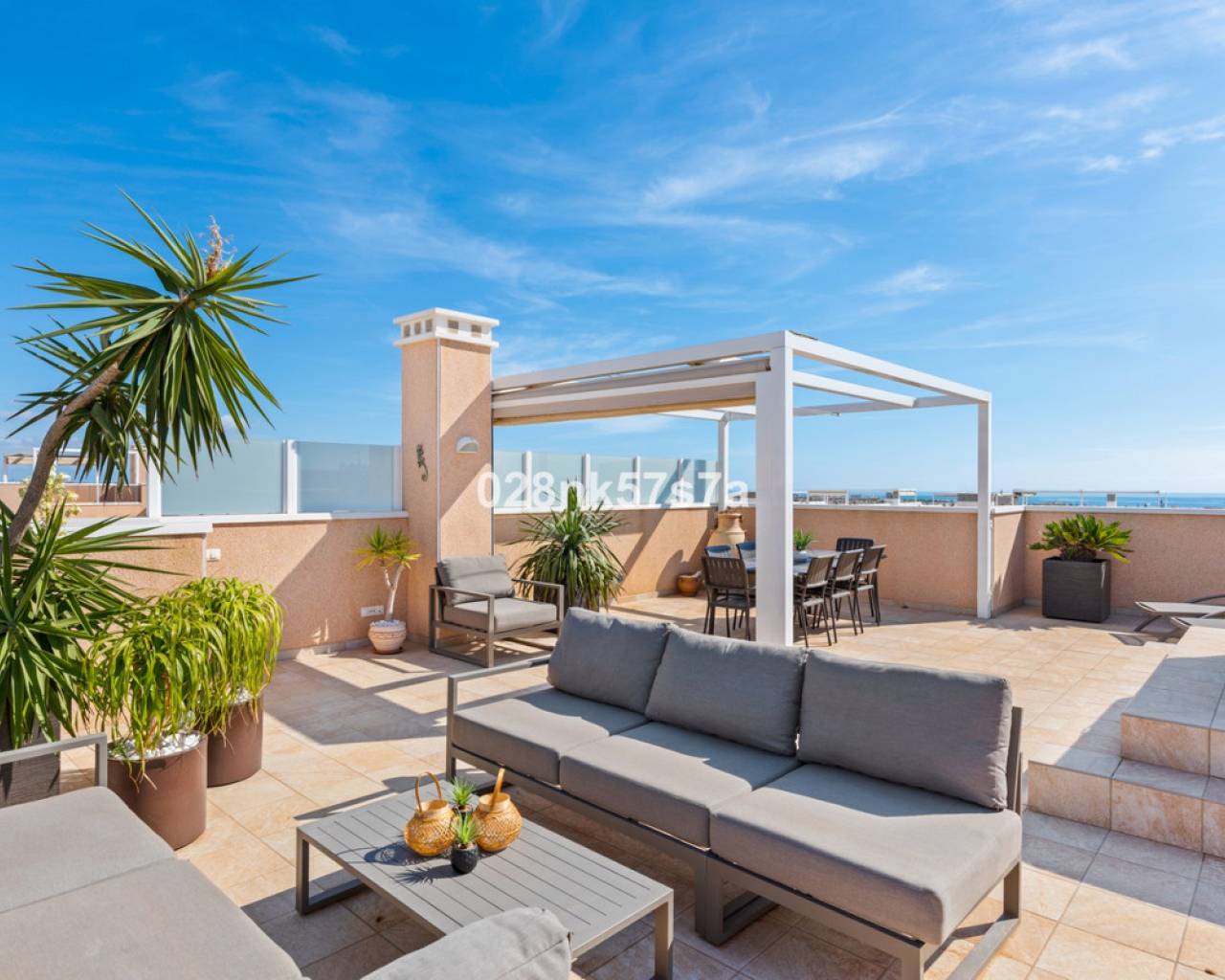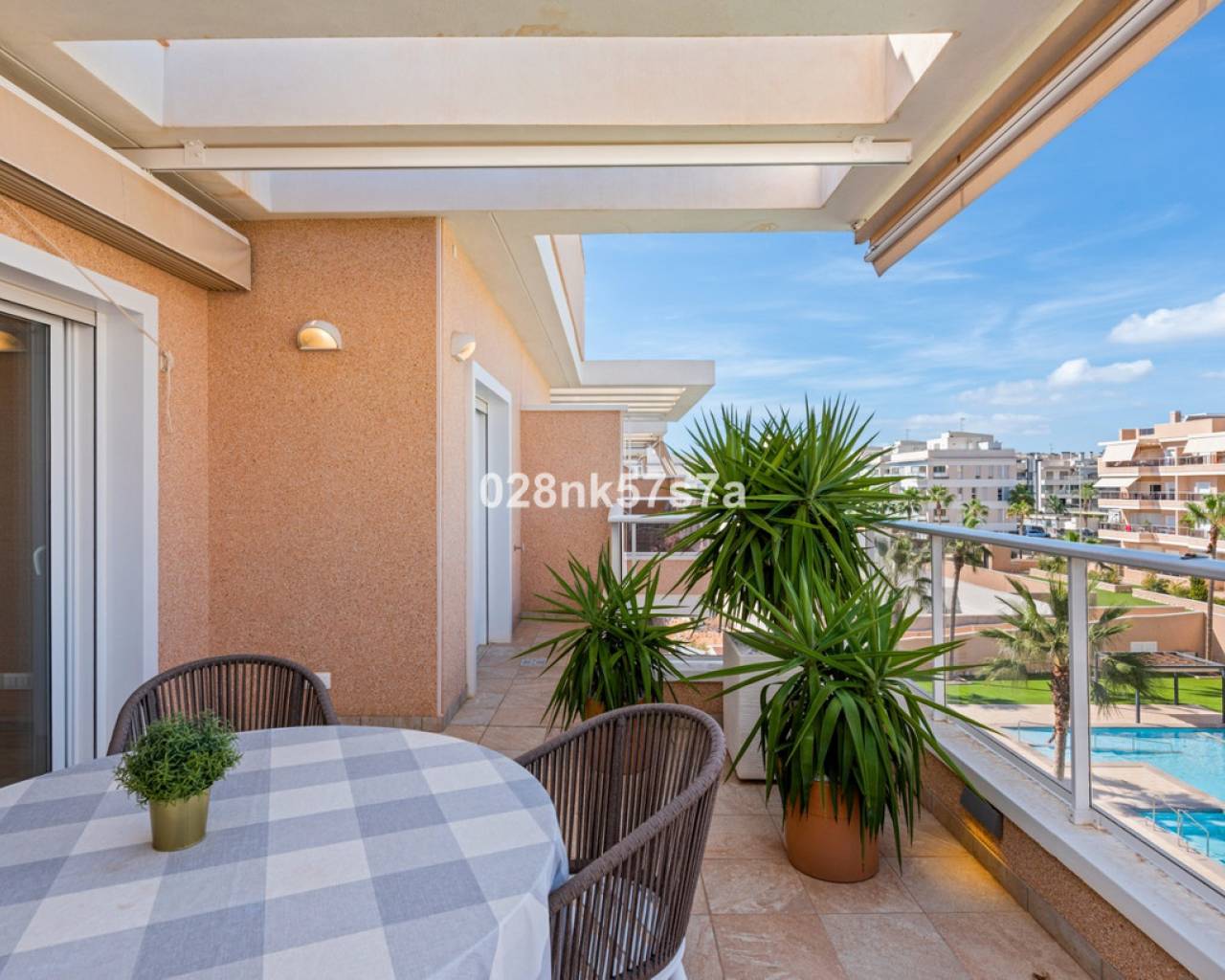 El apartamento presenta una distribución amplia y bien diseñada, distribuida en un gran salón, cocina, tres dormitorios, dos baños completos, una terraza y un impresionante solárium. La zona de estar está decorada con buen gusto y amueblada con materiales de alta calidad, el dormitorio doble con baño en suite, un dormitorio doble y un dormitorio individual tienen armarios empotrados. Una de las características más destacadas de este ático es el solárium, que ofrece un espacio exterior exclusivo para el disfrute y la relajación. Es un lugar perfecto para tomar el sol, celebrar reuniones o simplemente apreciar las vistas al mar y las zonas comunes. En el precio se incluye una plaza de garaje, por lo que tiene todo lo necesario para que sea una oportunidad única. Lo más destacado de este complejo son sus zonas comunes que cuentan con piscina tanto climatizada como no climatizada, además de spa. Donde podrá beneficiarse de la tranquilidad y el confort. Este ático está listo para entrar a vivir y tiene una de las mejores ubicaciones, entre la zona de Villamartin y La Zenia. La Zenia es una zona residencial consolidada y muy atractiva en el municipio costero de Orihuela Costa, situada a 5 km al sur de Torrevieja y a 50 km del aeropuerto de Alicante. Aquí vives a poca distancia a pie de casi todas las instalaciones imaginables. Hay tiendas de alimentación, restaurantes y cafeterías "justo en la puerta" y cerca encontrará uno de los centros comerciales al aire libre más grandes de España (Zenia Boulevard). La zona también es conocida por sus playas de arena blanca y calcárea, con el sello "bandera azul", que indica, entre otras cosas, la alta calidad del agua. Para aquellos que buscan un lugar que se adapte a todos los miembros de la familia, este es absolutamente perfecto.