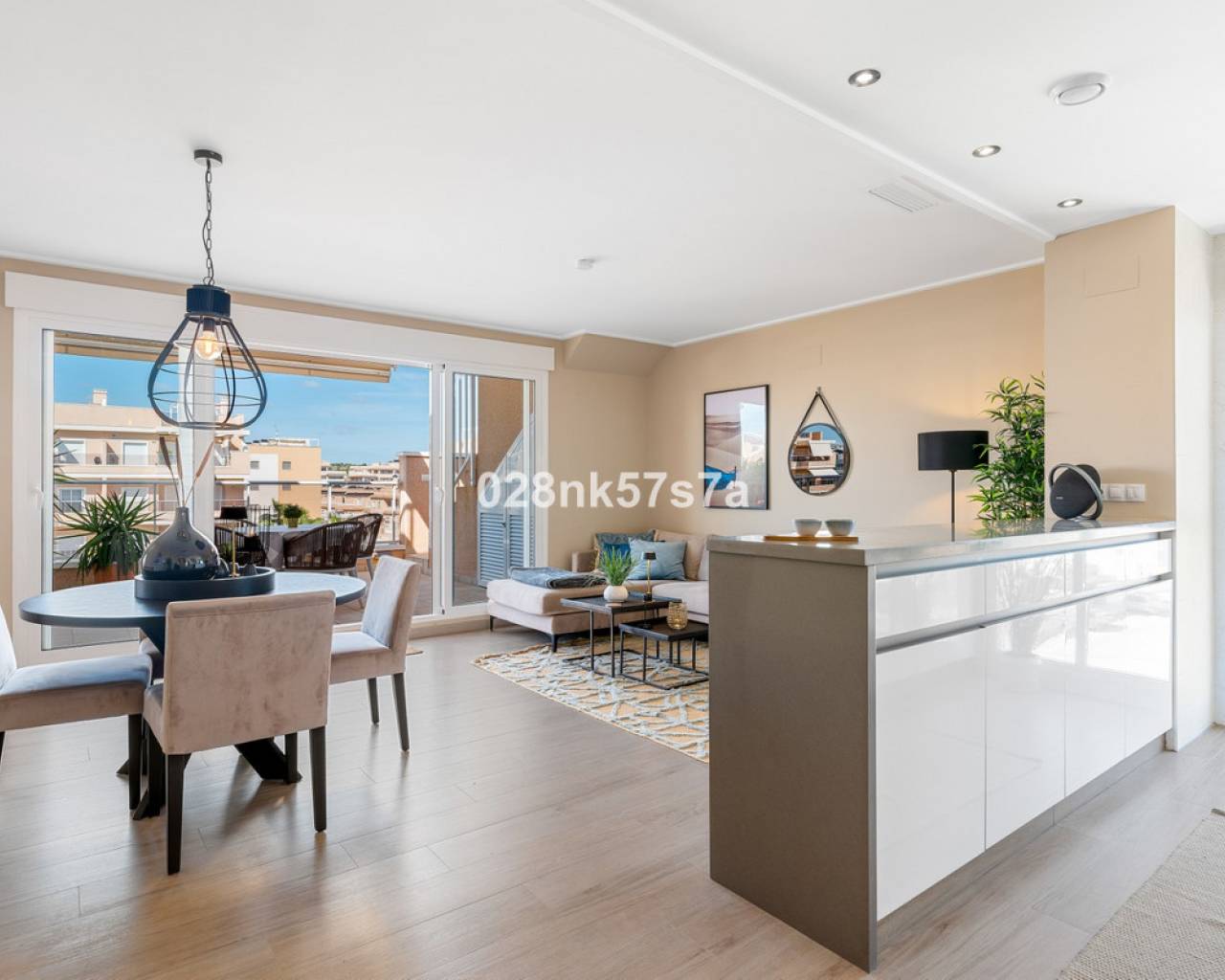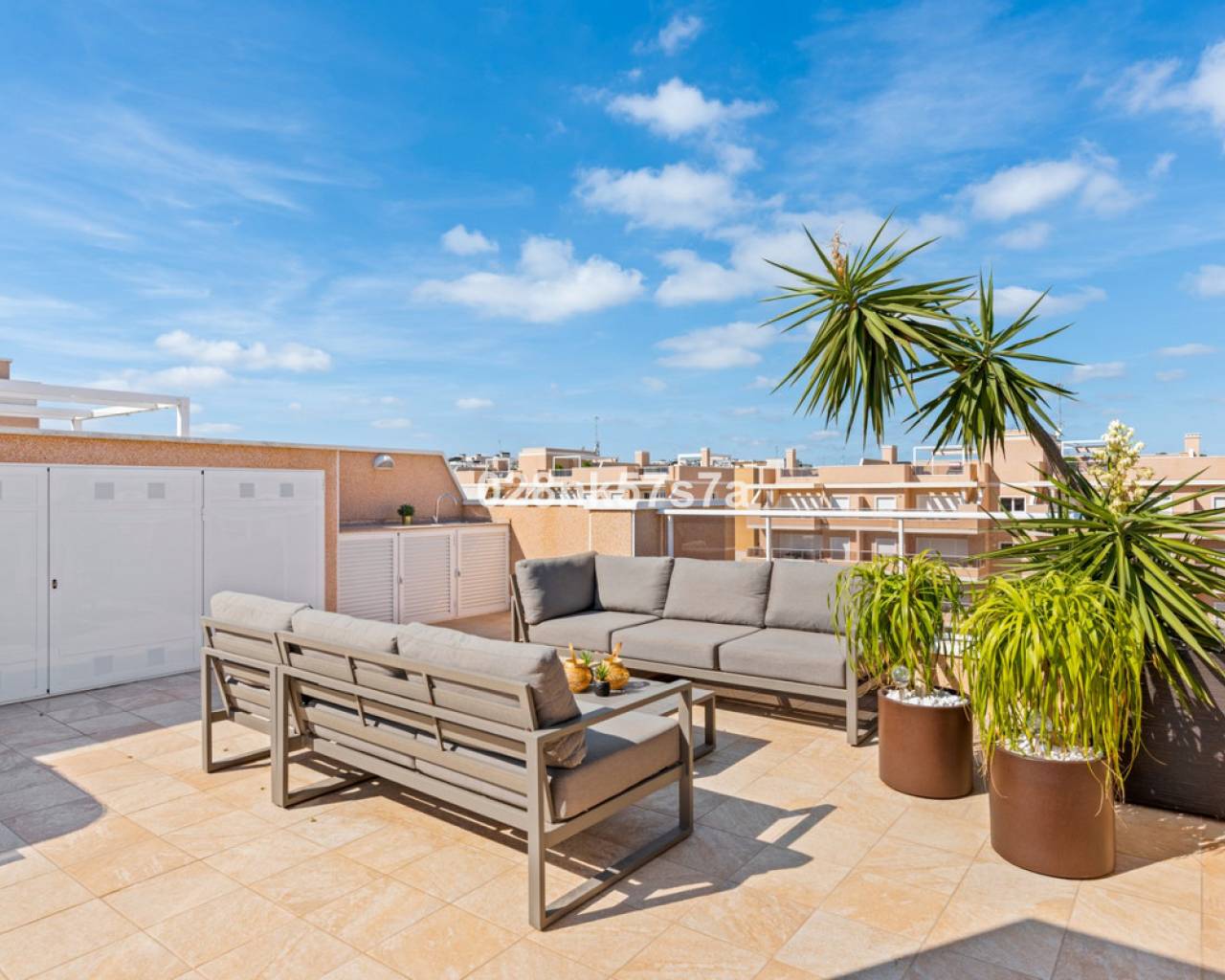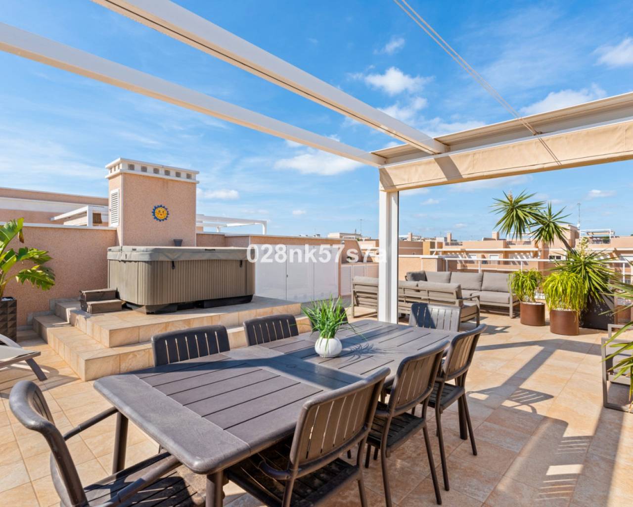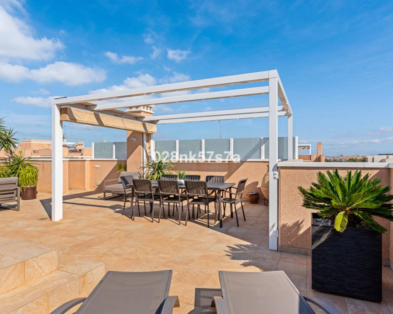 El apartamento presenta una distribución amplia y bien diseñada, distribuida en un gran salón, cocina, tres dormitorios, dos baños completos, una terraza y un impresionante solárium. La zona de estar está decorada con buen gusto y amueblada con materiales de alta calidad, el dormitorio doble con baño en suite, un dormitorio doble y un dormitorio individual tienen armarios empotrados. Una de las características más destacadas de este ático es el solárium, que ofrece un espacio exterior exclusivo para el disfrute y la relajación. Es un lugar perfecto para tomar el sol, celebrar reuniones o simplemente apreciar las vistas al mar y las zonas comunes. En el precio se incluye una plaza de garaje, por lo que tiene todo lo necesario para que sea una oportunidad única. Lo más destacado de este complejo son sus zonas comunes que cuentan con piscina tanto climatizada como no climatizada, además de spa. Donde podrá beneficiarse de la tranquilidad y el confort. Este ático está listo para entrar a vivir y tiene una de las mejores ubicaciones, entre la zona de Villamartin y La Zenia. La Zenia es una zona residencial consolidada y muy atractiva en el municipio costero de Orihuela Costa, situada a 5 km al sur de Torrevieja y a 50 km del aeropuerto de Alicante. Aquí vives a poca distancia a pie de casi todas las instalaciones imaginables. Hay tiendas de alimentación, restaurantes y cafeterías "justo en la puerta" y cerca encontrará uno de los centros comerciales al aire libre más grandes de España (Zenia Boulevard). La zona también es conocida por sus playas de arena blanca y calcárea, con el sello "bandera azul", que indica, entre otras cosas, la alta calidad del agua. Para aquellos que buscan un lugar que se adapte a todos los miembros de la familia, este es absolutamente perfecto.