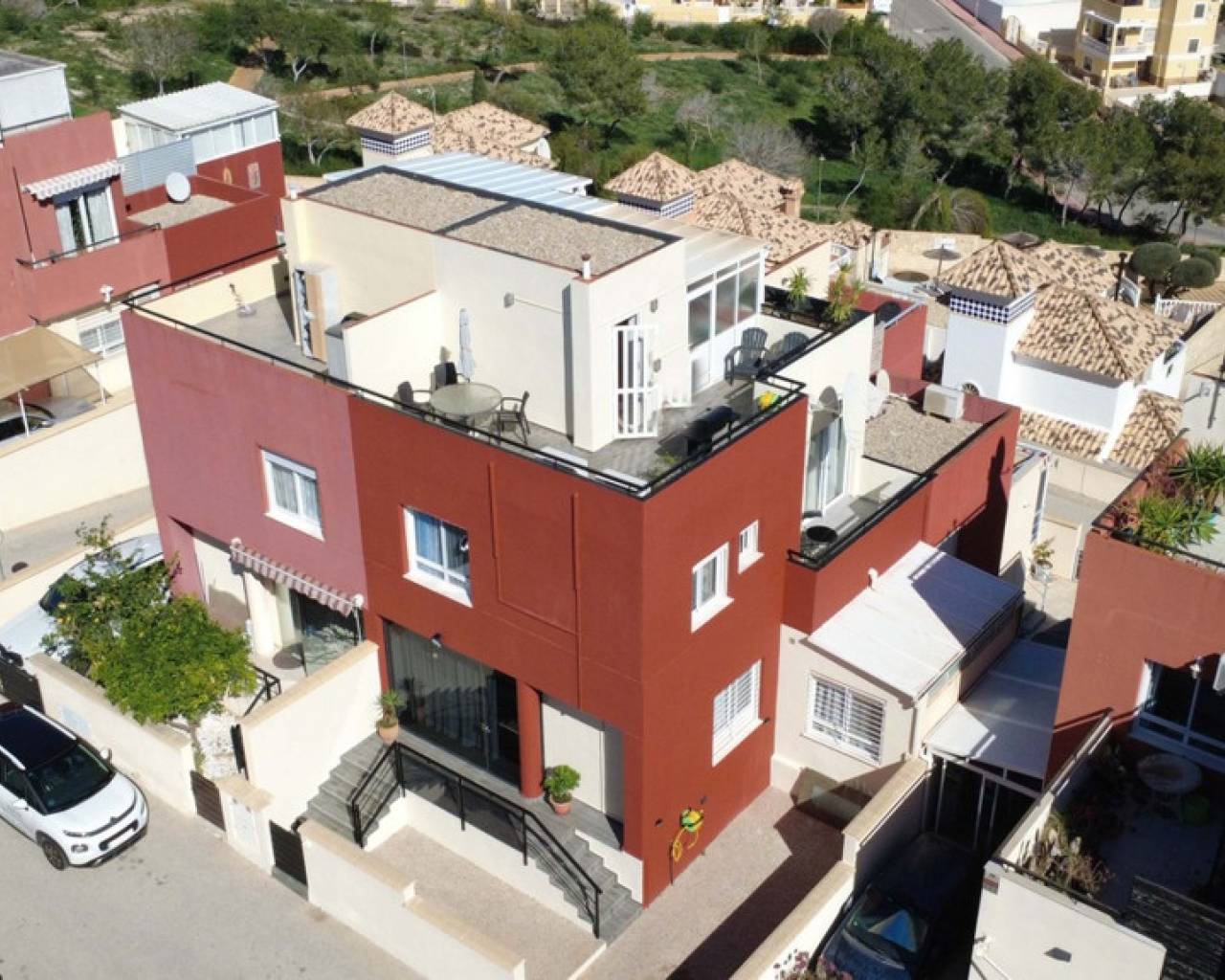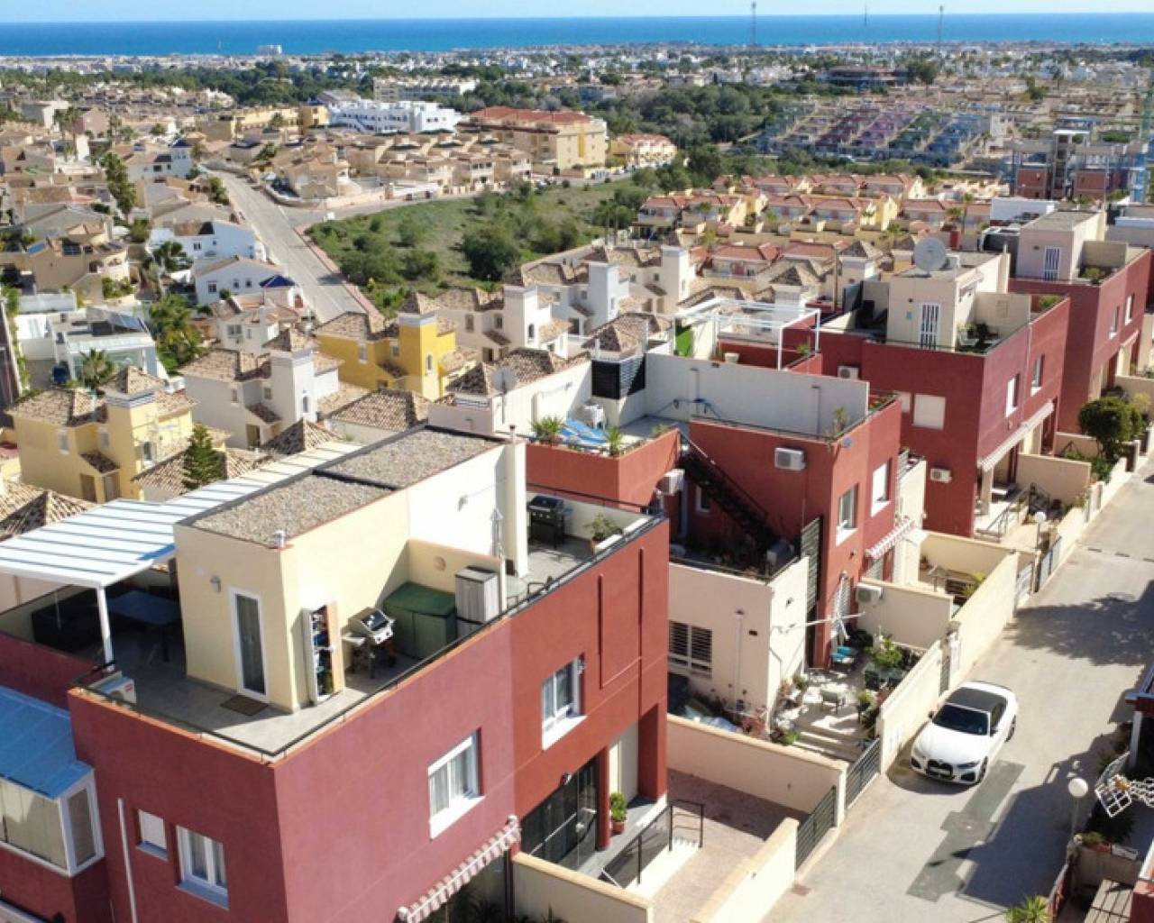Le presentamos este encantador adosado de 3 dormitorios y 2 baños situado en la codiciada zona de Villamartín, en la hermosa Costa Blanca. Esta vivienda ofrece la combinación perfecta de confort, espacios exteriores y preciosas vistas — ideal como residencia habitual, casa de vacaciones o inversión. En la planta baja encontramos un luminoso salón-comedor, cocina totalmente equipada, un baño completo y acceso directo a una amplia terraza privada, perfecta para comer al aire libre, relajarse o disfrutar del clima mediterráneo durante todo el año. En la planta superior se encuentran los tres dormitorios y un segundo baño. Desde aquí se accede a un balcón privado, mientras que el gran atractivo de la vivienda es su impresionante solárium con espectaculares vistas al mar, ideal para tomar el sol o disfrutar con familiares y amigos. La propiedad está parcialmente reformada, aportando un estilo más moderno y fresco, y se vende totalmente amueblada, lista para entrar a vivir o alquilar de inmediato. Los residentes disfrutan además de una bonita piscina comunitaria, perfecta para refrescarse durante los meses más cálidos. Ubicada cerca de campos de golf, restaurantes, comercios y a pocos minutos en coche de las playas de Orihuela Costa, esta vivienda representa una excelente oportunidad en una de las zonas más demandadas de la Costa Blanca.