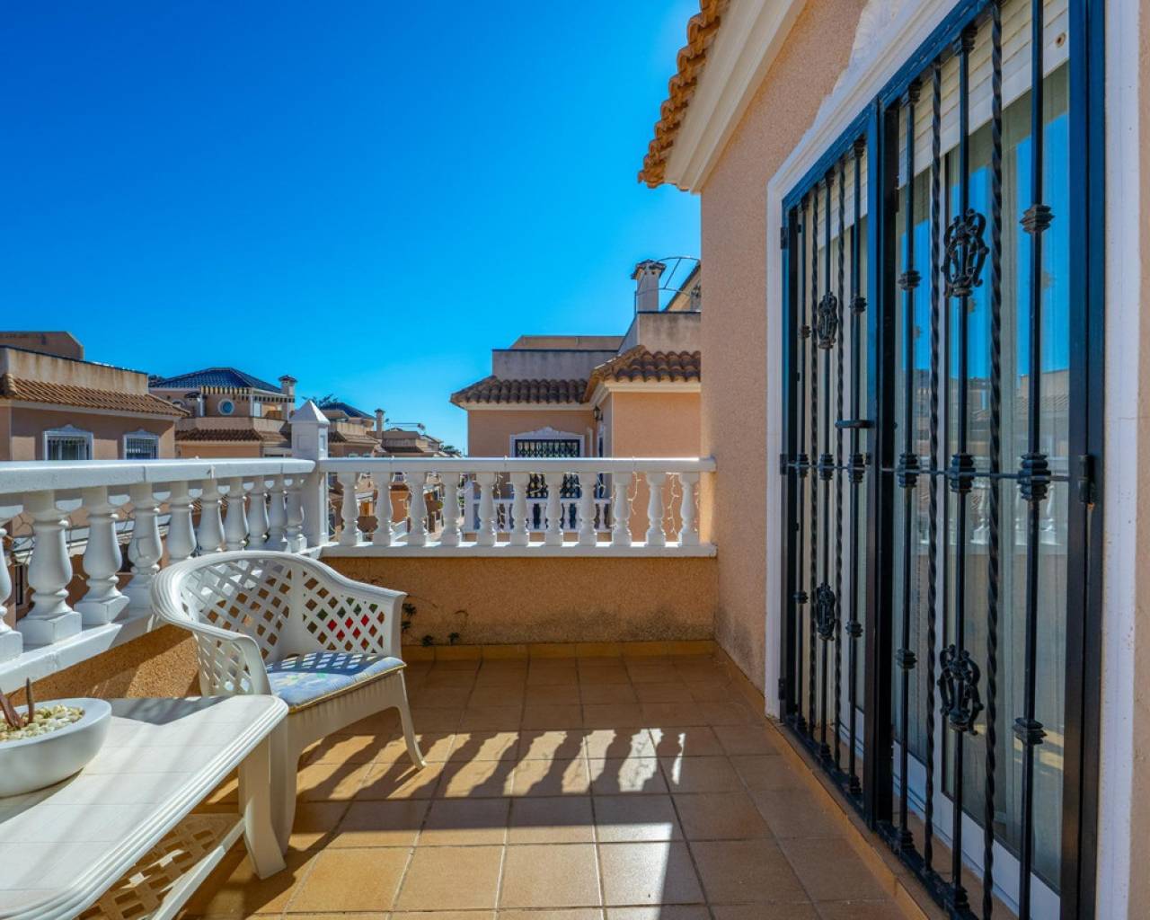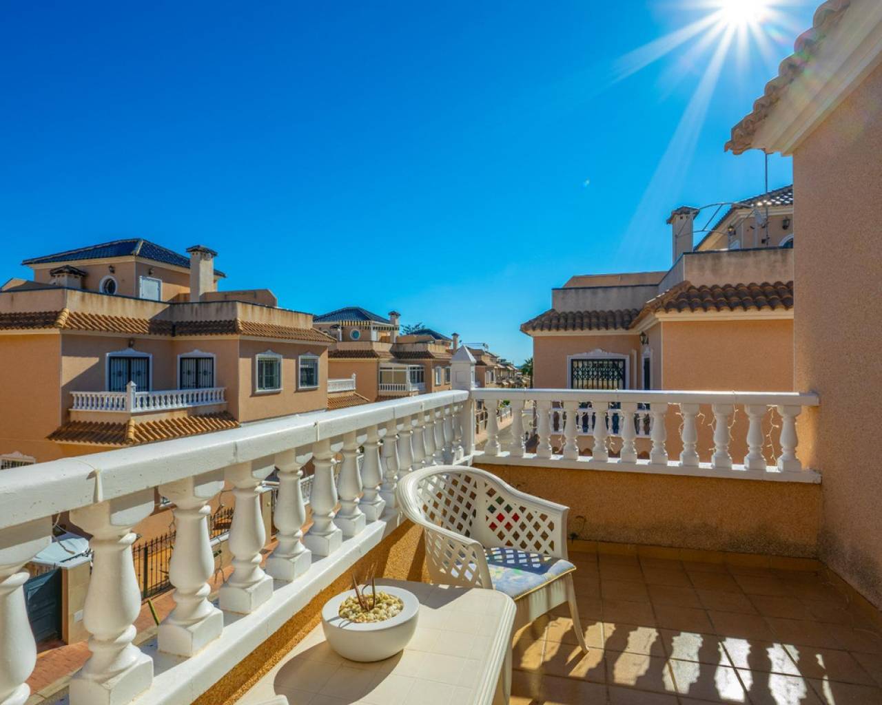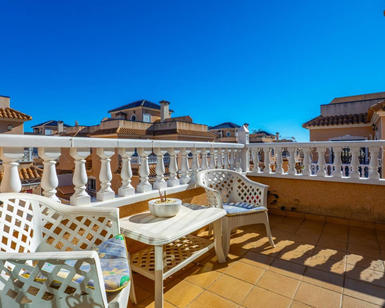 Os presentamos esta encantadora casa dúplex en el Residencial Vista Azul, en Orihuela Costa, una de las zonas más demandadas de la Costa Blanca. Ubicada en un entorno residencial muy valorado, permite disfrutar del clima mediterráneo con tranquilidad y un estilo de vida activo y saludable. La vivienda ofrece una distribución cómoda en dos plantas más solárium. Cuenta con un amplio y luminoso salón amueblado con chimenea, cocina moderna de concepto abierto totalmente equipada, 2 dormitorios y 2 baños completos. Dispone además de una luminosa terraza con zona de descanso y un jardín cuidado con espacio de descanso y aparcamiento dentro de la parcela. Incluye trastero privado. Una cosa por destacar de esta villa son sus placas solares. Se encuentra en Residencial Vista Azul y dispone de piscina comunitaria y zonas ajardinadas. Se encuentra a aproximadamente 1km del mar y a 1700m del Centro Comercial La Zenia Boulevard, con todos los servicios esenciales cercanos: supermercados, restaurantes, tiendas y farmacias. Una ubicación ideal por su tranquilidad, buenas playas y excelente clima, perfecta tanto como residencia habitual como inversión.