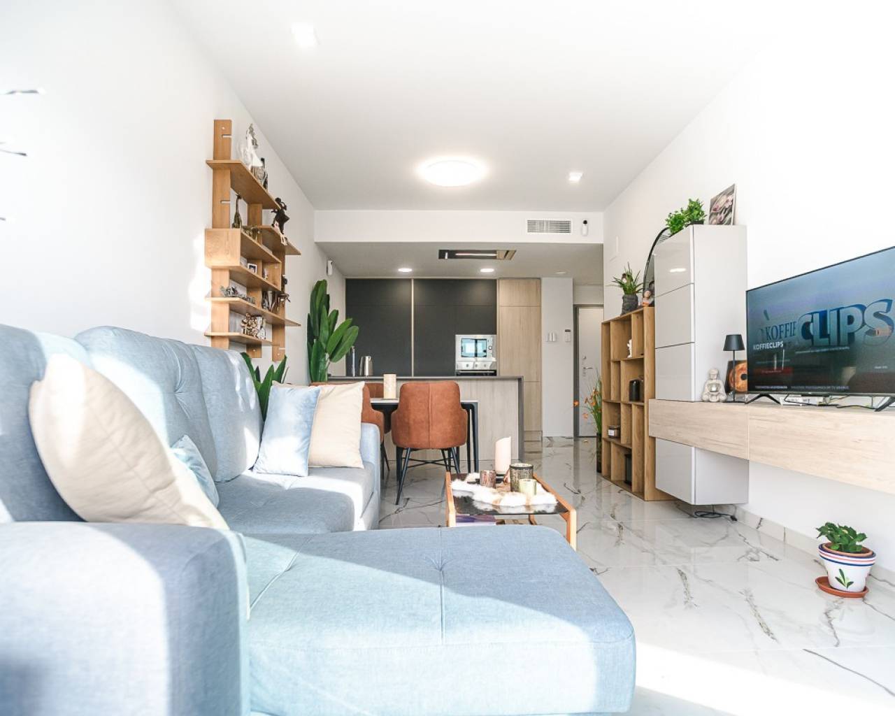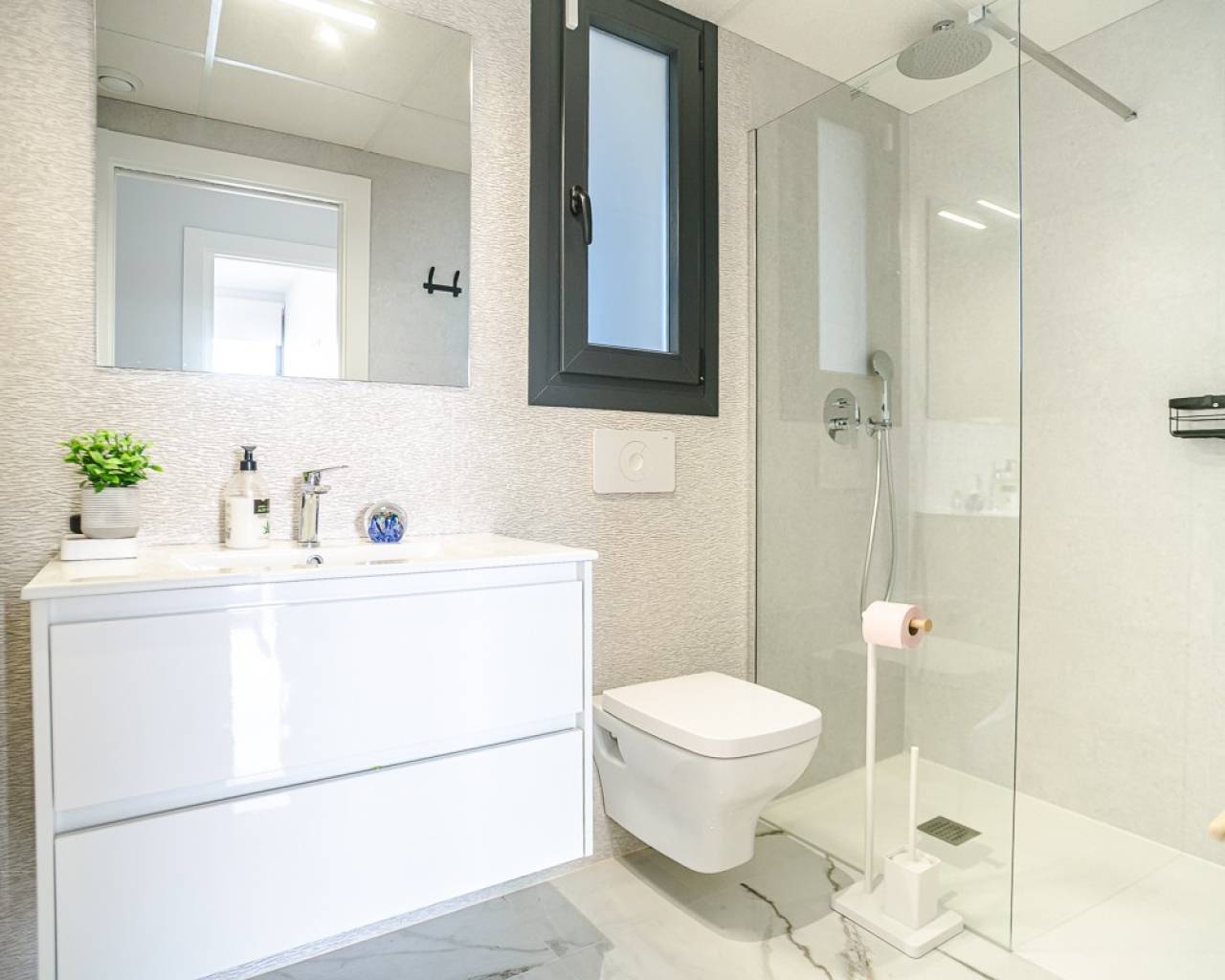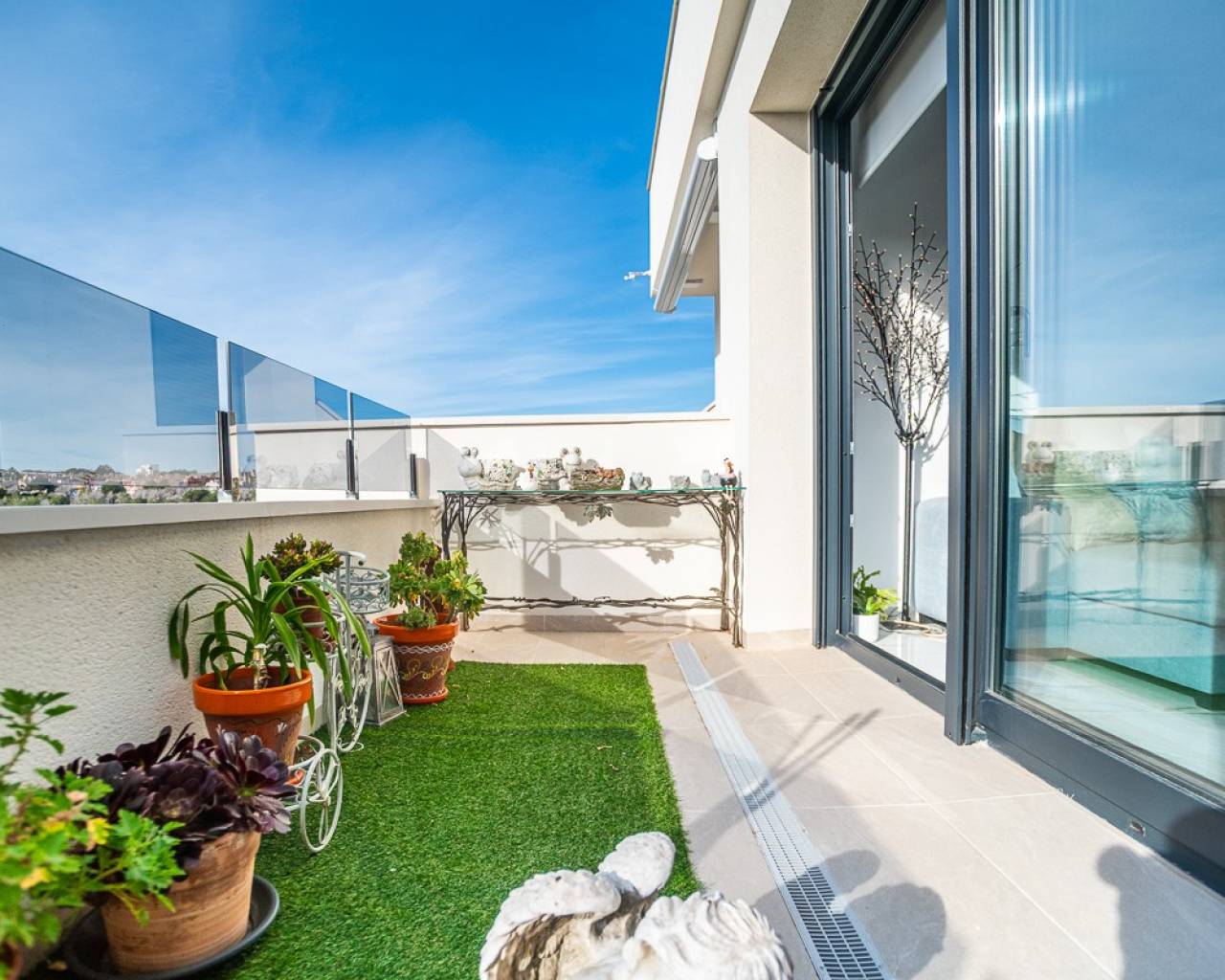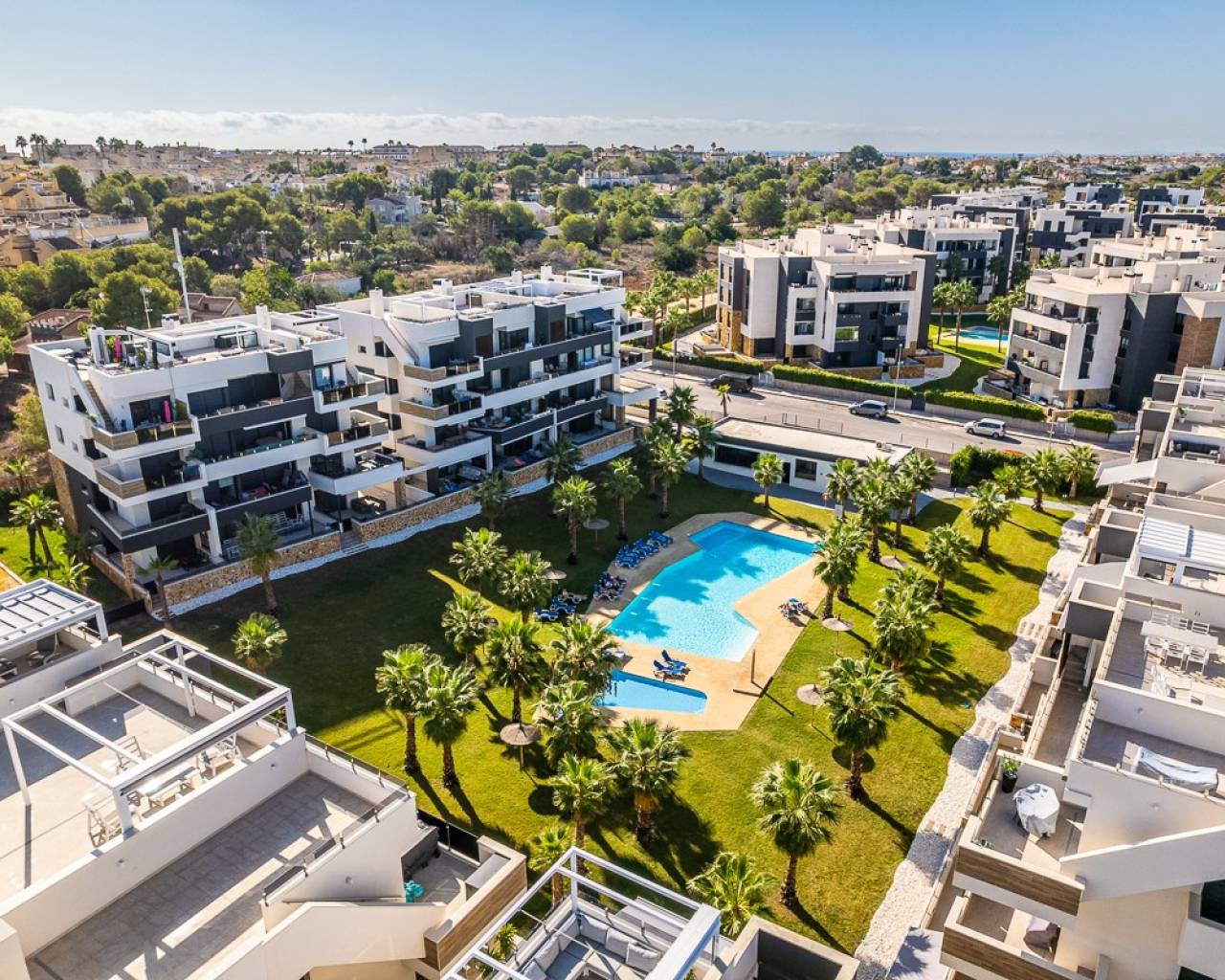 Este ático prácticamente nuevo en Orihuela Costa combina la comodidad moderna con una ubicación privilegiada en la Costa Blanca . La propiedad cuenta con dos dormitorios y amplias terrazas, distribuidas en varios bloques dentro de una urbanización cerrada con piscinas para adultos y niños y hermosas zonas verdes. La ubicación es excepcionalmente conveniente: a poca distancia de todos los servicios y a solo 3 km de las playas de Torrevieja y Orihuela Costa. Los aficionados al golf pueden llegar a los campos de Villamartín a 7 km. El centro comercial Zenia Boulevard está a 9 km. Los aeropuertos de Alicante (50 km) y Murcia Corvera (55 km) ofrecen buenas conexiones internacionales. El apartamento cuenta con acabados de alta calidad y una cocina totalmente equipada con electrodomésticos, persianas motorizadas, puerta de entrada de seguridad, sistema de agua caliente por aerotermia y aire acondicionado completo. Incluye plaza de aparcamiento privada y trastero, y todo el mobiliario está incluido.