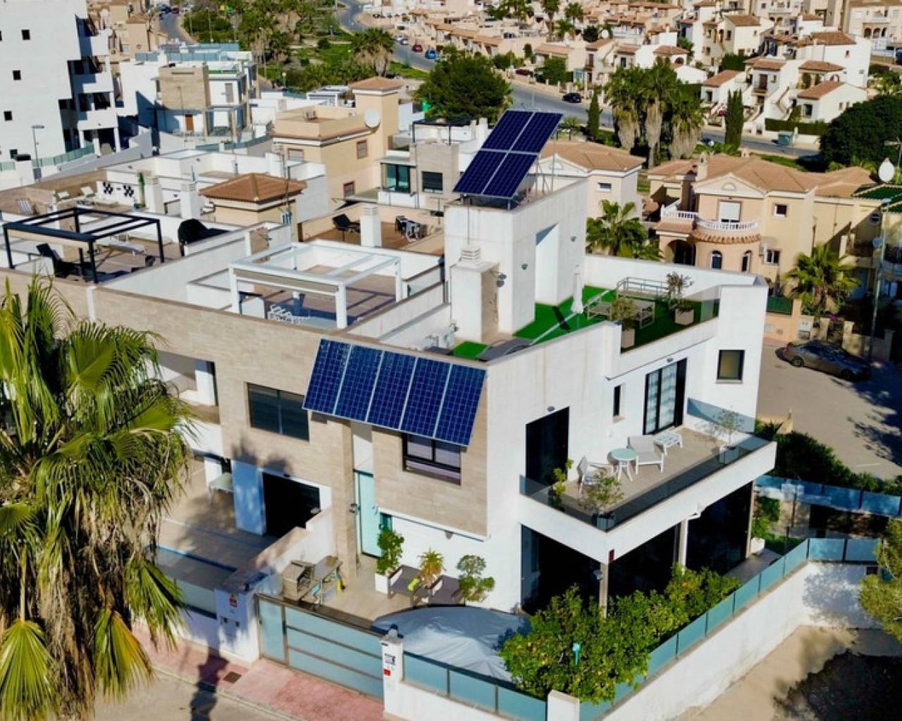 Esta impresionante villa en esquina, situada al final de una tranquila calle sin salida en la codiciada zona de Villamartín, ofrece la combinación perfecta de lujo y vida moderna. Con 3-4 amplios dormitorios y 3 baños (2 de los cuales son en suite), esta casa proporciona un amplio espacio para vivir en familia y recibir invitados. La zona de estar de planta abierta está diseñada para el confort moderno, con una cocina elegante y contemporánea y un salón luminoso y aireado que se conecta sin esfuerzo con la amplia terraza cerrada, ideal para disfrutar durante todo el año. La villa cuenta con una piscina privada climatizada, perfecta para disfrutar del clima mediterráneo en total privacidad. Para aquellos que buscan bienestar y relajación, la propiedad incluye una sauna y calefacción por suelo radiante en todo el inmueble, garantizando comodidad en cada estación. Otros aspectos destacados incluyen un práctico WC, un amplio sótano que ofrece infinitas posibilidades para almacenamiento o espacio adicional, y aparcamiento en la propiedad. Los acabados lujosos y la atención al detalle en toda la villa la elevan a un nivel de elegancia moderna, convirtiéndola en una residencia excepcional en una de las ubicaciones más deseables de Villamartín.
