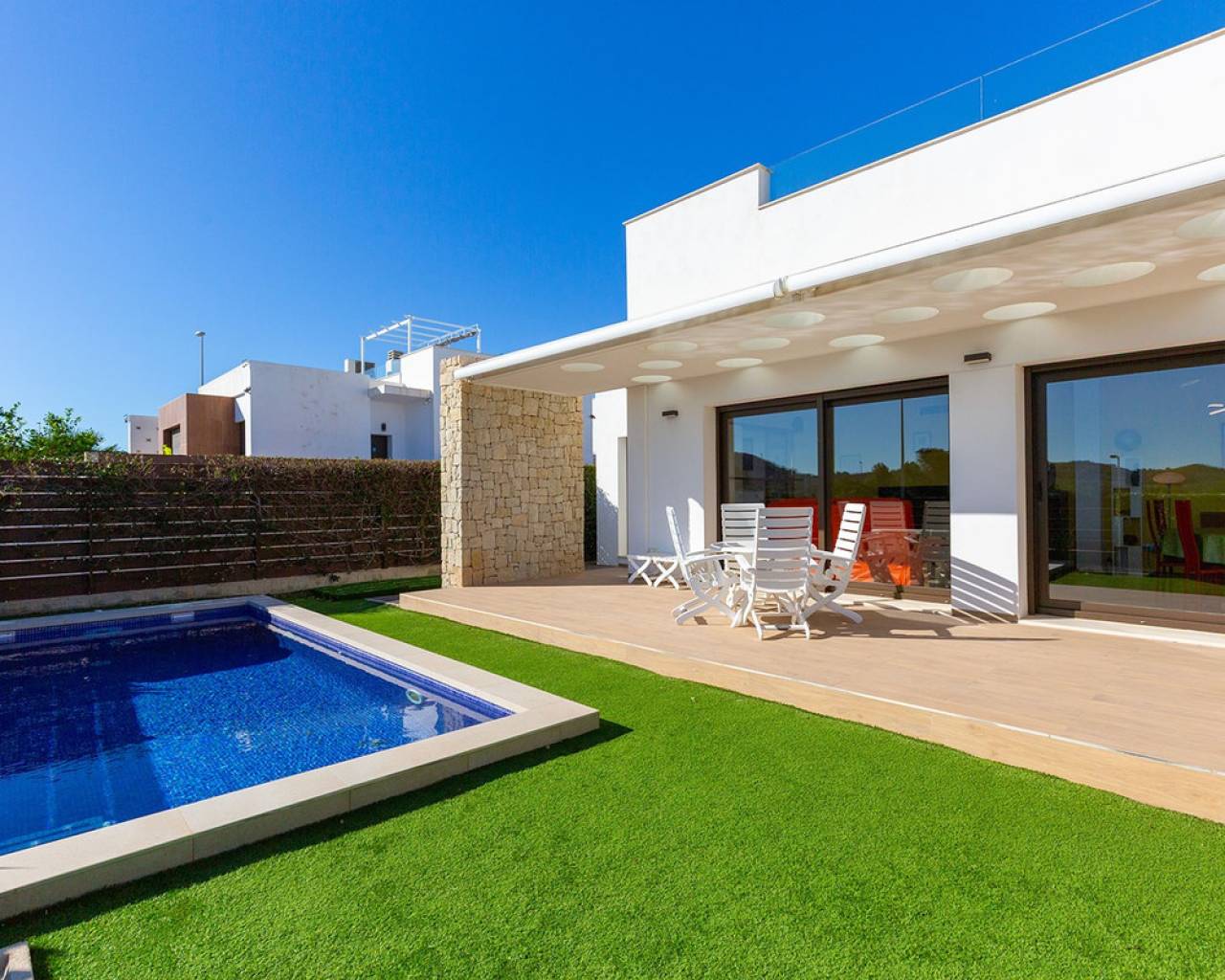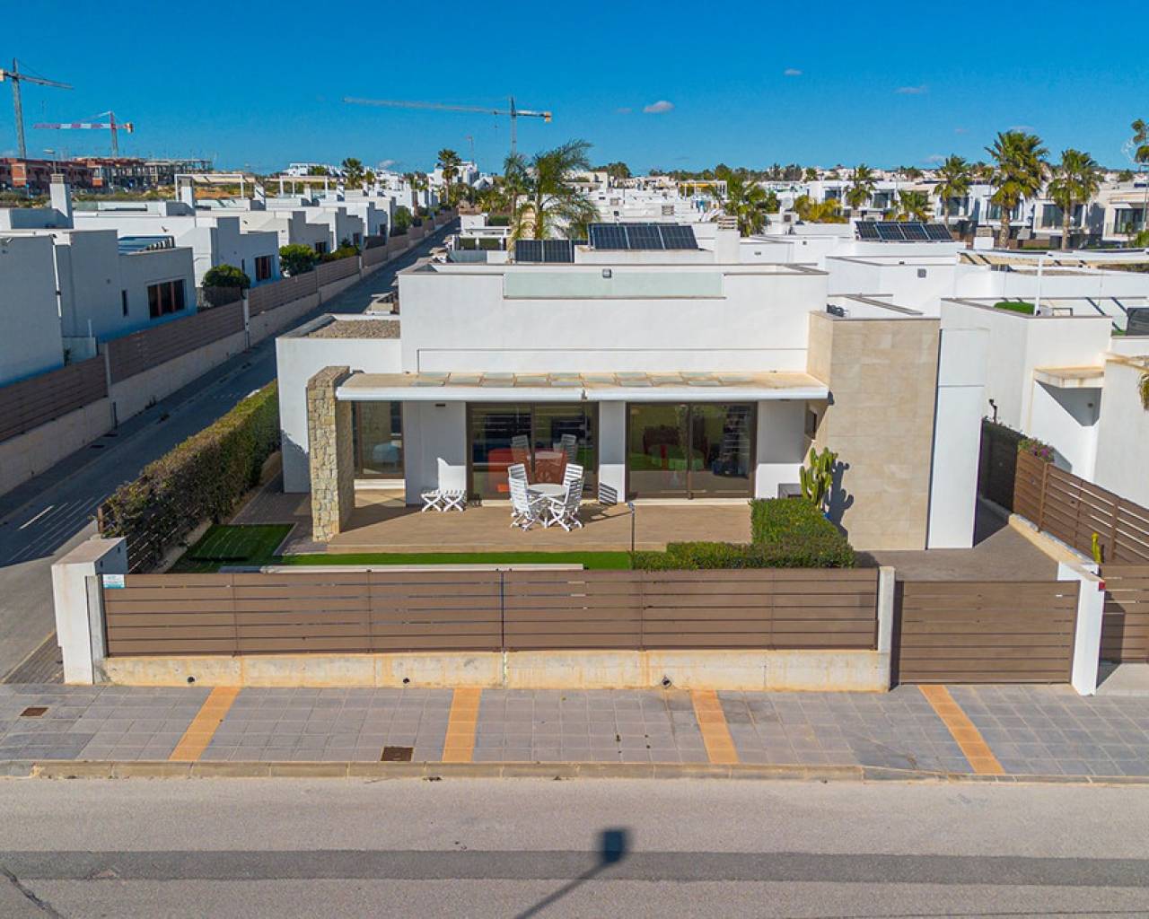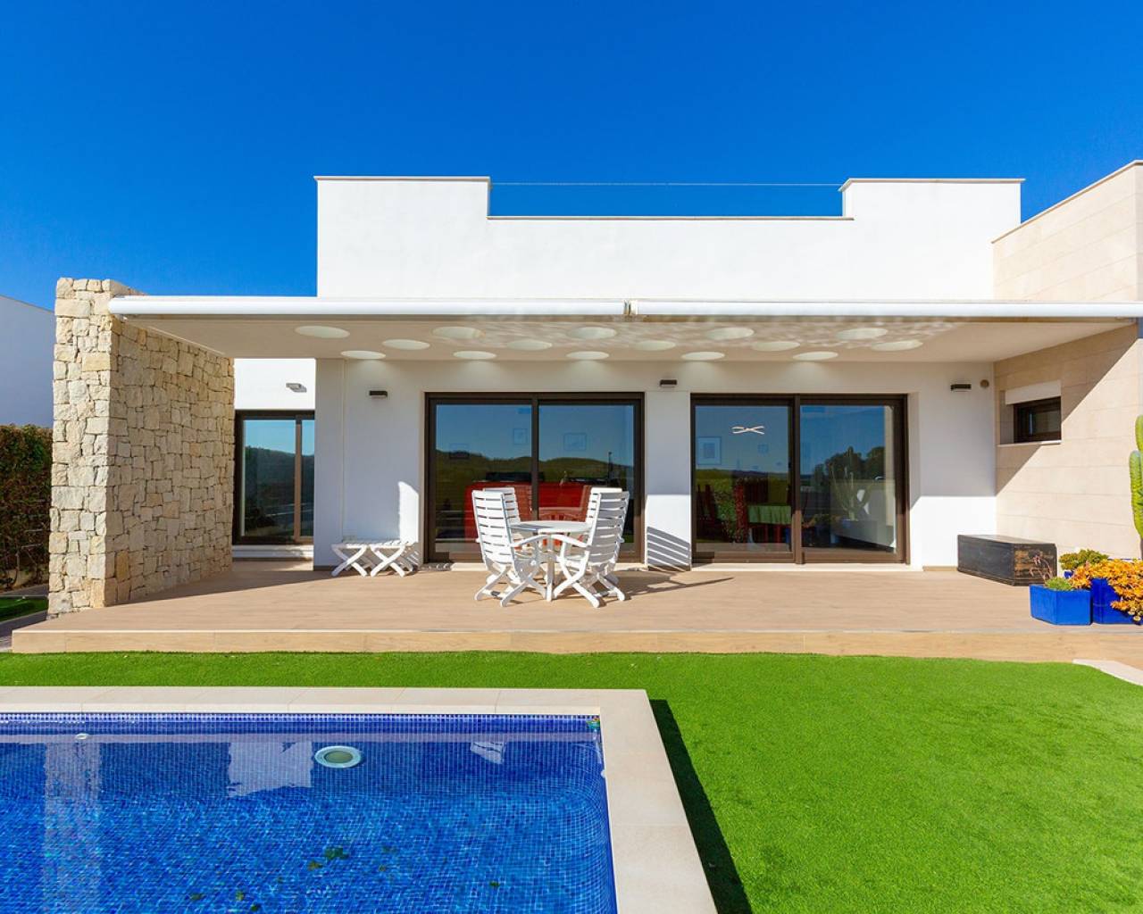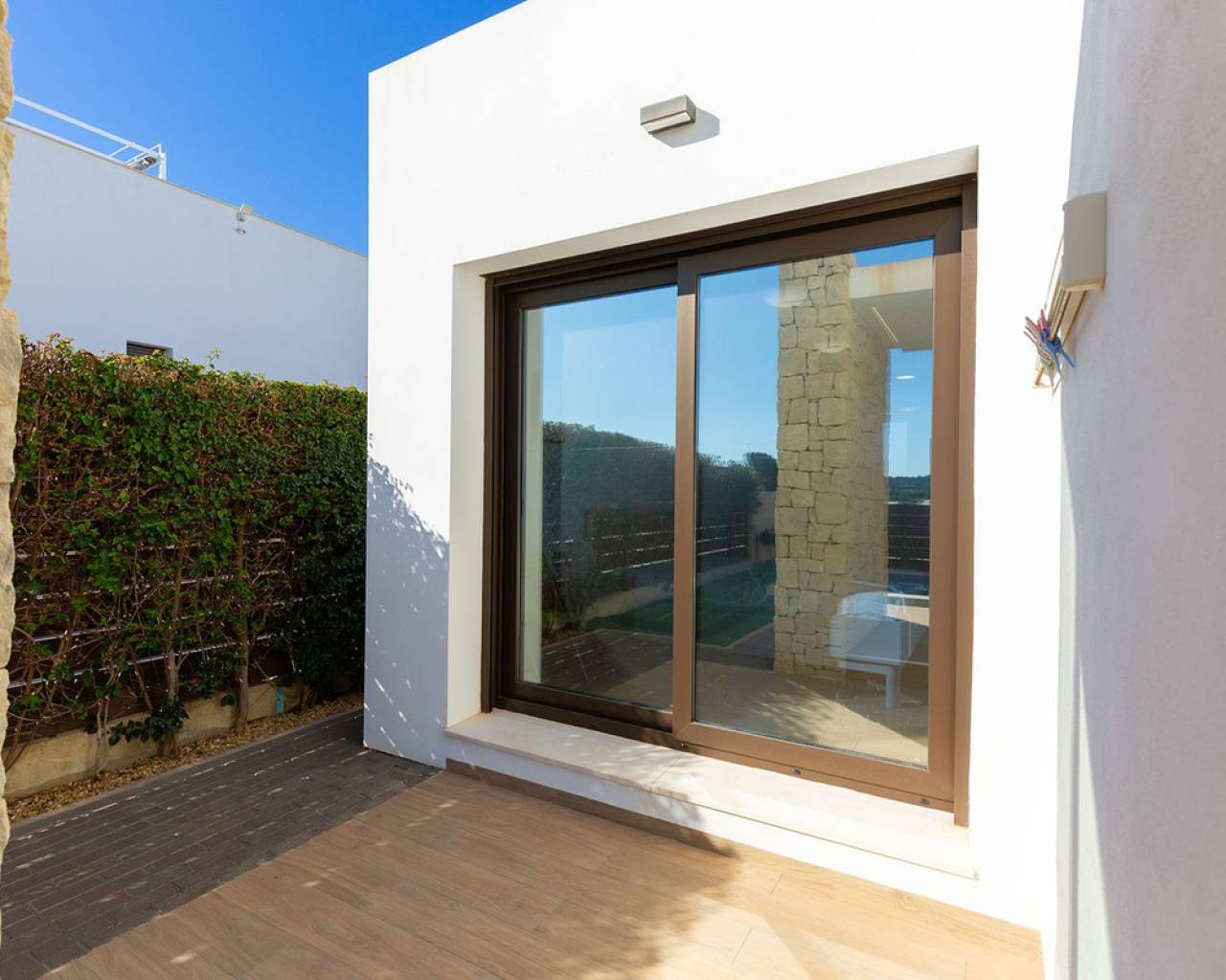 Villa de Lujo de 3 Dormitorios Orientada al Sur con Vistas Abiertas – Vistabella Golf Le presentamos esta impresionante villa contemporánea situada en la prestigiosa zona de Vistabella Golf. Ubicada en una parcela de 324m², la vivienda ofrece 127m² construidos con 3 dormitorios y 2 baños, diseñada para aprovechar al máximo la luz natural y la vida interior-exterior. Desde el primer momento destaca su arquitectura moderna y sus detalles en piedra natural. Gracias a su orientación sur, la propiedad disfruta de sol durante todo el día. El amplio salón-comedor de concepto abierto cuenta con grandes ventanales correderos que conectan directamente con la terraza y la zona de piscina, creando una perfecta integración entre interior y exterior y ofreciendo maravillosas vistas despejadas al entorno natural. En el exterior encontrará: Una espectacular piscina con sistema de nado contracorriente, ideal tanto para relajarse como para nadar Jardín cuidado Amplia terraza ideal para comidas al aire libre Vistas abiertas y despejadas La zona de descanso ha sido diseñada pensando en la comodidad y la funcionalidad. El dormitorio principal destaca por contar con un vestidor amplio, que aporta un espacio excepcional de almacenamiento y un toque extra de lujo. Los otros dos dormitorios dobles son luminosos y se complementan con dos baños modernos de alta calidad. En la planta superior, la terraza ofrece vistas elevadas y un espacio perfecto para disfrutar del estilo de vida mediterráneo. La villa se vende parcialmente amueblada, lo que permite entrar a vivir de inmediato y al mismo tiempo personalizar la vivienda a su gusto. Características principales: 3 dormitorios dobles 2 baños modernos Dormitorio principal con vestidor amplio 127m² construidos Parcela de 324m² Orientación sur Piscina privada con sistema de nado contracorriente Amplio salón de concepto abierto Vistas abiertas Parcialmente amueblada Una villa verdaderamente excepcional en una de las urbanizaciones de golf más demandadas de la Costa Blanca. Para más información o para concertar una visita privada, póngase en contacto con nosotros hoy mismo.