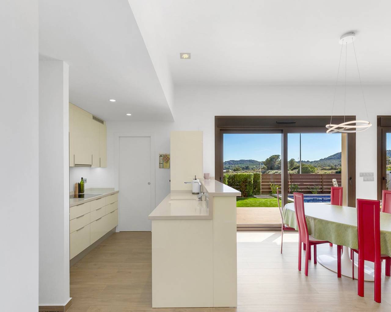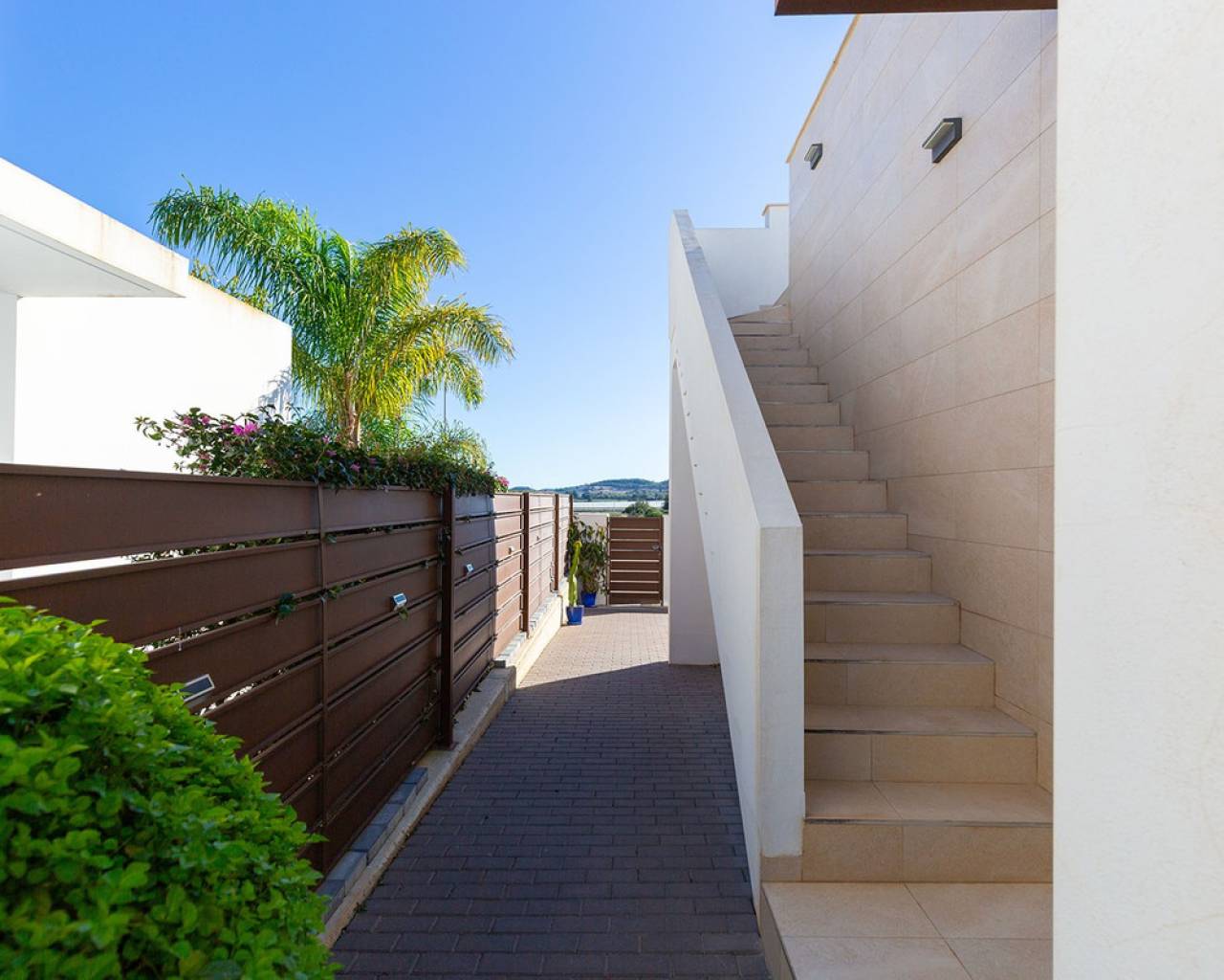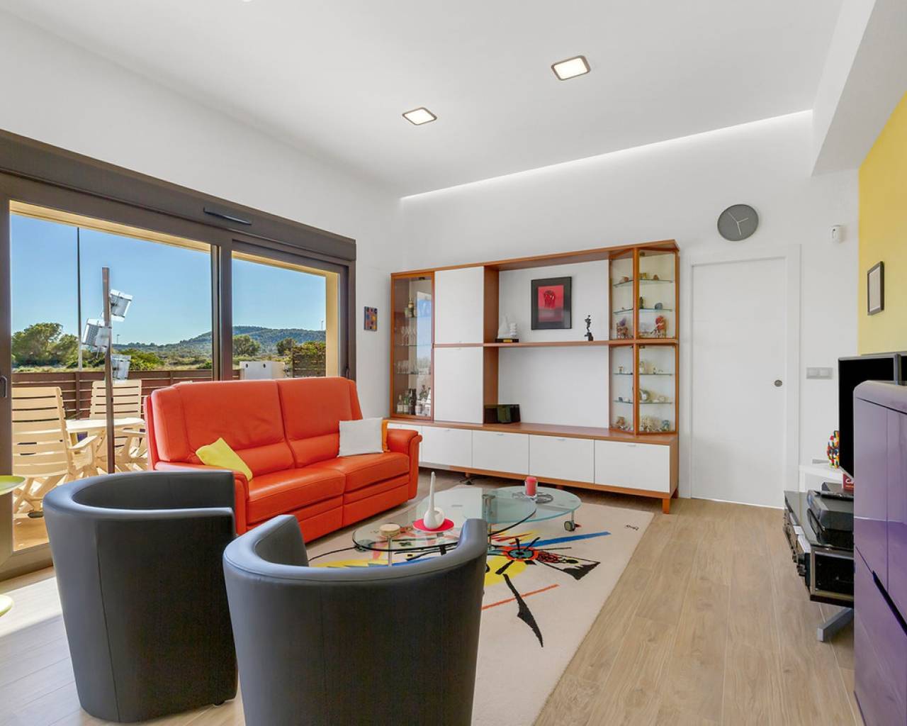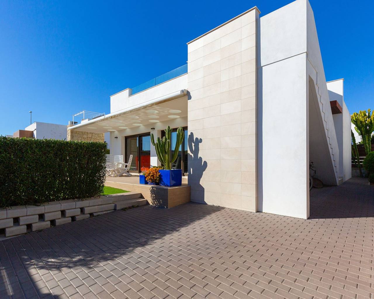 Villa de Lujo de 3 Dormitorios Orientada al Sur con Vistas Abiertas – Vistabella Golf Le presentamos esta impresionante villa contemporánea situada en la prestigiosa zona de Vistabella Golf. Ubicada en una parcela de 324m², la vivienda ofrece 127m² construidos con 3 dormitorios y 2 baños, diseñada para aprovechar al máximo la luz natural y la vida interior-exterior. Desde el primer momento destaca su arquitectura moderna y sus detalles en piedra natural. Gracias a su orientación sur, la propiedad disfruta de sol durante todo el día. El amplio salón-comedor de concepto abierto cuenta con grandes ventanales correderos que conectan directamente con la terraza y la zona de piscina, creando una perfecta integración entre interior y exterior y ofreciendo maravillosas vistas despejadas al entorno natural. En el exterior encontrará: Una espectacular piscina con sistema de nado contracorriente, ideal tanto para relajarse como para nadar Jardín cuidado Amplia terraza ideal para comidas al aire libre Vistas abiertas y despejadas La zona de descanso ha sido diseñada pensando en la comodidad y la funcionalidad. El dormitorio principal destaca por contar con un vestidor amplio, que aporta un espacio excepcional de almacenamiento y un toque extra de lujo. Los otros dos dormitorios dobles son luminosos y se complementan con dos baños modernos de alta calidad. En la planta superior, la terraza ofrece vistas elevadas y un espacio perfecto para disfrutar del estilo de vida mediterráneo. La villa se vende parcialmente amueblada, lo que permite entrar a vivir de inmediato y al mismo tiempo personalizar la vivienda a su gusto. Características principales: 3 dormitorios dobles 2 baños modernos Dormitorio principal con vestidor amplio 127m² construidos Parcela de 324m² Orientación sur Piscina privada con sistema de nado contracorriente Amplio salón de concepto abierto Vistas abiertas Parcialmente amueblada Una villa verdaderamente excepcional en una de las urbanizaciones de golf más demandadas de la Costa Blanca. Para más información o para concertar una visita privada, póngase en contacto con nosotros hoy mismo.