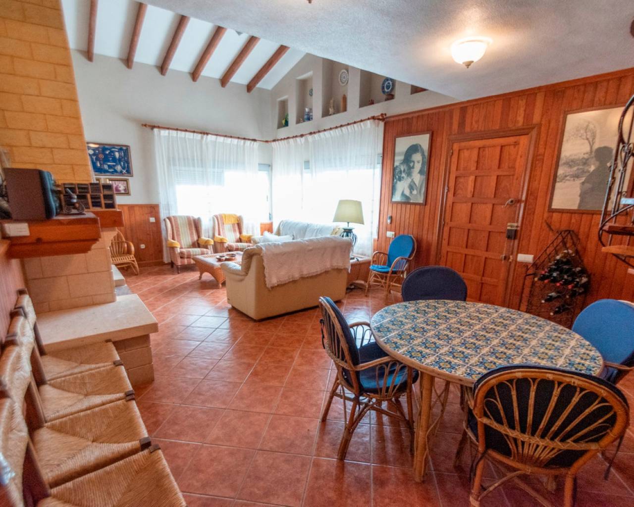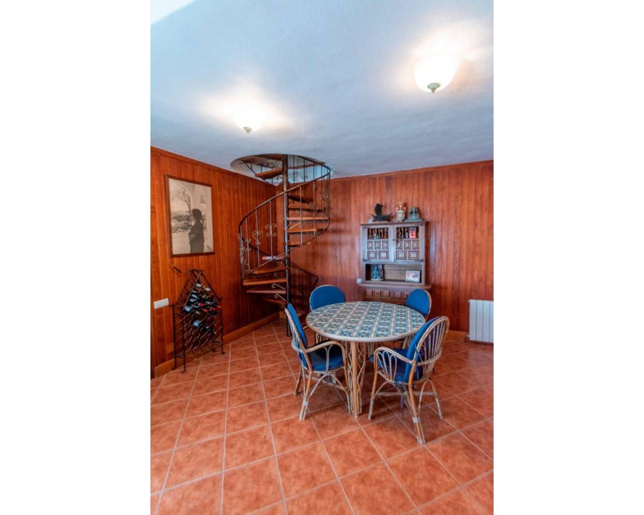 A continuación se encuentra el salón-comedor, con escaleras de caracol que llevan a una buhardilla donde podrás tener tu íntimo despacho u otra habitación. En ese mismo salón-comedor podemos encontrar una chimenea, calefacción y aire acondicionado, para disfrutar de la mejor temperatura tanto en invierno como en verano. También dispone de ventilación cruzada. Es una zona lo suficientemente amplia como para que la disfrute toda la familia.
