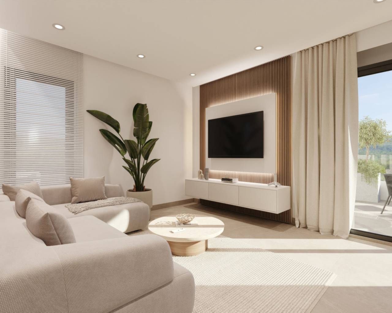 Cada apartamento cuenta con jardines ajardinados delanteros y laterales, aire acondicionado por conductos preinstalado, una plaza de aparcamiento privada en superficie y un trastero, todo incluido en el precio.