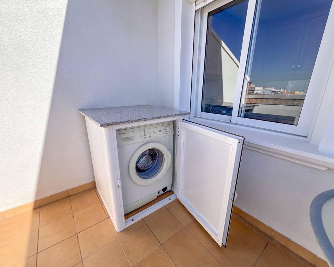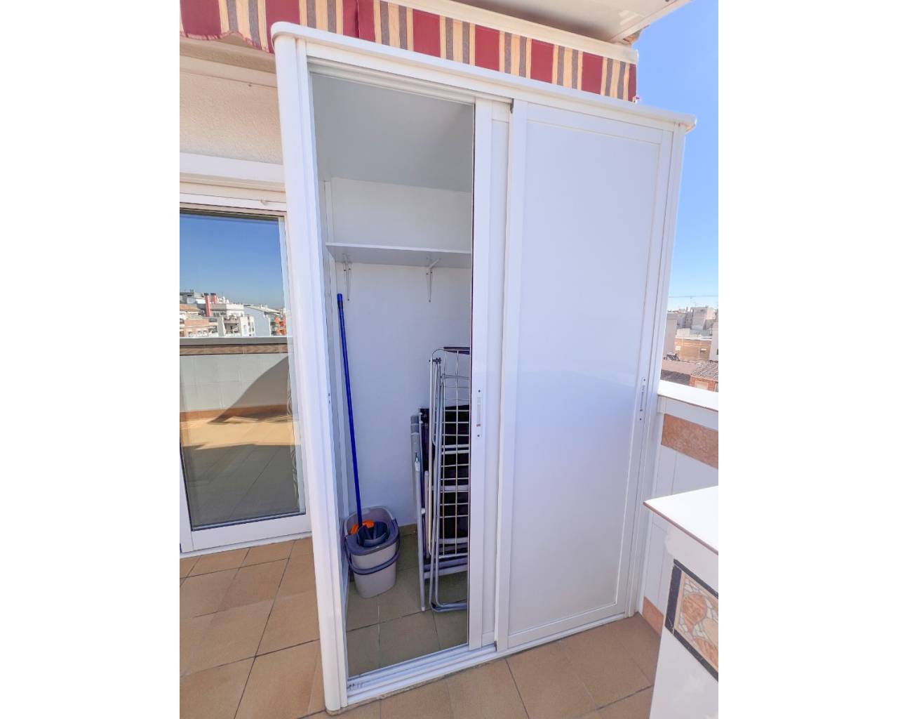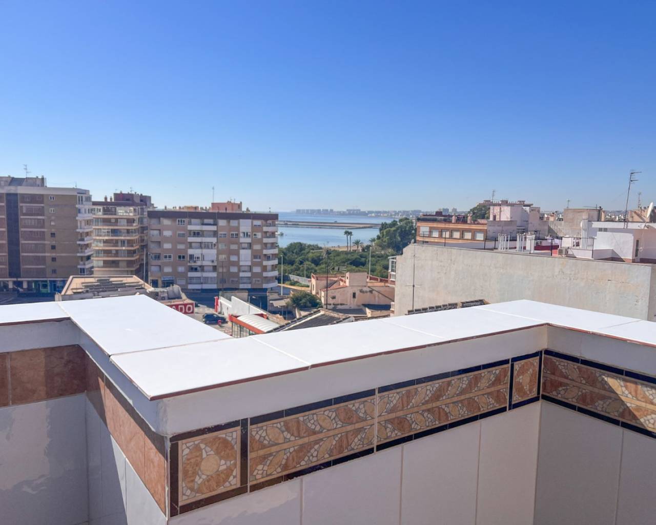 Este elegante ático en Torrevieja ofrece una combinación ideal de amplitud, funcionalidad y estilo mediterráneo, con 88 m² construidos y orientación suroeste, lo que garantiza una excelente luz natural durante todo el día. La vivienda dispone de un espacioso salón-comedor con acceso directo a la terraza, creando un ambiente luminoso y acogedor para el día a día. La cocina independiente, bien distribuida y práctica, cuenta con amplio espacio de almacenamiento y superficie de trabajo. Se compone de 3 dormitorios versátiles y 2 baños completos, incluyendo el dormitorio principal con baño en suite, ofreciendo comodidad tanto para residencia habitual como para segunda vivienda en la Costa Blanca. Como valor añadido, la propiedad incluye un solárium privado en la azotea, delimitado dentro de la zona superior del edificio, ideal para disfrutar del clima mediterráneo y de agradables vistas al mar. Situado en un edificio cuidado con ascensor y con plaza de aparcamiento privada, se encuentra además a distancia a pie de la playa y, como complemento perfecto, en una zona plenamente consolidada con tres parques en el entorno, una amplia oferta de comercios, restaurantes y todos los servicios a pocos pasos.