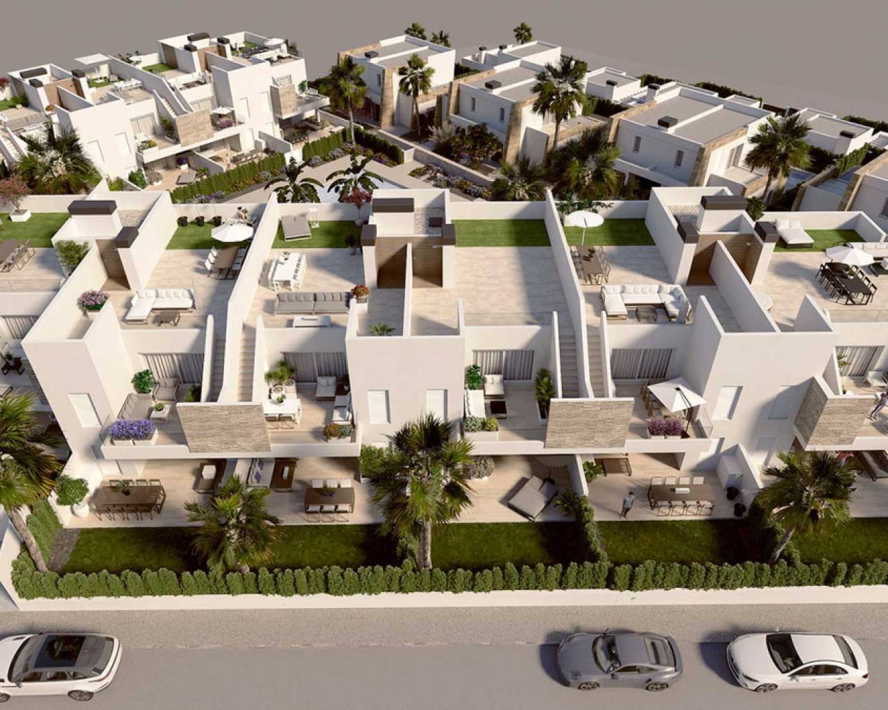Estos luminosos apartamentos de 2 o 3 dormitorios están distribuidos en tres bloques de dos plantas cada uno. El modelo del primer piso tiene jardín privado y los áticos cuentan con un gran solárium, ambos con acceso desde el salón. Su magnífica cocina de estilo moderno, con materiales de alta calidad, está diseñada para satisfacer todas sus necesidades en términos de diseño y funcionalidad. Su barra abierta da paso al resto de la casa, creando un ambiente espacioso y luminoso para recibir a familiares y amigos. Sus dormitorios incluyen armarios para maximizar el espacio de almacenamiento y los baños están completamente equipados con lavabo, espejo, mampara de ducha y calefacción por suelo radiante para mayor comodidad. También cuenta con aire acondicionado en toda la casa. En el exterior hay un jardín comunitario con una amplia variedad de plantas, zona de hamacas y una gran piscina para disfrutar del día al más puro estilo mediterráneo. Este modelo está disponible con aparcamiento y trastero. Sin duda, estos apartamentos son la elección perfecta para quienes buscan un estilo de vida tranquilo y exclusivo.