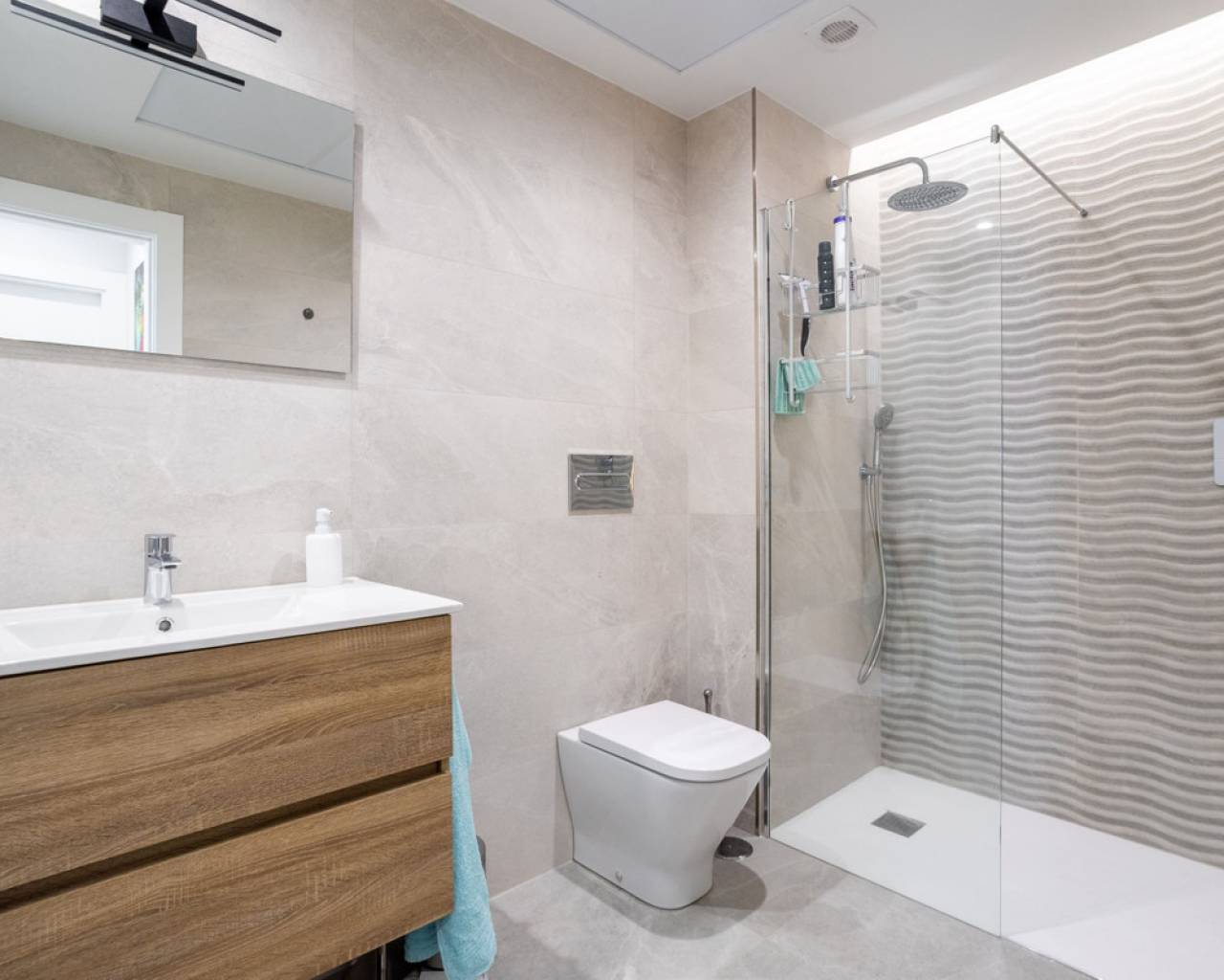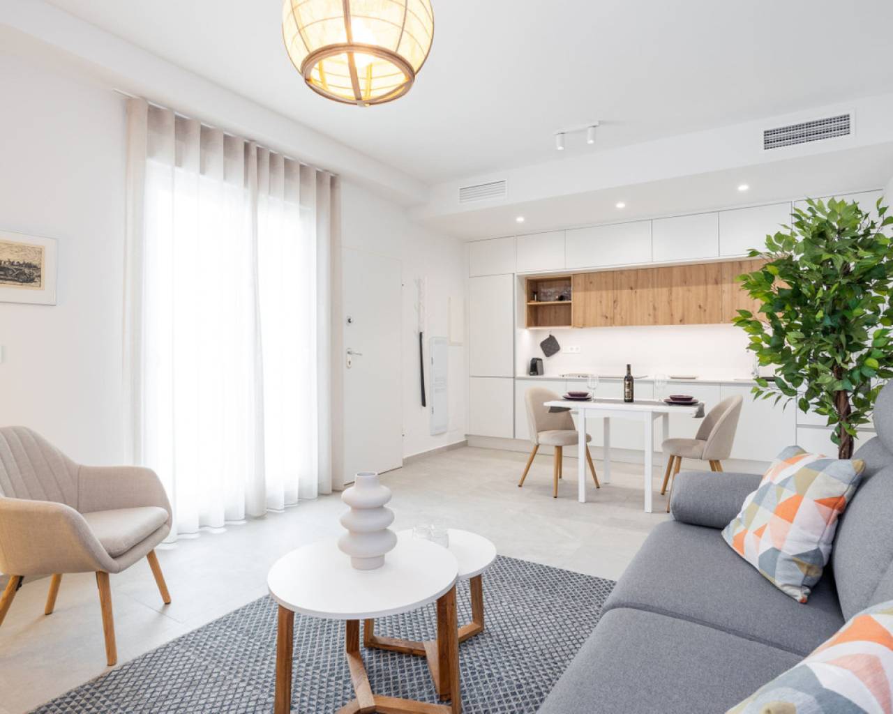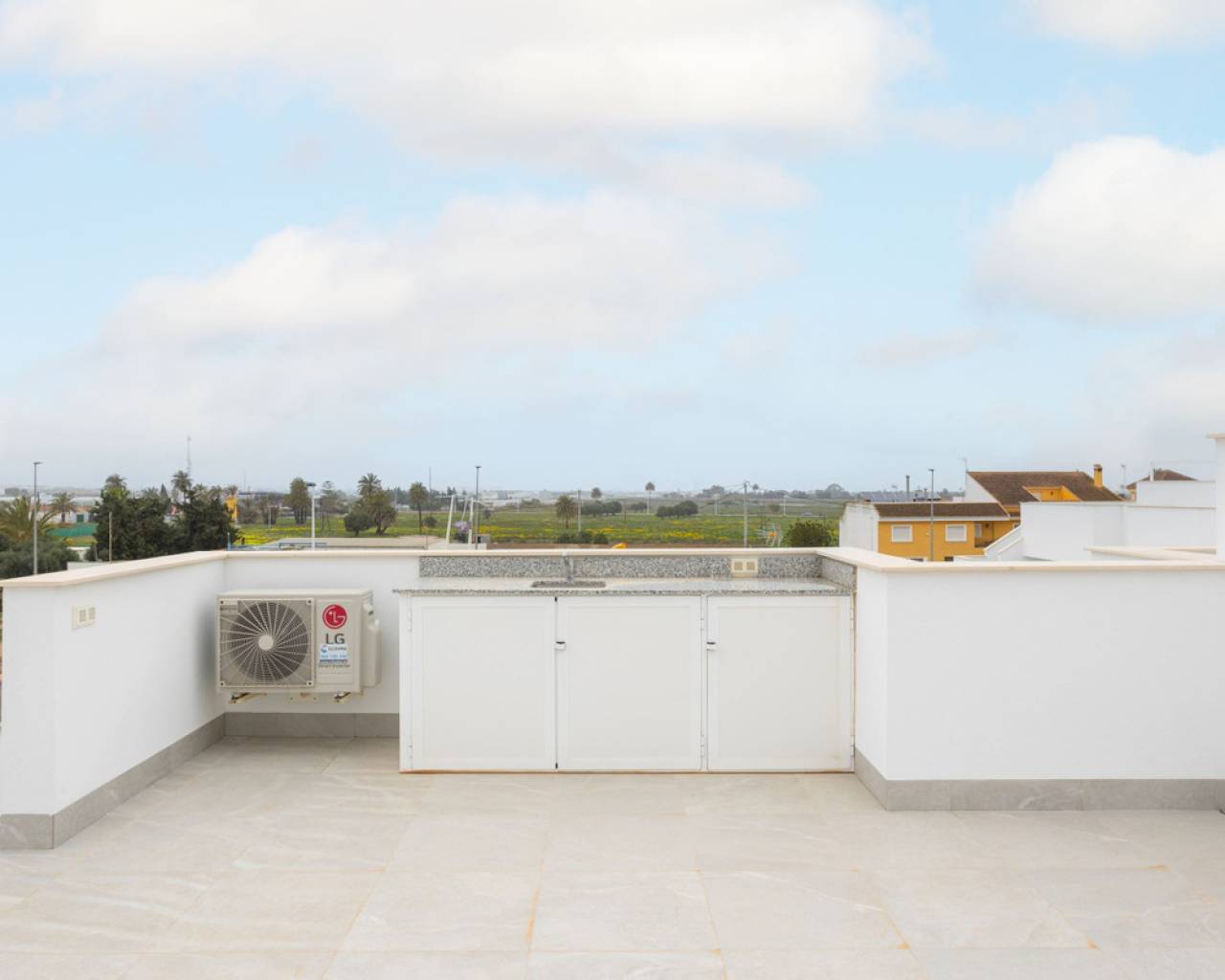Apartamento moderno con gran azotea y piscina comunitaria. Una cálida bienvenida a este moderno y bien planificado apartamento ubicado en la popular zona de San Pedro del Pinatar en la Costa Cálida. Ofrece alojamiento elegante y que aprovecha el espacio, con un dormitorio, un baño, una sala de estar y una cocina en un espacio abierto. Además, hay un balcón y una gran terraza en la azotea en una ubicación soleada. La sala de estar y la cocina están ubicadas en un espacio abierto y la habitación tiene un agradable flujo de luz y una sensación acogedora. Hay espacio tanto para una sala de estar como para un comedor. La cocina cuenta con buenas superficies de almacenamiento y trabajo. El dormitorio tiene una ubicación tranquila y un agradable flujo de luz, hay espacio para una cama doble y mesitas de noche. La habitación también dispone de espacio de almacenaje en armarios empotrados. El baño es elegante y está equipado con inodoro, lavabo con inodoro y ducha con pared de cristal. También hay una ventana para luz y ventilación. En la gran terraza hay una cocina al aire libre, también hay espacio para muebles de exterior, tumbonas y un grupo de relax. En la zona común hay una piscina en una bonita ubicación. Aquí vives cerca del mar Mediterráneo, Mar Menor y hermosas playas, y a una distancia cómoda de tiendas y restaurantes. Para aquellos interesados en el golf, hay varios campos de golf conocidos en la Costa Blanca y la Costa Cálida. A las ciudades más grandes de Murcia, Cartagena y Torrevieja se llega fácilmente en coche. Póngase en contacto con nosotros para obtener más información o reservar una visita. Por supuesto, realizaremos visitas digitales si no puede asistir en persona.