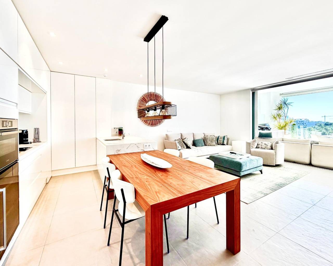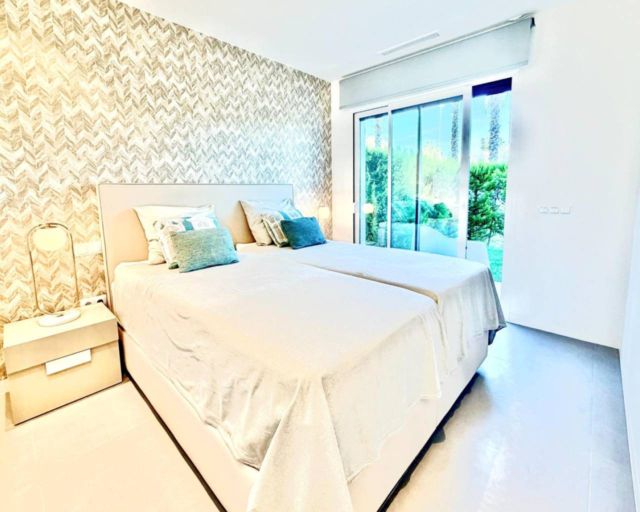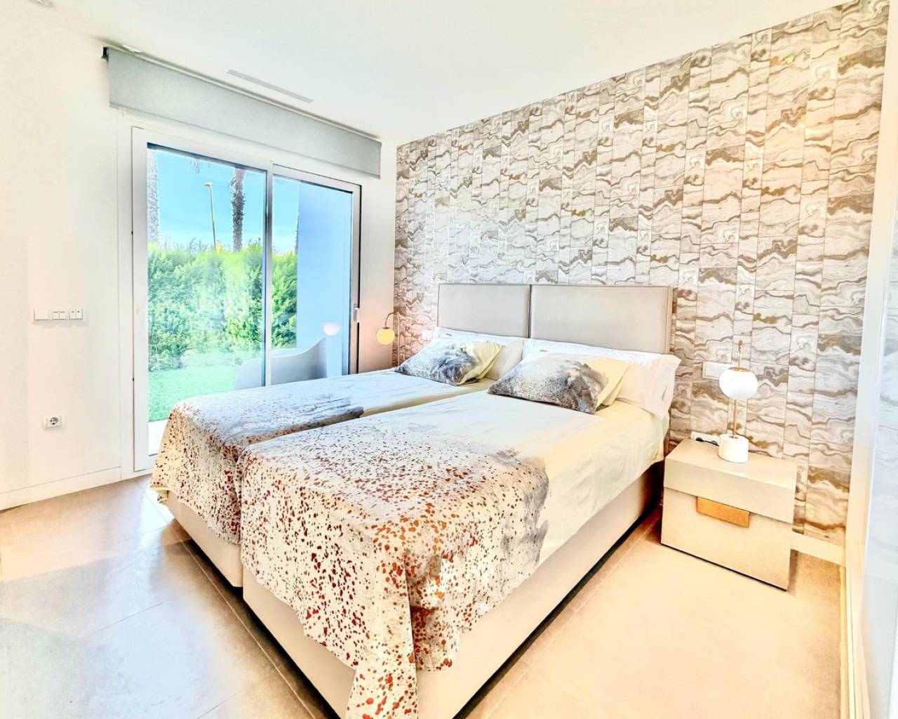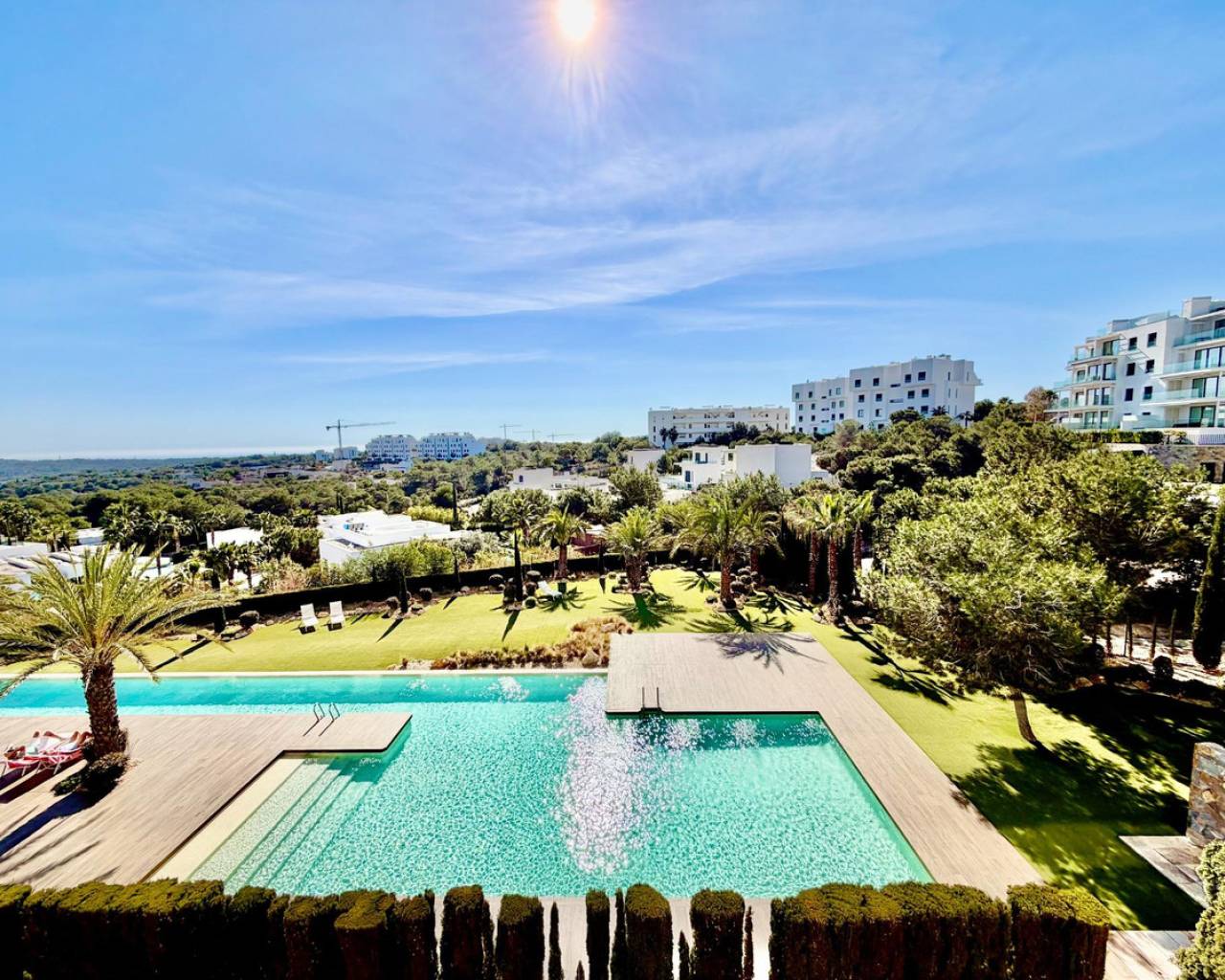 Precioso Apartamento en Planta Baja en Las Colinas Golf – Espacio, Privacidad y Orientación Sur~~Bienvenido a este magnífico apartamento orientado al sur en la exclusiva comunidad Naranjo de Las Colinas Golf & Country Club. Construido en 2020 y en excelente estado (el edificio fue pintado en 2025), ofrece comodidad, privacidad y un auténtico estilo de vida mediterráneo.~~Con 90 m2 construidos, dispone de dos amplios dormitorios y dos baños completos con suelo radiante. El luminoso salón se abre a una amplia terraza frontal de 35 m2 con vistas a las zonas verdes comunitarias y vistas abiertas hacia el mar. En la parte trasera, una segunda terraza privada con jardín ofrece mayor privacidad y sombra en verano.~~La cocina está totalmente equipada con electrodomésticos de calidad y la vivienda se vende completamente amueblada. Incluye sistema domótico, aire acondicionado frío/calor, iluminación LED, persianas eléctricas y sistema de filtrado de agua.~~La comunidad cuenta con jardines cuidados y piscina comunitaria. Incluye plaza de garaje subterránea y trastero con acceso por ascensor.~~A solo 2 km del golf y servicios, 7 km de la playa y 45 minutos del aeropuerto.~~✨ Un hogar donde confort y luz del sur se unen perfectamente.