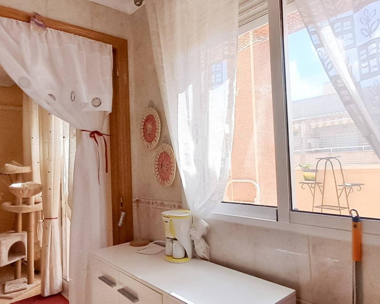 Este precioso ático de 2 dormitorios está listo para entrar a vivir. Ha sido reformado para ofrecer accesibilidad total en silla de ruedas, facilitando la movilidad y el confort en toda la vivienda. El baño está completamente renovado con un diseño moderno y funcional. El luminoso salón tiene salida directa a una amplia terraza privada(15m2), ideal para disfrutar del sol y del aire mediterráneo. La terraza dispone de espacio suficiente para una mesa de comedor y una zona cómoda de descanso al aire libre. Ubicado en una zona conveniente, cerca de todos los servicios de Torrevieja, podrá disfrutar del centro de la ciudad, parques, tiendas, restaurantes y hermosas playas a pocos minutos. Reserve su visita hoy mismo y haga suyo este maravilloso ático de 2 dormitorios.