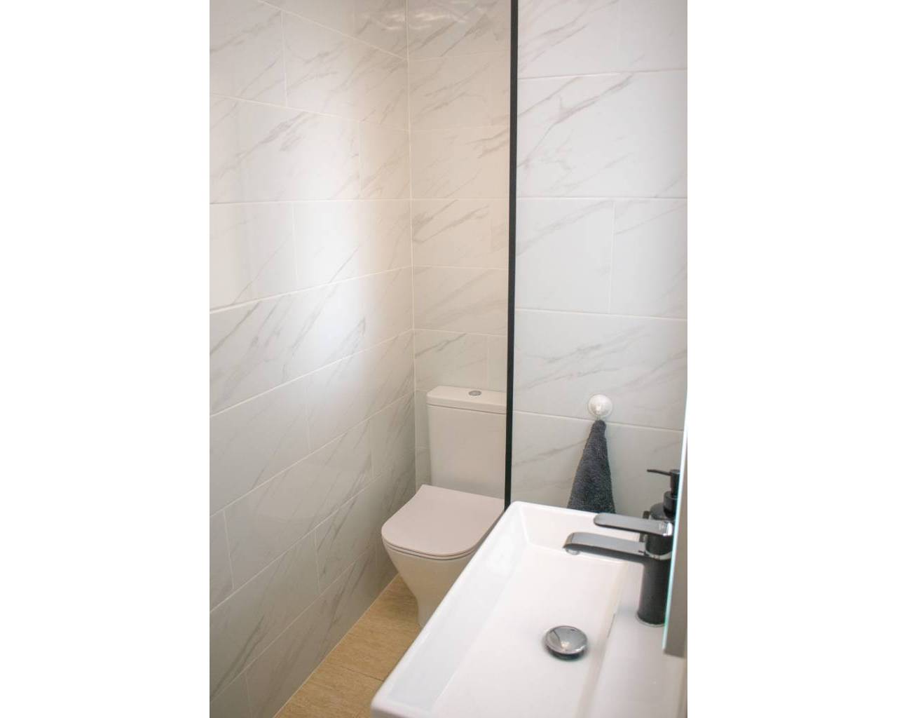 En la planta superior se encuentra una elegante habitación principal con baño en suite, que da acceso a una terraza privada y un mirador, ideales para disfrutar del sol y las vistas abiertas.