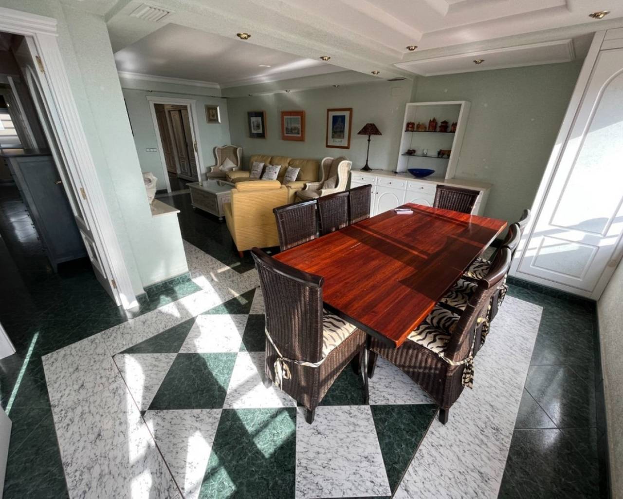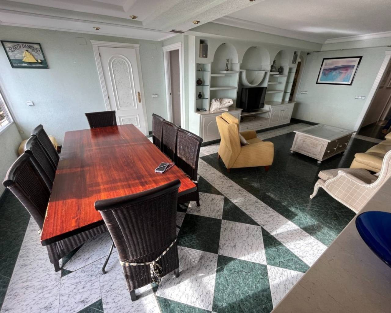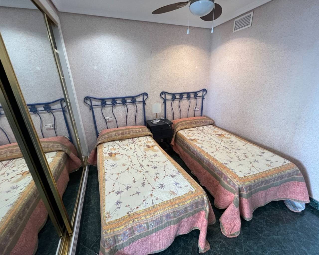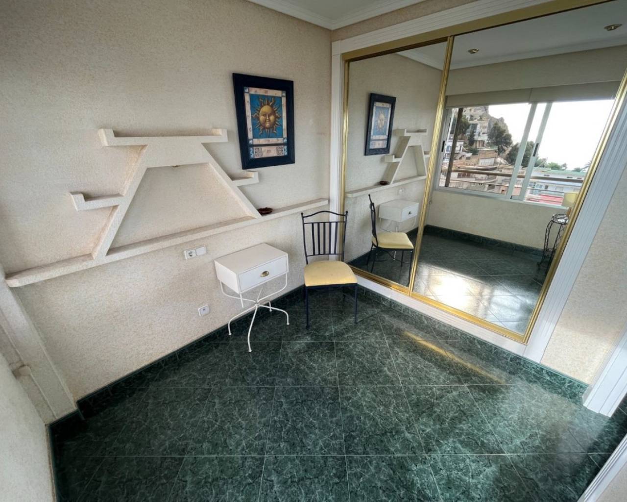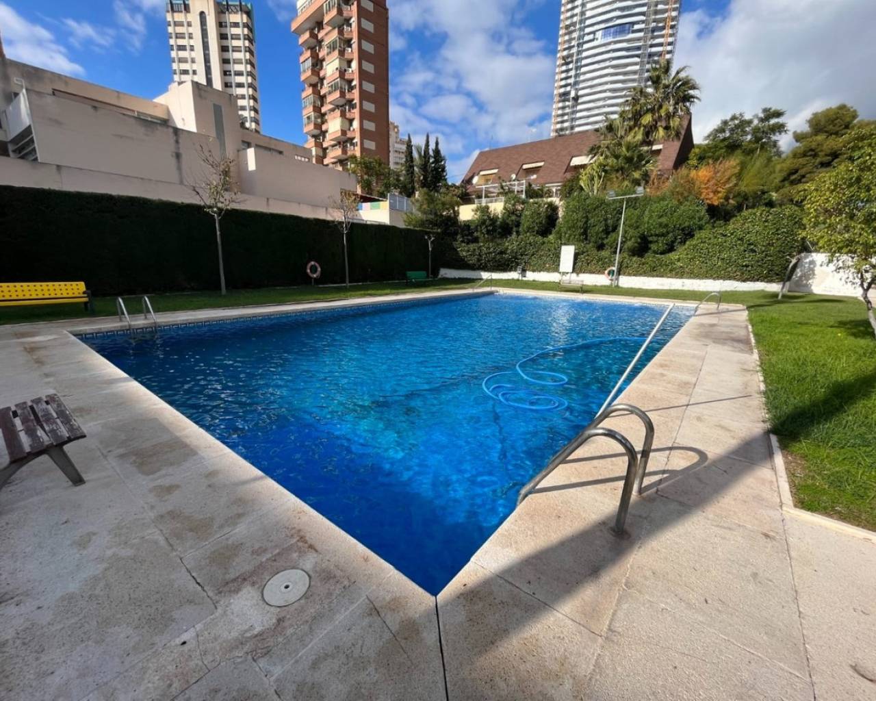 Gran Apartamento a solo 80 metros de la playa de Poniente de Benidorm, con excepcionales vistas al mar.Incluye 3 dormitorios, 2 baños, amplio salón-comedor y cocina independiente equipada. Fue reformado hace ya varios años, entro otras cosas incorporando la terraza original a la vivienda, pero se conserva en muy buen estado.Está construido con buenos materiales como: pavimentos de gres, carpintería interior lacada en blanco, cocina amueblada con electrodomésticos, armarios empotrados, aire acondicionado frío-calor por conductos, etc.Ubicado en la planta 8 de una conocida urbanización de la Playa de Poniente, con zonas comunes y ascensores recientemente renovados, dos pistas de tenis, una pista de baloncesto, piscina comunitaria y aparcamiento cubierto en superficie de libre disposición.Situado en la Playa de Poniente, en su extremo mas cercano a La Cala, bien comunicado por carretera, autobús en la puerta, y rodeado de todo tipo de comercios y servicios. Con fácil acceso a la autopista AP7 que comunica con el resto de la Costa Blanca.