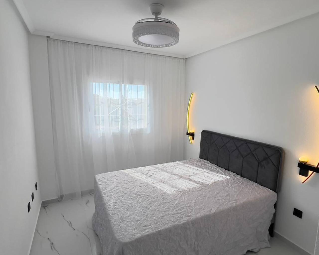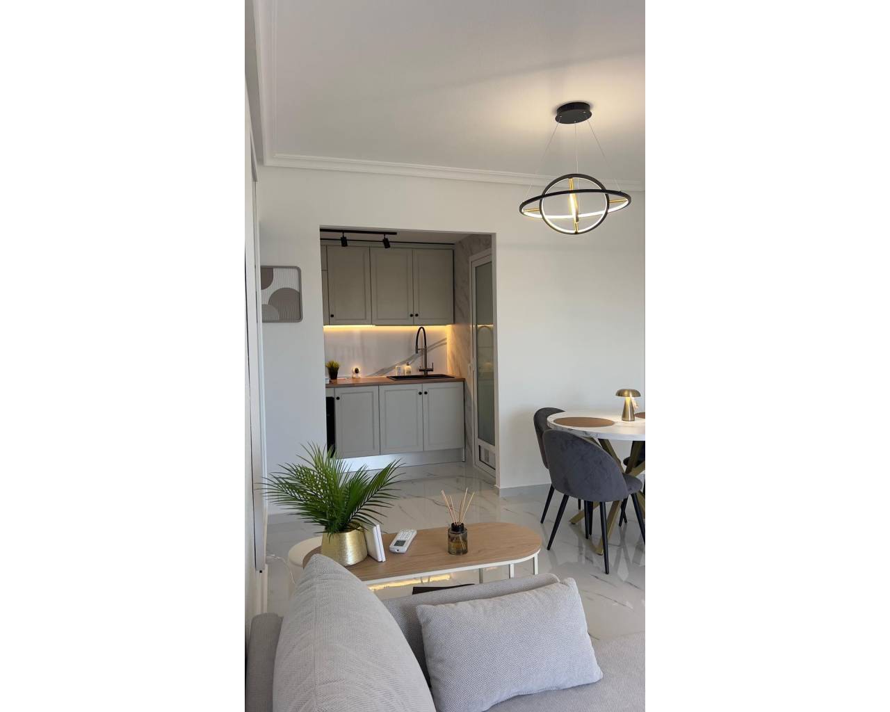 Este ático de 1 dormitorio y 1 baño, bellamente renovado, está perfectamente ubicado en la muy solicitada zona de Playa Flamenca, dentro de la deseable urbanización Zenia Star 1. Con un diseño luminoso y abierto, la propiedad ofrece un espacio habitable moderno y elegante, diseñado para la comodidad y la conveniencia. El apartamento disfruta de una orientación soleada al sur, lo que permite que entre mucha luz natural durante todo el día, y cuenta con maravillosas vistas al mar que se pueden disfrutar desde la sala de estar principal y la terraza.La vivienda ha sido completamente renovada con un alto nivel, combinando acabados contemporáneos con un diseño práctico. La cocina americana y la sala de estar crean un ambiente acogedor, ideal para relajarse o entretener a los invitados. Un lavadero independiente añade funcionalidad adicional, mientras que un trastero privado proporciona espacio adicional para pertenencias personales.Los residentes de Zenia Star 1 se benefician del acceso a una piscina comunitaria y una zona ajardinada muy bien mantenidas, perfectas para refrescarse o disfrutar del cálido clima mediterráneo. La ubicación es inmejorable, situada a poca distancia de todos los servicios locales, incluyendo supermercados, cafeterías, restaurantes y el popular Centro Comercial Playa Flamenca. El famoso centro comercial La Zenia Boulevard está a un corto paseo, ofreciendo una amplia gama de tiendas, opciones gastronómicas y entretenimiento.Para los amantes de la playa, las hermosas playas de arena del Mediterráneo están a sólo 5 minutos en coche, incluyendo las galardonadas playas de Playa Flamenca y La Zenia. Las familias también apreciarán la comodidad de tener la escuela española local a sólo 50 metros de la propiedad.