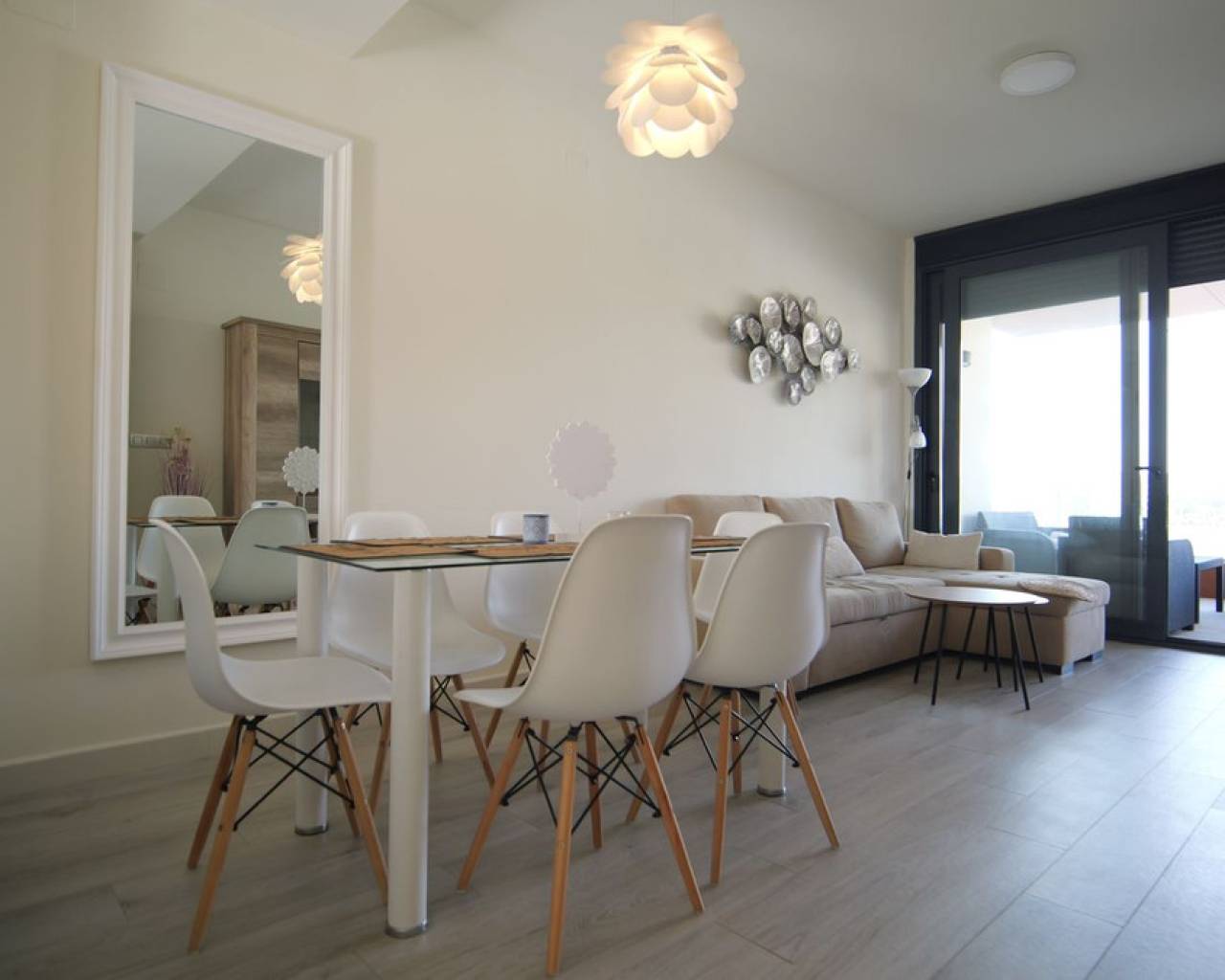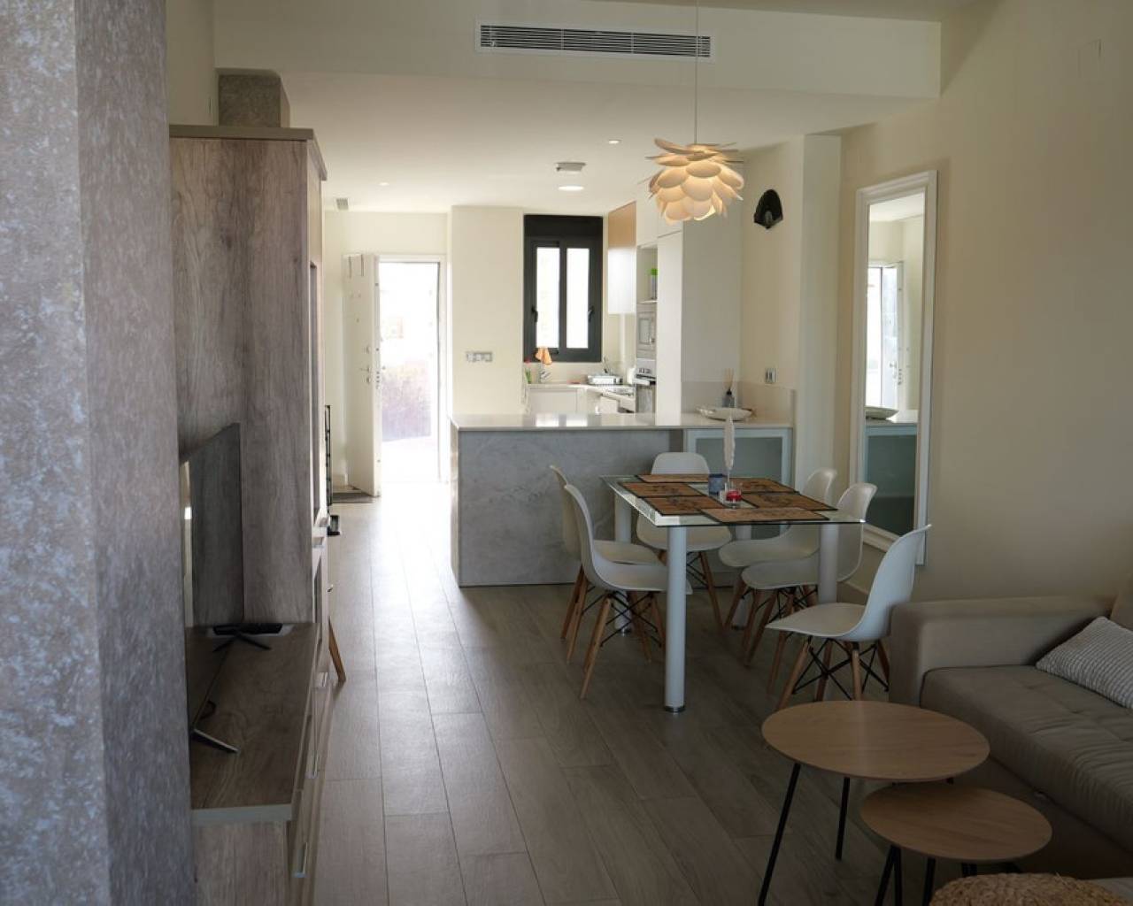 Cómodo apartamento en venta en una zona tranquila junto al Parque Natural de Las Dunas y el mar Mediterráneo, en la pintoresca Guardamar del Segura, en la Costa Blanca. Esta moderna propiedad se encuentra en la tercera planta de un tranquilo edificio en una urbanización cerrada. Este tranquilo entorno, ideal para pasear, nadar y practicar deportes, es el lugar perfecto para los amantes del mar y la naturaleza, tanto para residencia permanente como para alquileres de larga duración superiores a 11 días. Lo que distingue a esta ubicación es su entorno natural. Los impresionantes 11 kilómetros de costa, con su hermosa playa de arena y acceso al mar Mediterráneo, y 800 hectáreas de bosque dunar, salpicado de pinos, eucaliptos y palmeras, ofrecen un entorno perfecto para practicar senderismo. Características principales: - 2 amplios dormitorios con armarios empotrados - 2 baños completos - Luminoso salón-comedor - Cocina funcional y totalmente equipada - Persianas exteriores - Aire acondicionado y calefacción central - Apartamento en tercera planta - Piscina comunitaria para residentes - Plaza de aparcamiento exterior dentro de la urbanización cerrada - Edificio construido en 2019: construcción moderna y acabados de alta calidad Otro atractivo natural es la confluencia del río Segura con el mar Mediterráneo. Aquí encontrará un pequeño faro y la Marina de las Dunas, ideal para los amantes de la pesca. Los alrededores de la urbanización ofrecen una amplia selección de servicios y opciones gastronómicas, incluyendo restaurantes, supermercados y transporte público, y el centro de la ciudad está a solo 5 minutos. La región es famosa por su gastronomía típica de la Costa Blanca, que incluye gambas de la bahía de Guardamar, verduras locales y arroces tradicionales. Encontrará numerosas actividades para todos los gustos, incluyendo deportes acuáticos como windsurf, vela, esquí acuático, kayak y cursos de deportes acuáticos. También hay rutas de senderismo y ciclismo, paseos a caballo, golf y visitas a lugares de interés histórico y natural. Guardamar del Segura es una ciudad con excelentes conexiones de transporte: a 25 km del aeropuerto de Alicante, a 25 minutos del centro de Alicante y de la estación de tren de alta velocidad, a 10 minutos de la autopista AP-7 y a 12 km de la Laguna Rosa. Si busca un apartamento cerca del mar, con piscina y aparcamiento privado, esta oferta es para usted.