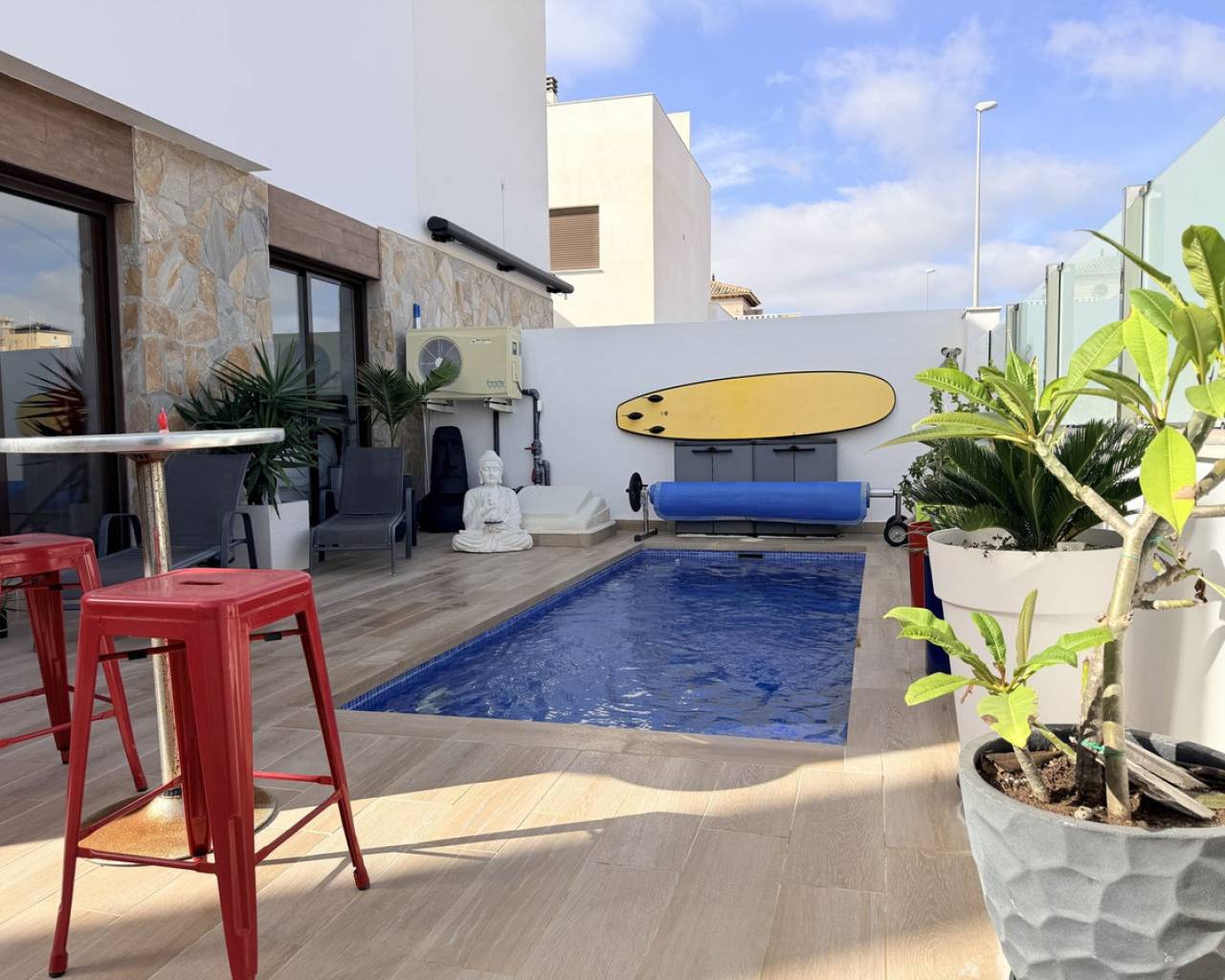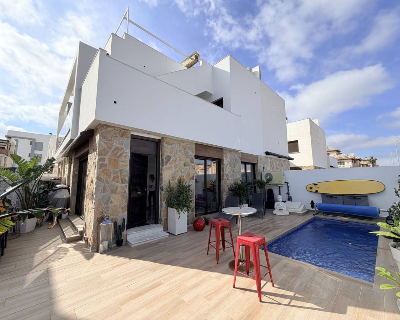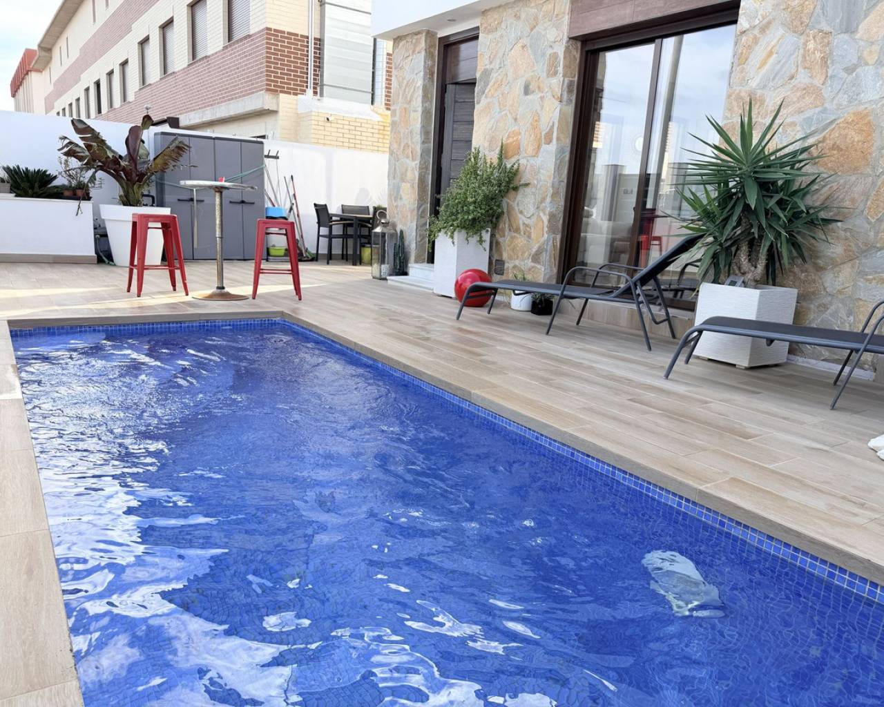 Casa Moderna en Venta – 349.000 € Descubra esta magnífica casa moderna con características ideales para residencia principal o una rentable inversión de alquiler. Consta de tres luminosos dormitorios y dos baños, perfectamente distribuidos para garantizar comodidad y funcionalidad. El moderno y espacioso salón se abre a varias terrazas, lo que le permite disfrutar plenamente del aire libre. La propiedad cuenta con piscina privada y solárium, perfectos para relajarse y disfrutar del clima durante todo el año. Un garaje en el sótano, ubicado a solo 20 metros de la casa, completa la propiedad, ofreciendo comodidad y seguridad. Su ubicación es ideal, tanto para vivir todo el año como para desarrollar un proyecto de alquiler. Se reúnen todas las condiciones para una inversión segura y atractiva.