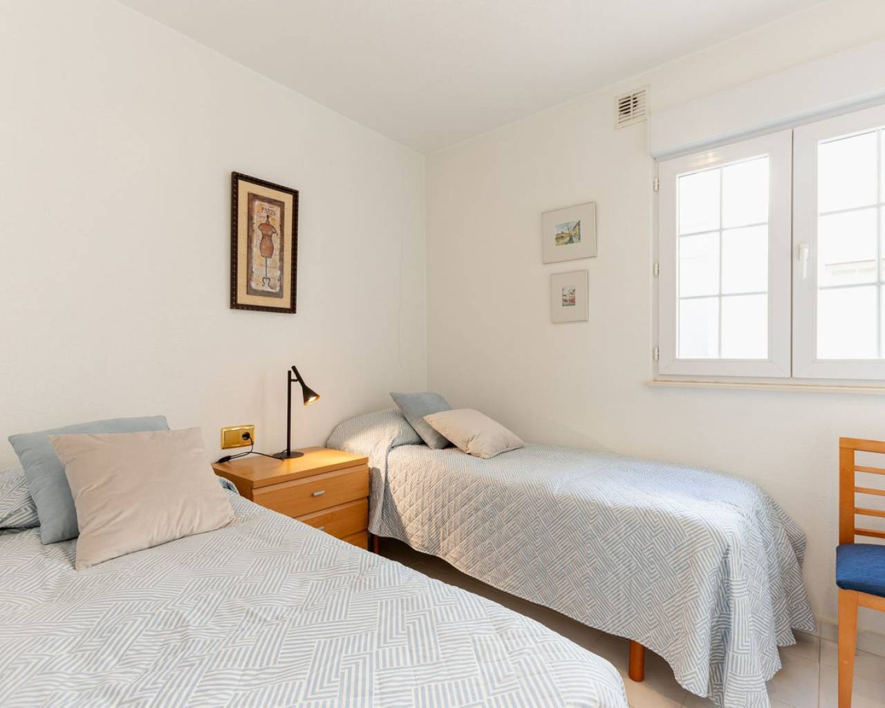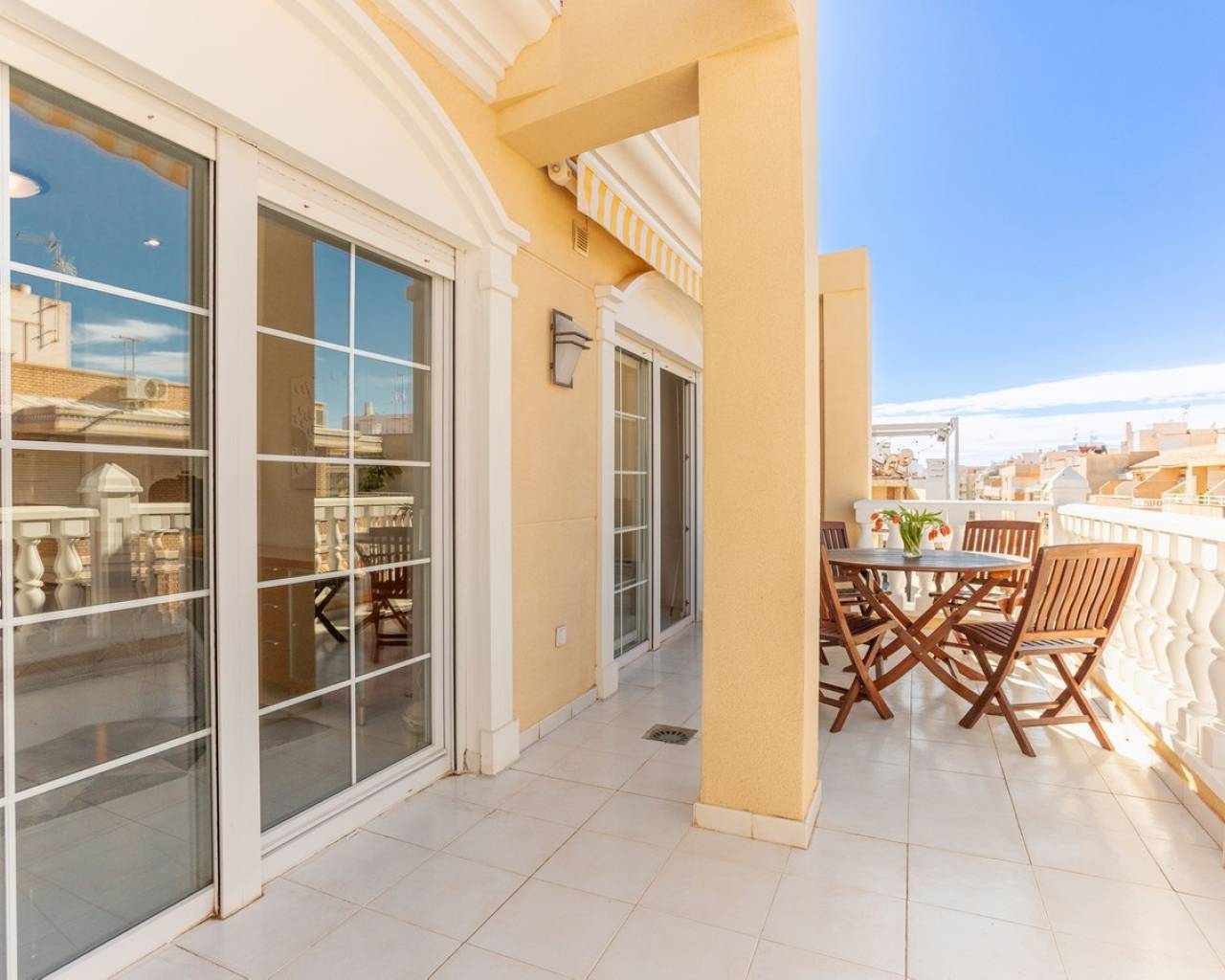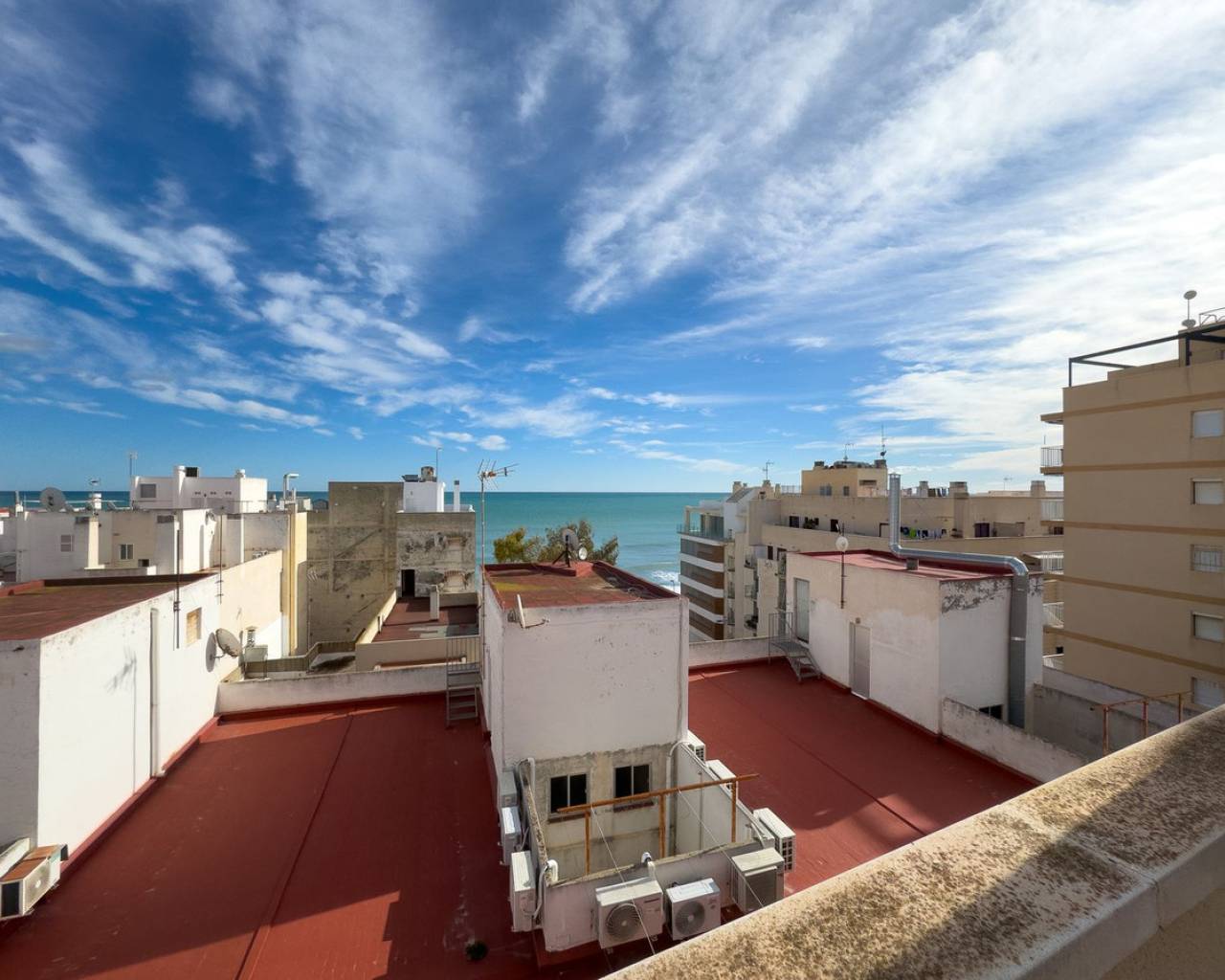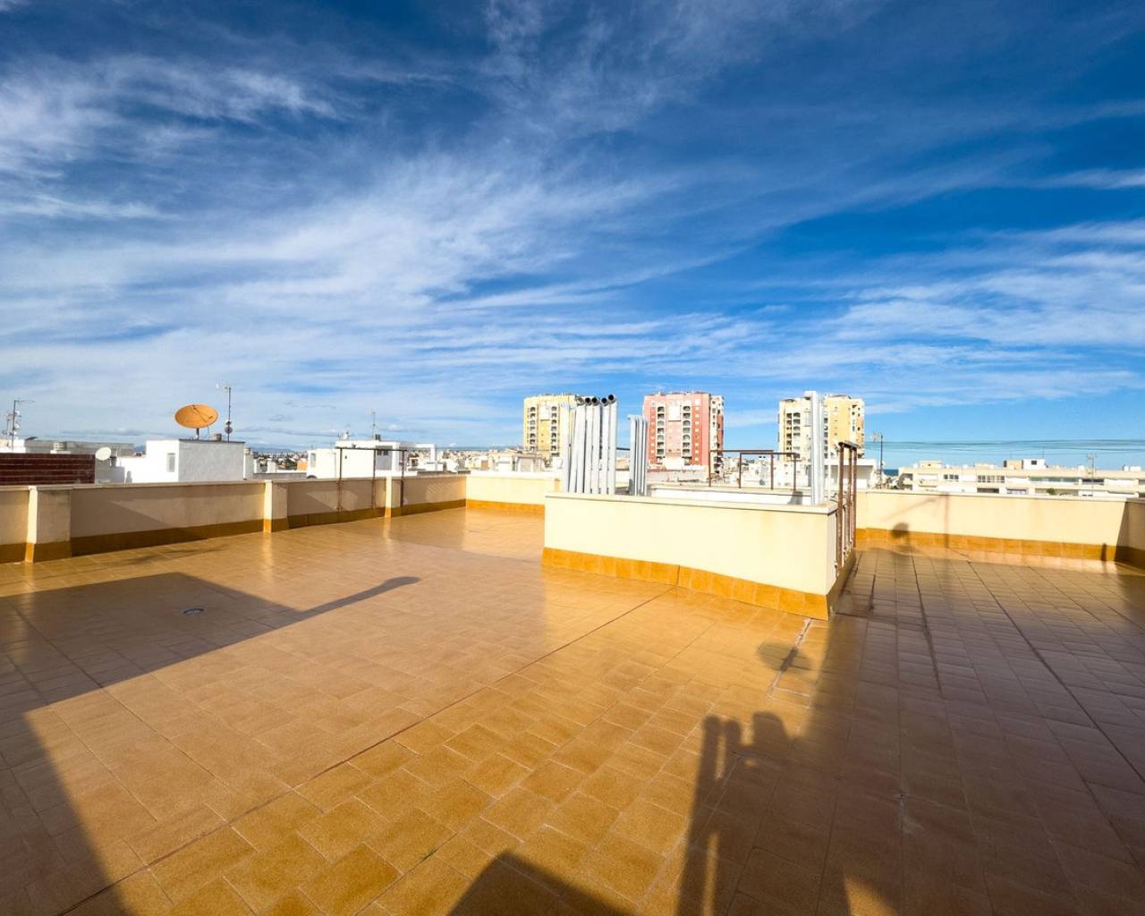 Este encantador ático de tres dormitorios, bellamente decorado, ¡puede ser justo lo que busca! Imagine vivir aquí bajo el sol español, rodeado de todos los servicios de la ciudad de Torrevieja y a solo cien metros de la playa de Los Locos. En la espaciosa cocina abierta, conectada al espacioso salón, podrá recibir incluso a un grupo más grande. Y desde su balcón, podrá admirar el sol de la tarde sobre los tejados de Torrevieja. Tres dormitorios y dos baños independientes garantizan la comodidad incluso para familias o grupos más grandes. Este edificio de apartamentos, finalizado en 2002, ha sido una joya de su época y, bajo el cuidado de sus actuales propietarios, este ático de 107 metros cuadrados ha conservado su dignidad y belleza. La comodidad en los meses más fríos del invierno se ve reforzada por la excepcional calefacción por suelo radiante en todas las habitaciones. Quienes sueñen con tomar el sol pueden disfrutar de una terraza comunitaria en la azotea, donde el sol brilla todo el día. Esta joya satisfará los deseos incluso del residente más exigente y es una excelente inversión, también para alquilar. No dude en contactarnos y organizaremos una visita. ¡Es fácil enamorarse de ella! Distancias: 100 m de la playa 50 m de una farmacia 500 m de una tienda grande 100 m de un quiosco 1,5 km del centro