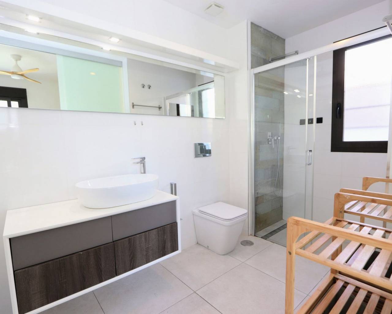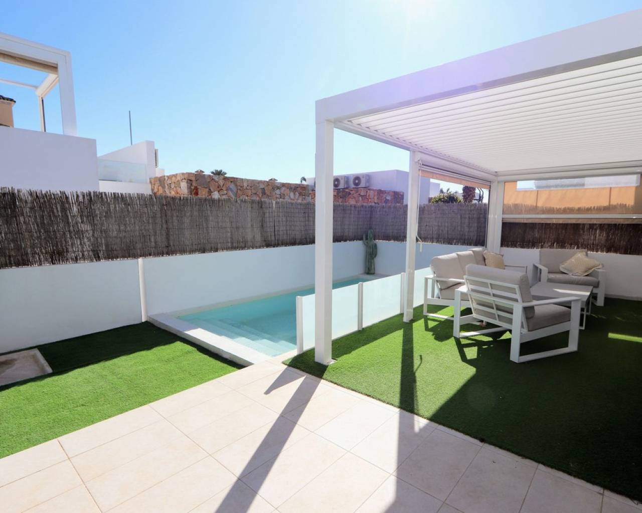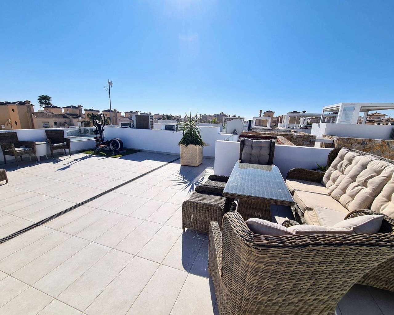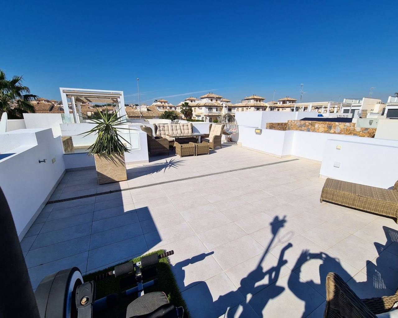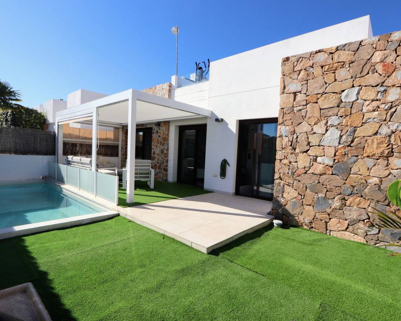 Nos enorgullece presentarles esta fabulosa villa independiente ubicada en Lomas de Cabo Roig. Esta propiedad de reventa de nueva construcción cuenta con tres dormitorios con armarios empotrados, dos baños, un amplio salón-comedor y una cocina totalmente equipada. Además, incluye aire acondicionado, terrazas privadas delanteras y traseras, solárium en la azotea, persianas eléctricas en la pérgola exterior y piscina privada. Lomas de Cabo Roig es una tranquila zona residencial en Orihuela Costa, Alicante, situada a 4 km al sur de Torrevieja. La zona ofrece una gran variedad de tiendas, restaurantes y bares. Encontrará numerosas playas con bandera azul en las cercanías, incluyendo la popular playa junto al puerto deportivo de Cabo Roig, que ofrece excelentes vistas. Para los amantes del golf, Cabo Roig goza de una ubicación ideal cerca de varios campos de golf de campeonato, incluyendo los tres campos de Villamartín y el mundialmente famoso complejo de golf La Manga.