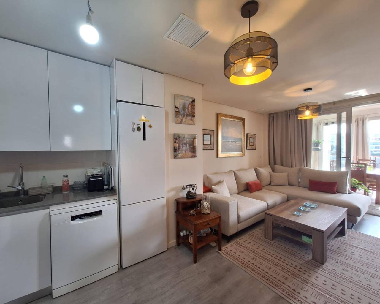 Descubre este espectacular apartamento ubicado en la privilegiada zona de Orihuela Costa, ideal para disfrutar del estilo de vida mediterráneo. Con una superficie construida de 93 m² y útil de 82 m², esta propiedad se encuentra lista para entrar a vivir. La orientación sureste permite que el espacio esté bañado por luz natural durante todo el día, creando un ambiente cálido y acogedor.El apartamento cuenta con dos habitaciones (una doble), perfectas tanto para familias como para quienes buscan comodidad adicional. Además dispone de dos baños completos, lo cual resulta muy práctico.En las áreas comunes podrás disfrutar no solo del sol junto a la piscina climatizada sino también divertirte jugando al ping pong gracias a las mesas disponibles dentro urbanización completa: parking privado incluido asegura tu tranquilidad y confort.Ubicado estratégicamente a tan solo 1600 metros del mar Mediterráneo,es perfecto aquellos amantes playa sin renunciar facilidades modernas.