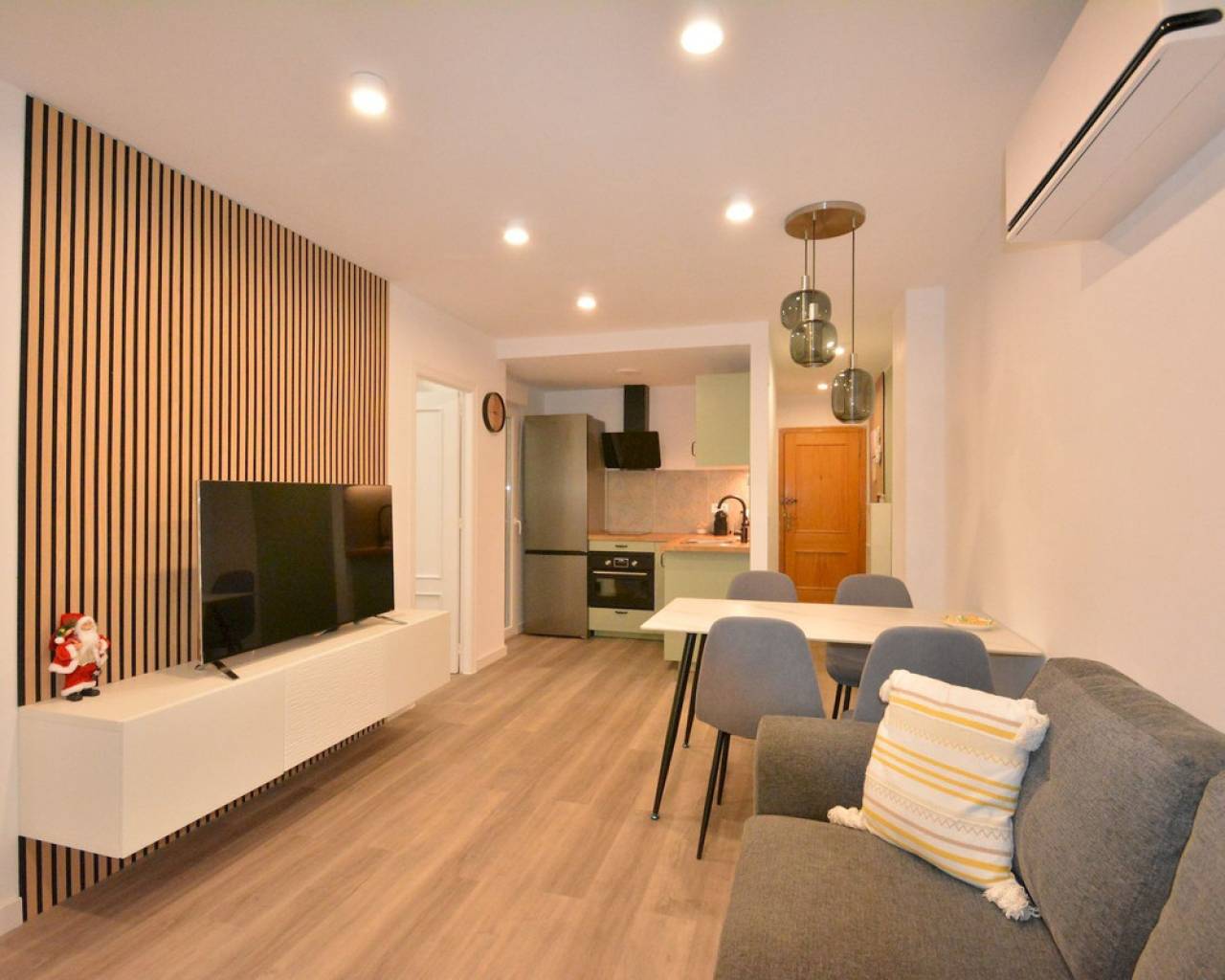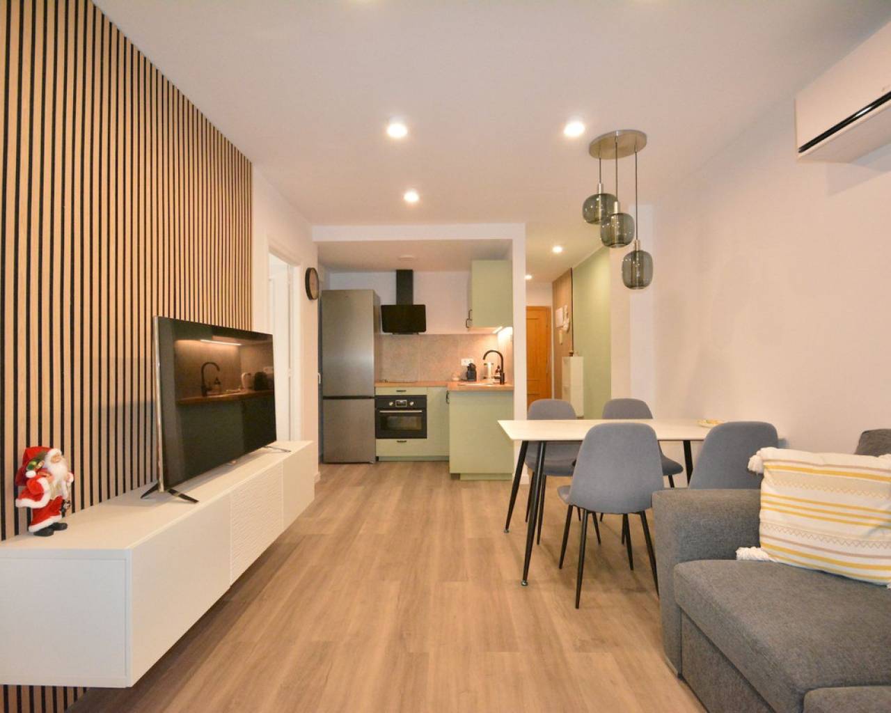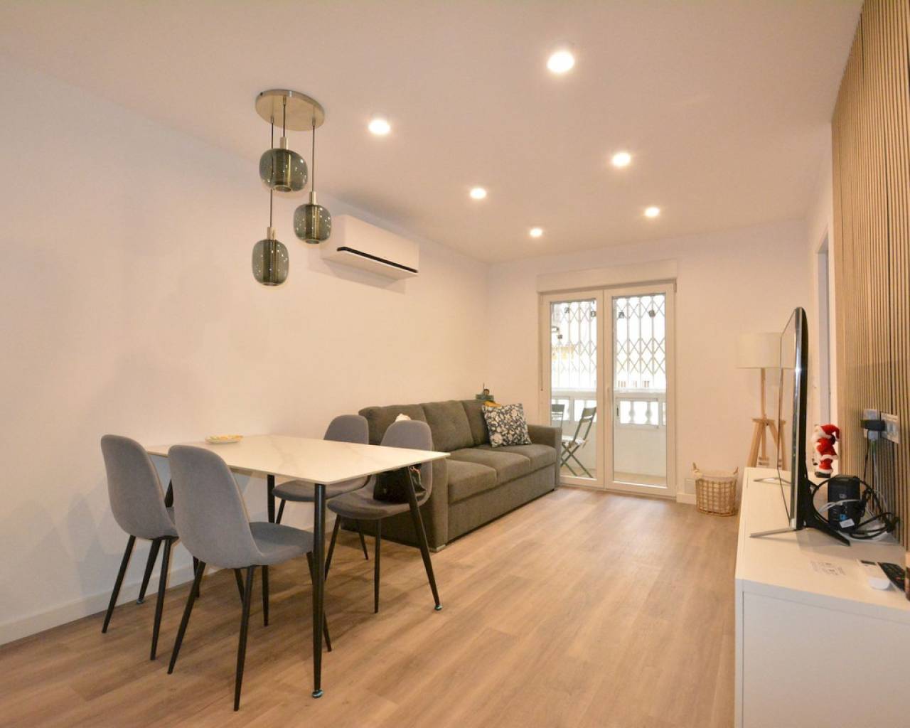 Este apartamento reformado en planta baja está ubicado en Torrevieja, a solo 200 metros de la Playa del Acequión y a 400 metros de la Playa de los Náufragos. La zona está consolidada y ofrece todos los servicios diarios a poca distancia a pie, incluyendo supermercados, restaurantes, farmacias y transporte público. Es un barrio costero agradable, ideal tanto para vacaciones como para vivir todo el año, con fácil acceso al paseo marítimo y al centro de la ciudad. La vivienda cuenta con 57 m2 construidos, con 44 m2 útiles interiores y un patio de 15 m2. Dispone de dos dormitorios y un baño. La cocina es de concepto abierto, conectada al salón, creando una distribución práctica y cómoda. El apartamento está situado en la planta baja de un edificio con ascensor. La propiedad ha sido completamente reformada con todos los elementos nuevos, incluyendo suelos, fontanería, instalación eléctrica, ventanas, sanitarios, cocina, muebles y electrodomésticos. El baño cuenta con suelo radiante, y el dormitorio principal tiene preinstalación para suelo radiante. Se han instalado unidades de aire acondicionado nuevas en cada estancia. La vivienda tiene orientación sur, lo que proporciona buena luz natural durante todo el día. También dispone de acceso y uso de un amplio patio interior, que ofrece espacio exterior adicional. El apartamento se vende tal como aparece en las fotos, excepto la lavadora. Los impuestos y otros gastos de compra no están incluidos en el precio.