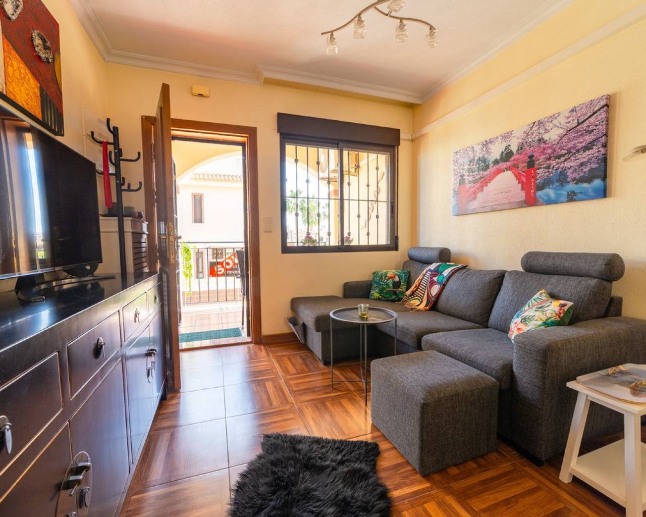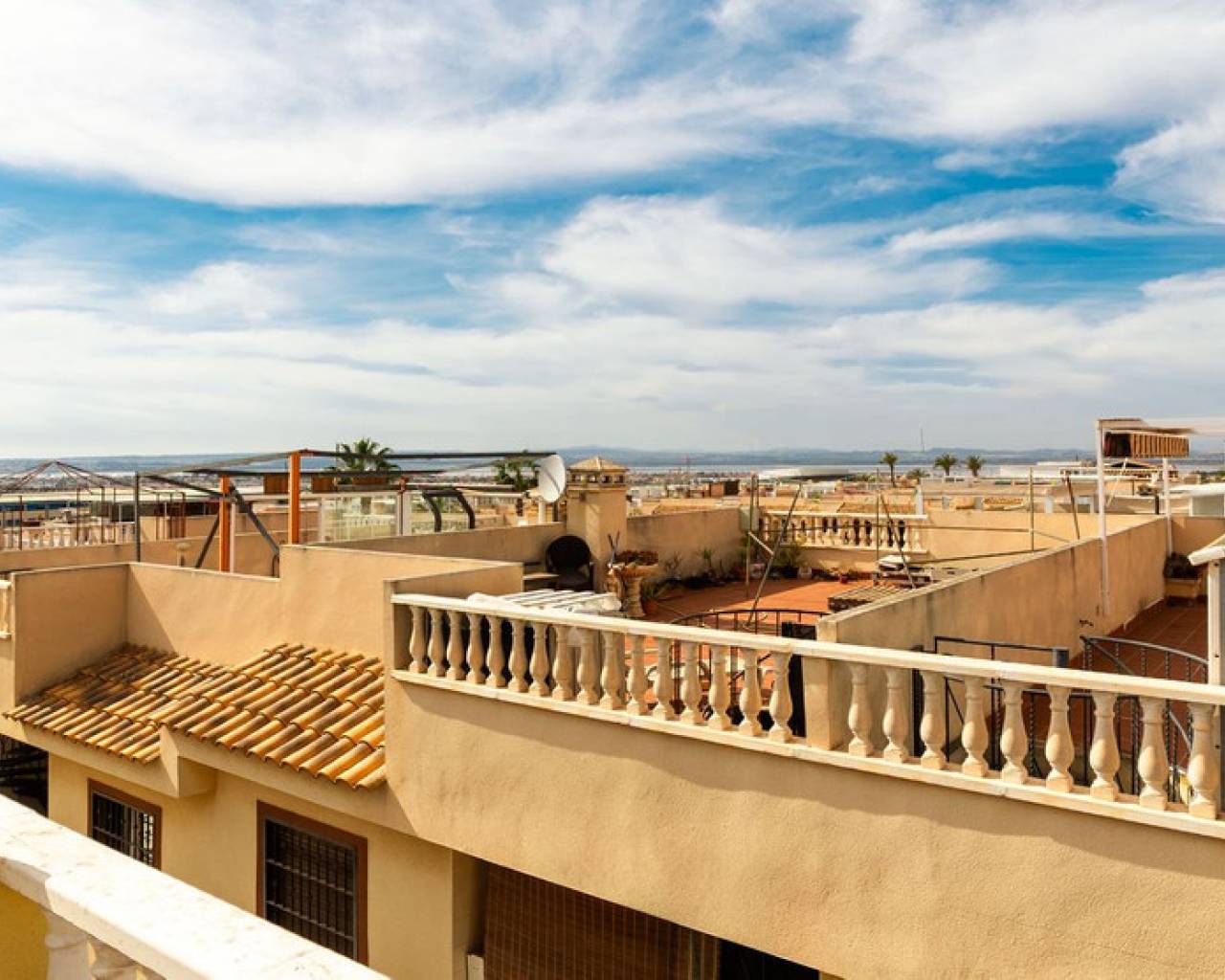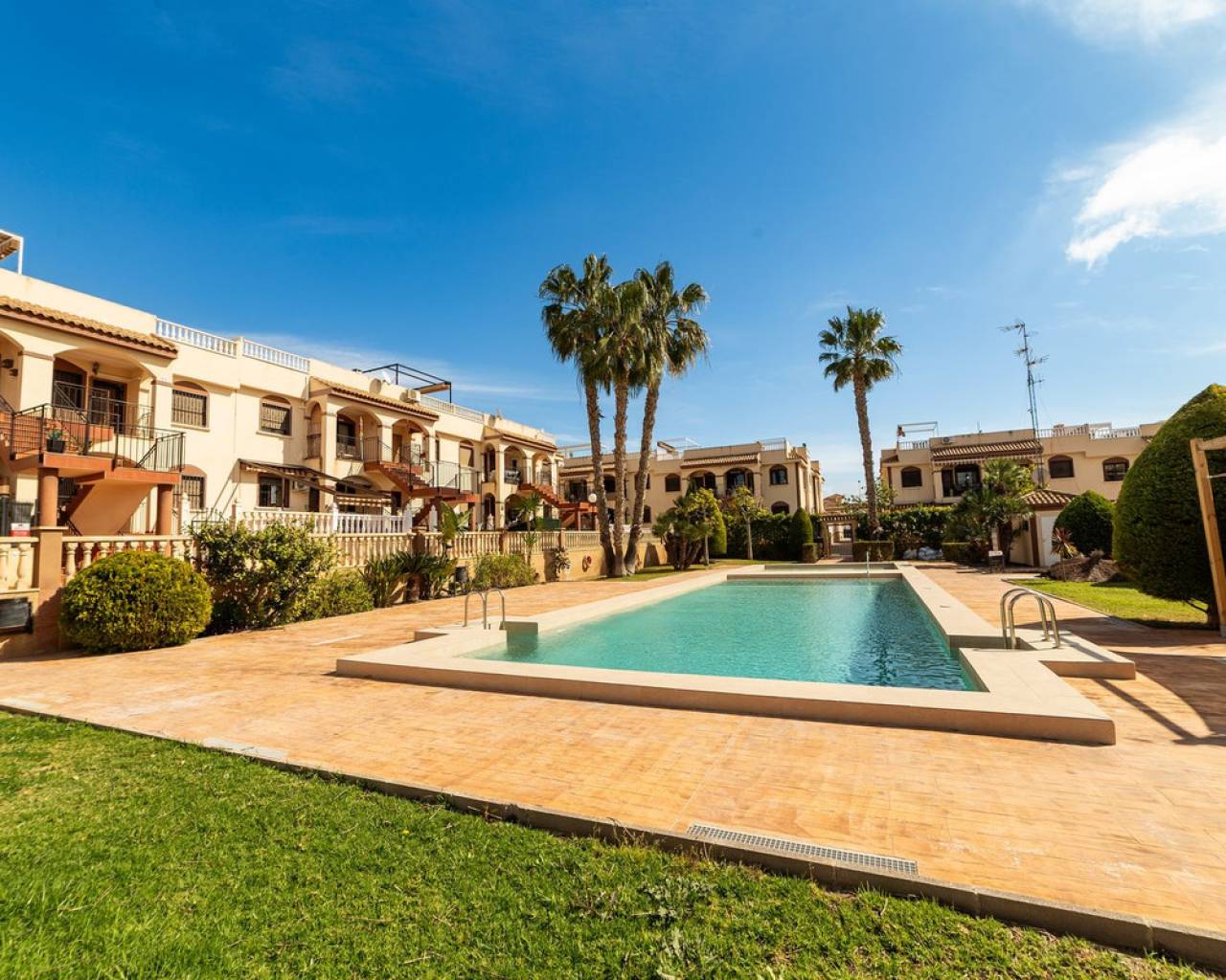 Welcome to a pleasant and well-planned home in popular Torrevieja, in the sought-after area of ​​Aguas Nuevas - a perfect home for those looking for easy-care living in the sun with proximity to services, nature and city life. Bienvenido a una casa agradable y bien diseñada en la popular Torrevieja, en la cotizada zona de Aguas Nuevas. Es el hogar perfecto para quienes buscan una vida tranquila y soleada, cerca de servicios, naturaleza y la vida urbana. La casa ofrece aproximadamente 55 metros cuadrados bien aprovechados con una distribución bien pensada que crea una sensación de amplitud y calidez. Cuenta con dos dormitorios tranquilos con buen espacio de almacenamiento y un baño fresco y funcional. El salón es luminoso y acogedor, con espacio natural para un sofá y una mesa de comedor, un lugar ideal para reunirse con familiares y amigos. Desde la casa se accede a un acogedor patio con una ubicación privilegiada frente a la piscina común. Aquí podrá disfrutar de una copa al atardecer bajo el sol con la piscina a poca distancia, ideal tanto para relajarse como para jugar. La zona está bien cuidada, es ideal para niños y es muy apreciada tanto por residentes permanentes como por turistas. Uno de los aspectos más destacados de la casa es la terraza privada en la azotea de aproximadamente 50 metros cuadrados. Aquí podrá disfrutar de una fantástica vista panorámica del resplandeciente lago salado y del paisaje circundante. La azotea ofrece amplio espacio para tumbonas, un salón y un comedor: un entorno ideal para largas tardes de barbacoa, relajarse al sol o cenar bajo un cielo estrellado. La ubicación es inmejorable, cerca de tiendas, restaurantes, colegios y todos los servicios imaginables. Aquí vivirá en una zona popular y vibrante, a poca distancia tanto del centro de la ciudad como de las playas. Si dispone de coche, también dispone de aparcamiento privado, lo que facilita y agiliza la vida diaria. Esta es una vivienda ideal tanto para residencia permanente como para vacaciones o inversión: una vivienda agradable y de fácil mantenimiento en una de las zonas más atractivas de Torrevieja, donde la calidad de vida y la comodidad van de la mano.