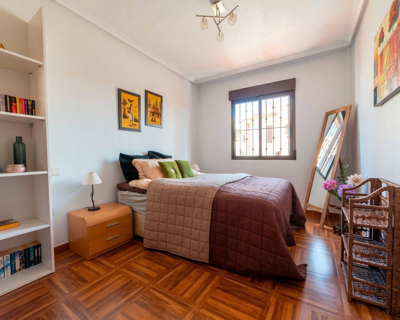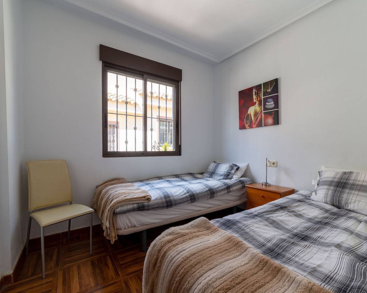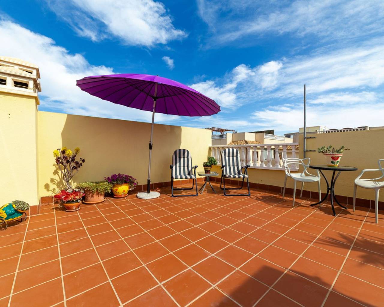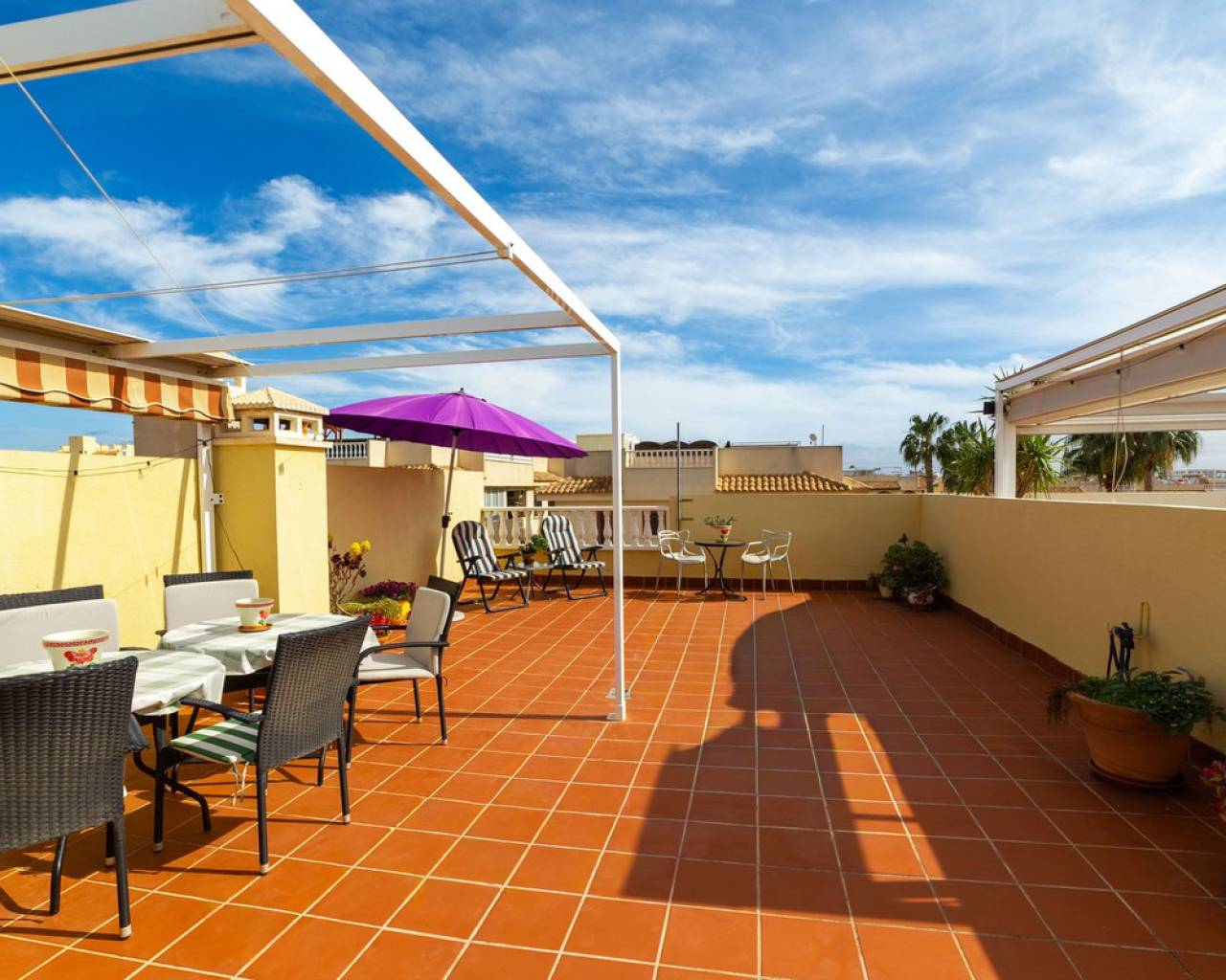 Welcome to a pleasant and well-planned home in popular Torrevieja, in the sought-after area of ​​Aguas Nuevas - a perfect home for those looking for easy-care living in the sun with proximity to services, nature and city life. Bienvenido a una casa agradable y bien diseñada en la popular Torrevieja, en la cotizada zona de Aguas Nuevas. Es el hogar perfecto para quienes buscan una vida tranquila y soleada, cerca de servicios, naturaleza y la vida urbana. La casa ofrece aproximadamente 55 metros cuadrados bien aprovechados con una distribución bien pensada que crea una sensación de amplitud y calidez. Cuenta con dos dormitorios tranquilos con buen espacio de almacenamiento y un baño fresco y funcional. El salón es luminoso y acogedor, con espacio natural para un sofá y una mesa de comedor, un lugar ideal para reunirse con familiares y amigos. Desde la casa se accede a un acogedor patio con una ubicación privilegiada frente a la piscina común. Aquí podrá disfrutar de una copa al atardecer bajo el sol con la piscina a poca distancia, ideal tanto para relajarse como para jugar. La zona está bien cuidada, es ideal para niños y es muy apreciada tanto por residentes permanentes como por turistas. Uno de los aspectos más destacados de la casa es la terraza privada en la azotea de aproximadamente 50 metros cuadrados. Aquí podrá disfrutar de una fantástica vista panorámica del resplandeciente lago salado y del paisaje circundante. La azotea ofrece amplio espacio para tumbonas, un salón y un comedor: un entorno ideal para largas tardes de barbacoa, relajarse al sol o cenar bajo un cielo estrellado. La ubicación es inmejorable, cerca de tiendas, restaurantes, colegios y todos los servicios imaginables. Aquí vivirá en una zona popular y vibrante, a poca distancia tanto del centro de la ciudad como de las playas. Si dispone de coche, también dispone de aparcamiento privado, lo que facilita y agiliza la vida diaria. Esta es una vivienda ideal tanto para residencia permanente como para vacaciones o inversión: una vivienda agradable y de fácil mantenimiento en una de las zonas más atractivas de Torrevieja, donde la calidad de vida y la comodidad van de la mano.