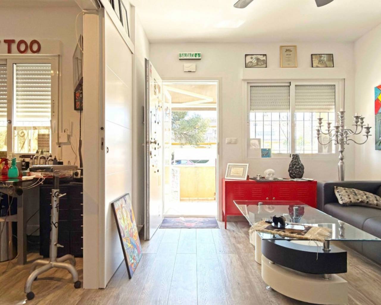 Ubicado en pleno corazón de La Zenia, este bungalow completamente renovado ofrece una oportunidad única de adquirir una propiedad versátil a poca distancia a pie de la playa y del centro comercial Zenia Boulevard. La vivienda ha sido recientemente renovada, incluyendo suelos nuevos, ventanas modernas, una cocina actualizada y un elegante baño, creando un ambiente luminoso y contemporáneo. El bungalow dispone de 2 dormitorios y 1 baño, todo distribuido en una sola planta, lo que lo convierte en una vivienda muy cómoda. En el exterior encontramos una terraza a nivel de suelo orientada al sur con aparcamiento privado, ideal para disfrutar del clima mediterráneo durante todo el año. La propiedad también cuenta con un porche cubierto y un solárium privado en la azotea, ofreciendo espacio adicional para relajarse, tomar el sol o disfrutar con invitados. Actualmente la propiedad se utiliza como estudio de tatuajes, pero puede volver a convertirse fácilmente en una vivienda residencial con pocas o ninguna modificación, lo que la convierte en una interesante oportunidad tanto para compradores privados como para inversores. Gracias a su ubicación privilegiada en La Zenia, cerca de playas, restaurantes, comercios y todos los servicios, esta propiedad representa una excelente oportunidad como vivienda vacacional, residencia permanente o incluso como concepto de negocio en la Costa Blanca.