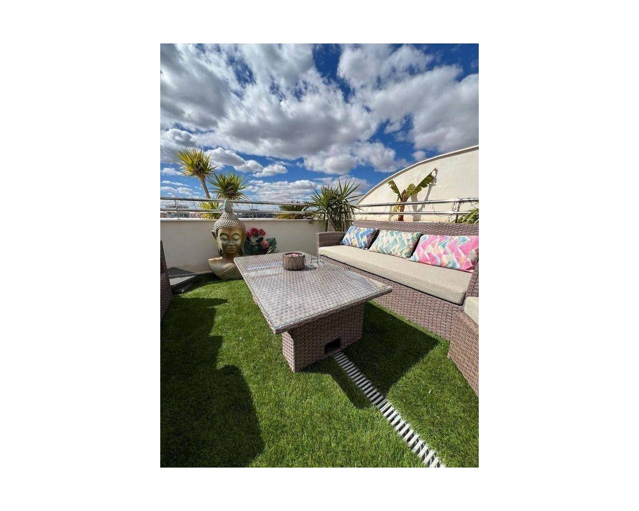Descubre este exclusivo ático de lujo ubicado en la prestigiosa urbanización San Juan Beach, en Pau 5, playa de san juan, una zona de las zonas mas codiciada de Alicante. Con sus amplias tres habitaciones y dos baños completos, esta propiedad ofrece un espacio elegante ideal para quienes buscan comodidad. La cocina completamente equipada resalta por su diseño contemporáneo y electrodomésticos de alta gama. Disfruta del impresionante ambiente que brinda su enorme terraza privada; un oasis elevado donde relajarte junto a un jacuzzi y disfrutar las panorámicas hacia el Mediterráneo. Este inmueble no solo destaca por su estética sino también por los lujosos servicios comunitarios como jardines bien cuidados, zonas deportivas y una fabulosa piscina rodeada de áreas recreativas perfectas para los días soleados. A tan solo unos minutos caminando podrás acceder a la reconocida playa San Juan, conocida por sus más de seis kilómetros arenales repletos de facilidades; además se beneficia del transporte público cercano al centro urbano así como colegios e instalaciones deportivas locales destacadas. Al vivir aquí tendrás calidad vida garantizada entre espacios arbolados ideales tanto si eres joven pareja o estás buscando tu retiro dorado. También es apto para mascotas gracias al parque canino próximo. DESTACAR que incluye trastero y plaza garaje subterraneoEste cálido hogar energéticamente eficiente(clase B)con aire acondicionado frío/calor por conductos. Aprovecha esta oportunidad única! Contáctanos ya.