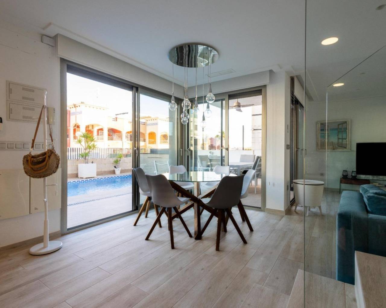 Chalet Exclusivo con Piscina Privada en Orihuela Costa. Vive el estilo de vida mediterráneo en este espectacular chalet de 119 m2 construidos, ubicado en el corazón de Orihuela Costa. Una propiedad diseñada para combinar confort, estilo y una ubicación privilegiada cerca de la costa de Alicante.. . Características Principales:. Distribución Funcional: 4 amplios dormitorios y 3 baños completos, ideales para familias o invitados. Parcela de 180 m2 con jardín privado, terraza y piscina propia, perfecta para disfrutar del sol durante todo el año.. Se entrega totalmente amueblado y equipado con aire acondicionado frío/calor.. Incluye trastero para almacenamiento adicional y sistema de alarma instalado.. Ya sea como residencia permanente o como inversión para vacaciones, este chalet ofrece la tranquilidad de la naturaleza sin renunciar a la cercanía de todos los servicios.. ¡Tu nueva vida en el paraíso te espera! Contáctanos para programar una visita.
