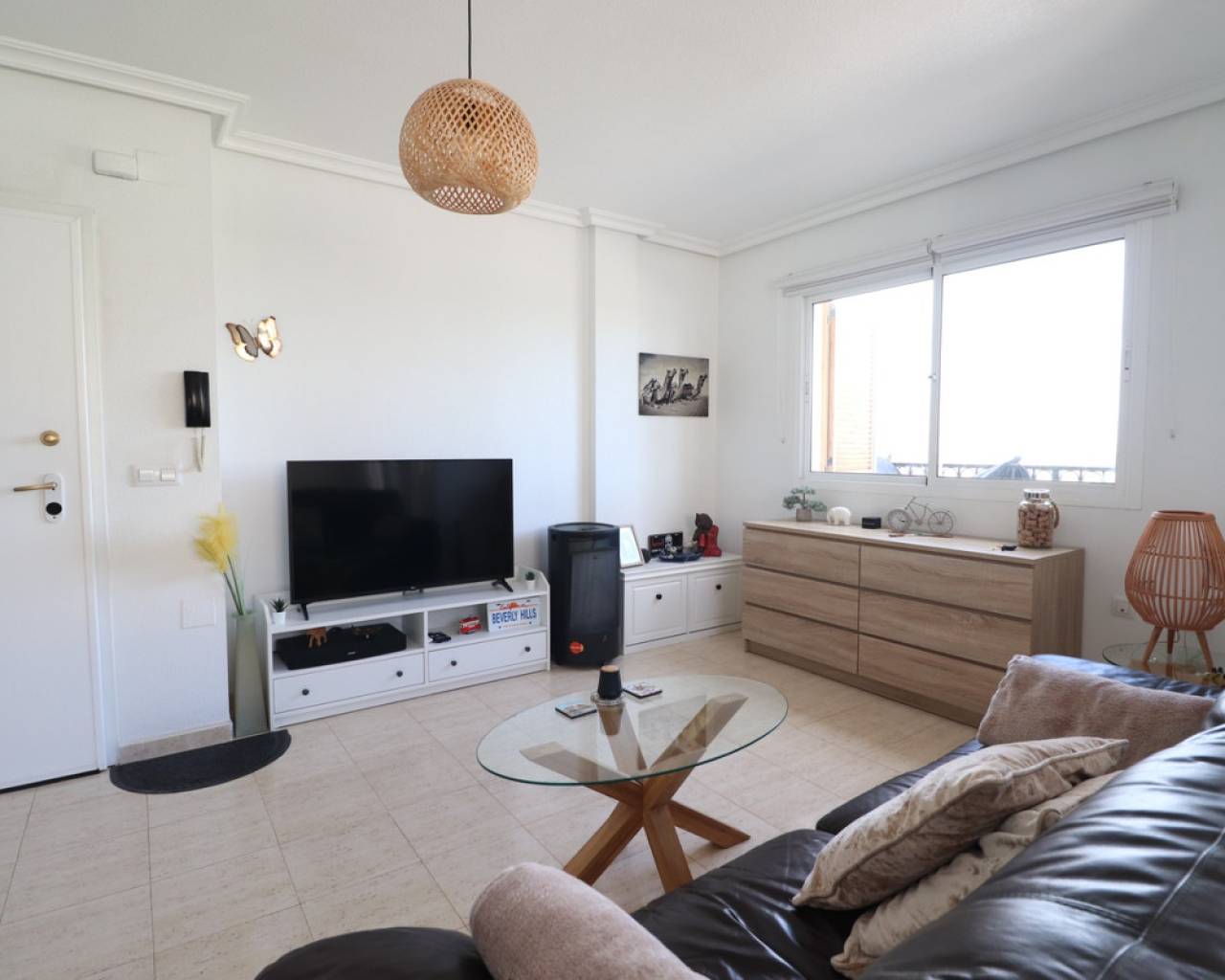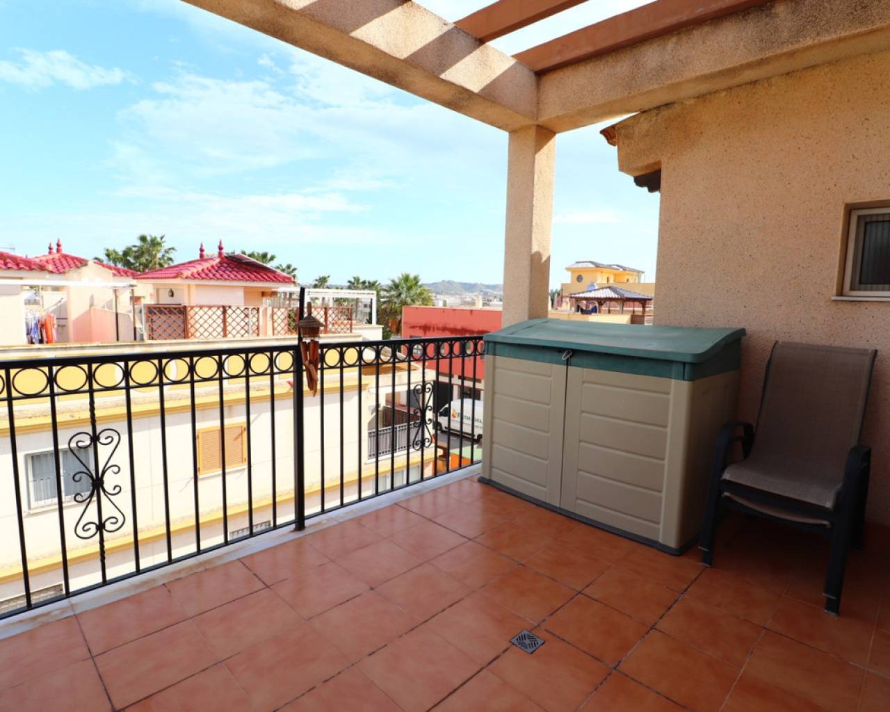 Este espacioso apartamento dúplex de dos dormitorios, situado en la primera planta de Daya Vieja, se encuentra con vistas al campo, a solo un par de minutos a pie de un parque y una popular cafetería. Ubicado en este tradicional pueblo español, también encontrará un campo deportivo con piscina, un centro médico y una farmacia en las inmediaciones. Las localidades de Rojales, donde se encuentra el campo de golf La Marquesa, y Benijófar están a solo 5 minutos en coche, mientras que las hermosas playas de la Costa Blanca Sur se encuentran a unos 15 minutos. Este apartamento de 94 m² se encuentra en la primera planta y se distribuye en dos plantas. La planta principal cuenta con un salón de planta abierta con aire acondicionado y puertas correderas de doble acristalamiento que dan a una terraza con preciosas vistas al campo. Un amplio arco separa la cocina equipada, y también hay un baño familiar con ducha en esta planta. En la planta superior hay dos dormitorios dobles, ambos con armarios empotrados, y el dormitorio principal tiene acceso a una terraza privada. Hay otro baño familiar con ducha en esta planta. Unas escaleras interiores conducen al solárium privado, con amplias vistas al campo y a la montaña: el espacio perfecto para relajarse y disfrutar del entorno. Los residentes también tienen acceso a una piscina comunitaria. Una magnífica oportunidad para una casa de vacaciones o residencia permanente en el corazón de la Costa Blanca Sur.