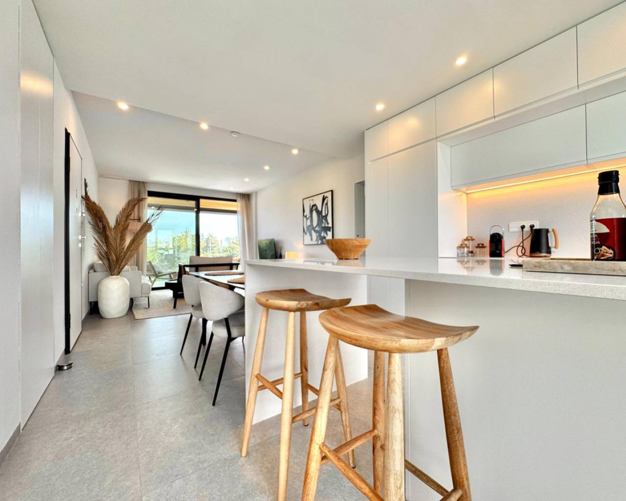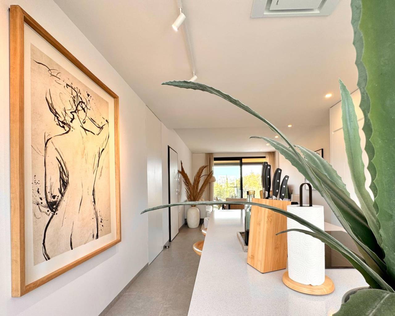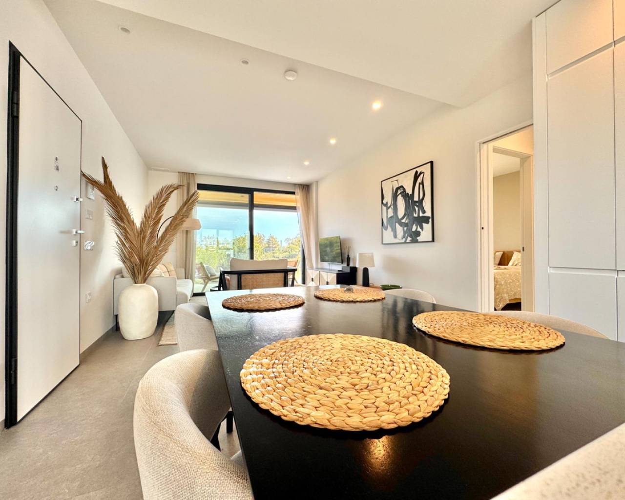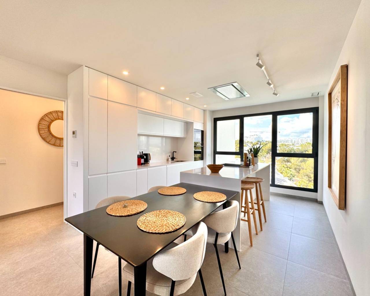 Luminoso y moderno apartamento de 2 dormitorios en Las Colinas Golf Entra en este apartamento luminoso y moderno donde el confort, el estilo y la luz se combinan a la perfección. La cocina abierta y el salón crean un espacio acogedor para cocinar, relajarse o pasar tiempo con la familia y amigos, con mucha luz natural. Desde el salón se accede directamente al balcón soleado, perfecto para un café por la mañana, una copa por la tarde o un momento de tranquilidad con un libro. El dormitorio principal cuenta con baño en suite y acceso directo al balcón, proporcionando un retiro tranquilo al final del día. El segundo dormitorio es versátil y se puede usar como habitación de invitados, oficina o espacio adicional para familiares y amigos. Entre las comodidades adicionales se incluyen un garaje privado, trastero y acceso a una piscina comunitaria bien cuidada, ideal para refrescarse en días cálidos o disfrutar del sol español. Ubicado en un entorno tranquilo pero cerca de restaurantes, cafés, supermercados y hermosas playas, este apartamento ofrece el equilibrio perfecto entre vivir relajado y tener todo al alcance.