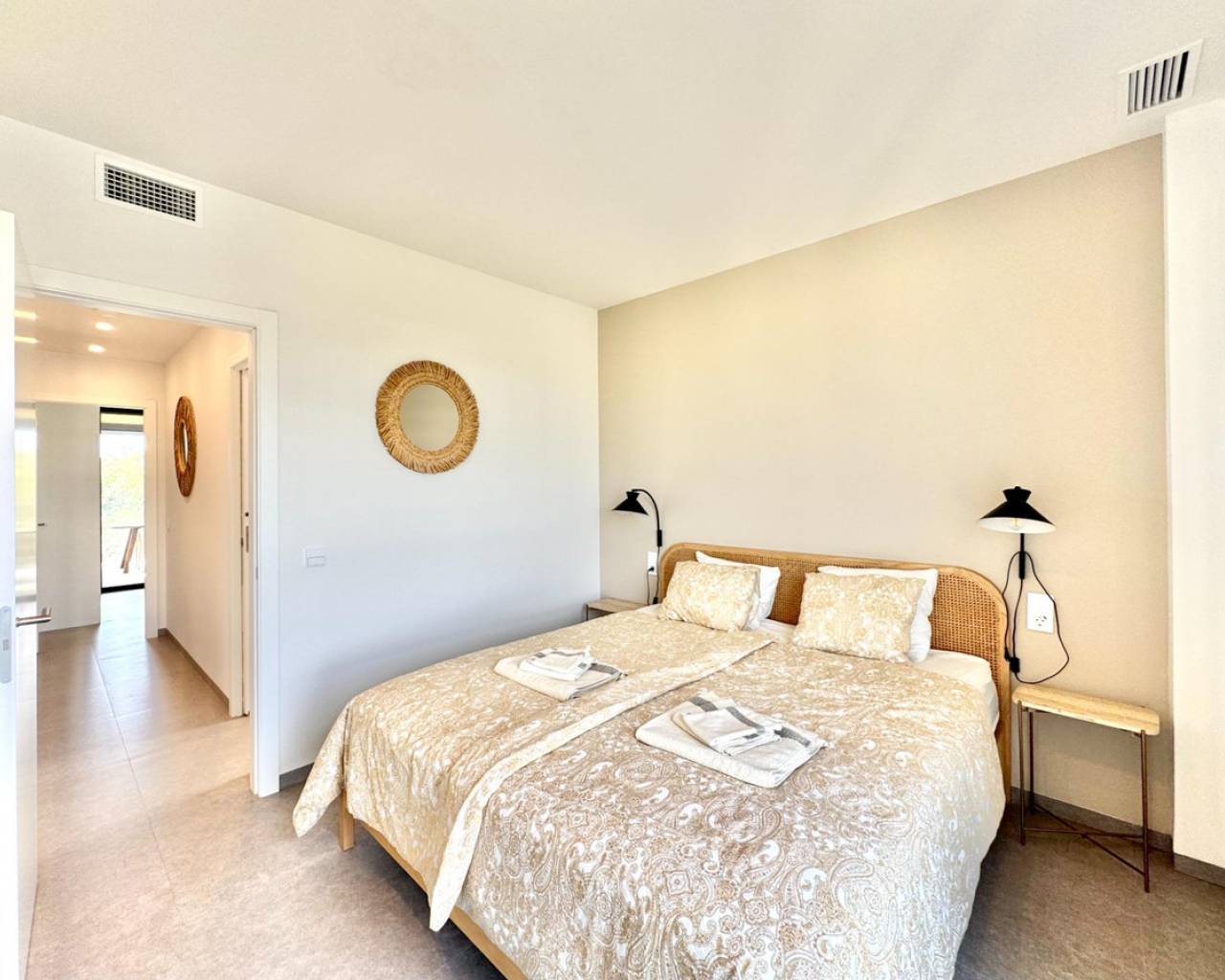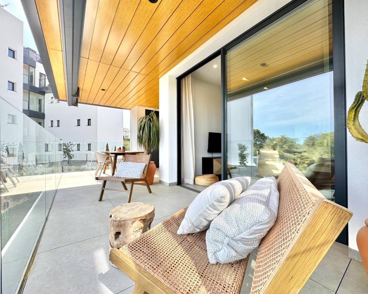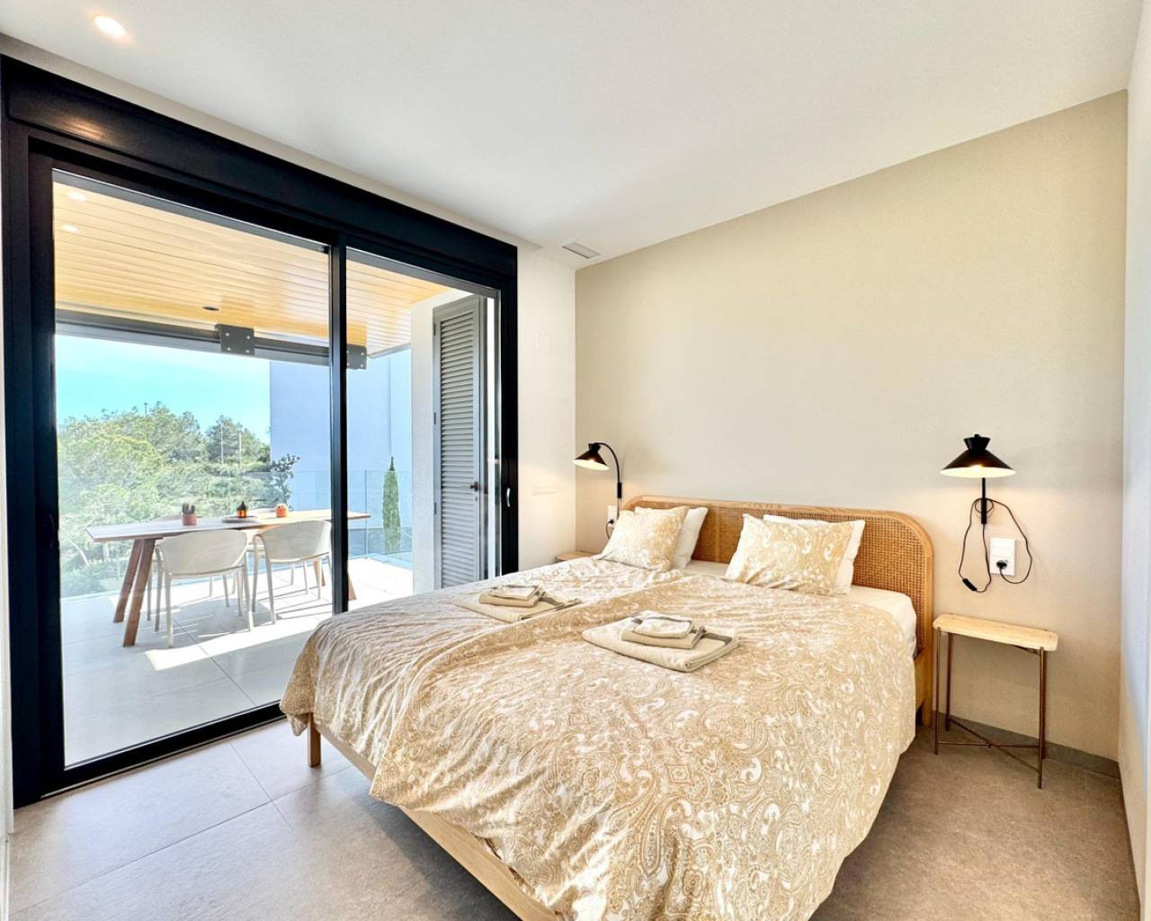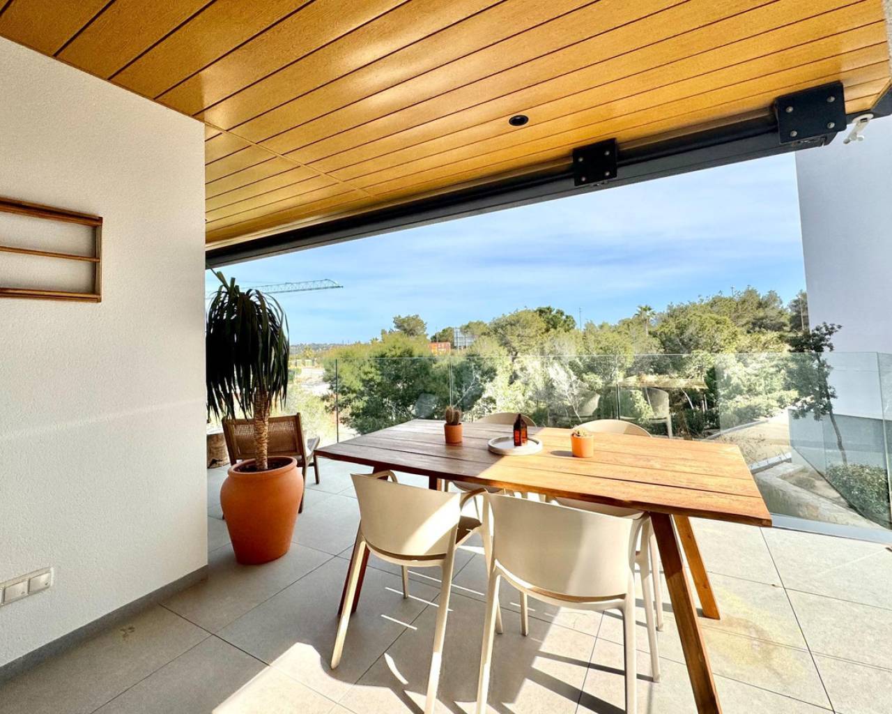 Luminoso y moderno apartamento de 2 dormitorios en Las Colinas Golf Entra en este apartamento luminoso y moderno donde el confort, el estilo y la luz se combinan a la perfección. La cocina abierta y el salón crean un espacio acogedor para cocinar, relajarse o pasar tiempo con la familia y amigos, con mucha luz natural. Desde el salón se accede directamente al balcón soleado, perfecto para un café por la mañana, una copa por la tarde o un momento de tranquilidad con un libro. El dormitorio principal cuenta con baño en suite y acceso directo al balcón, proporcionando un retiro tranquilo al final del día. El segundo dormitorio es versátil y se puede usar como habitación de invitados, oficina o espacio adicional para familiares y amigos. Entre las comodidades adicionales se incluyen un garaje privado, trastero y acceso a una piscina comunitaria bien cuidada, ideal para refrescarse en días cálidos o disfrutar del sol español. Ubicado en un entorno tranquilo pero cerca de restaurantes, cafés, supermercados y hermosas playas, este apartamento ofrece el equilibrio perfecto entre vivir relajado y tener todo al alcance.