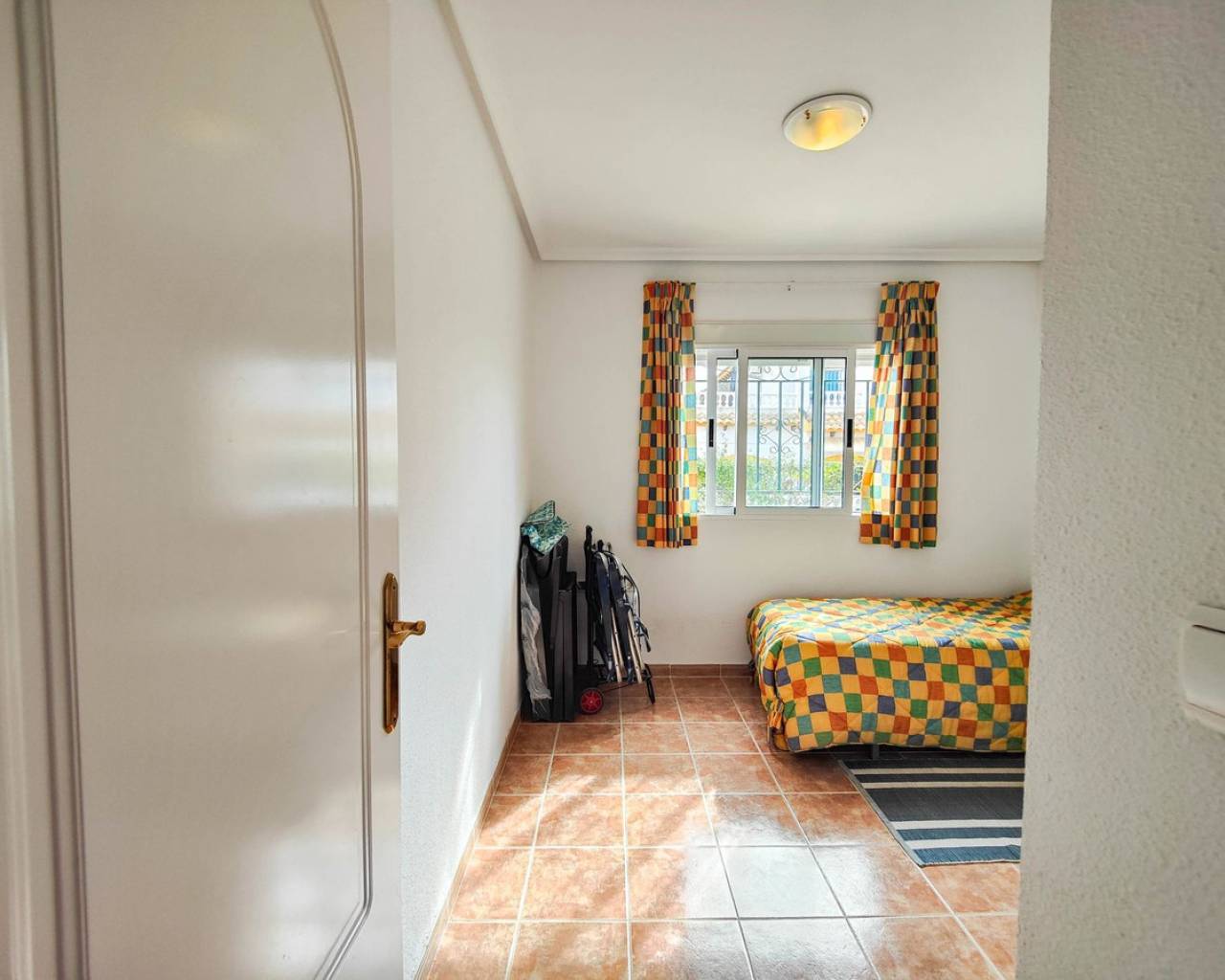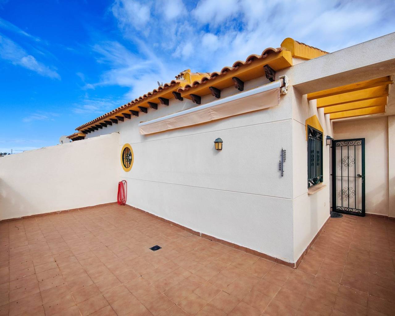 Vivienda adosada de 3 dormitorios y 2 baños en Punta Prima. Parcela en esquina, solárium con vistas, piscina comunitaria y cerca de playas y servicios. Fantástica vivienda adosada en esquina en Punta Prima, Orihuela Costa, ubicada en una zona tranquila junto a una agradable zona verde y a pocos minutos de todos los servicios y playas. La propiedad destaca por su excelente orientación suroeste, lo que garantiza sol durante gran parte del día, así como por su parcela privada de aproximadamente 90 m² con entrada para coche y un jardín con gran privacidad. Dispone de 3 dormitorios y 2 baños, distribuidos de la siguiente manera: Planta baja: Luminoso salón-comedor Cocina equipada 2 dormitorios 1 baño completo Planta alta: Dormitorio principal Baño en suite Un punto muy positivo es la comodidad de contar con dormitorios y un baño completo en la planta baja, ideal para familias, personas mayores o invitados. La vivienda se vende amueblada y equipada, cuenta con aire acondicionado en uno de los dormitorios, y se encuentra en muy buen estado general. En la parte superior encontramos un amplio solárium con vistas a la zona verde y ligeras vistas al mar, perfecto para disfrutar del clima mediterráneo. La urbanización ofrece piscina comunitaria y se ubica cerca de supermercados, restaurantes, bares, centros comerciales y todos los servicios necesarios. Una oportunidad ideal tanto como residencia habitual, segunda vivienda o inversión.