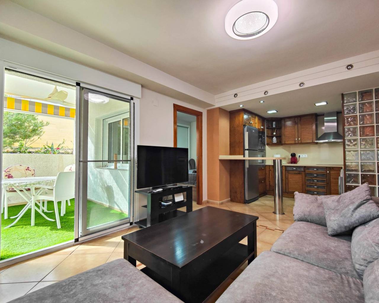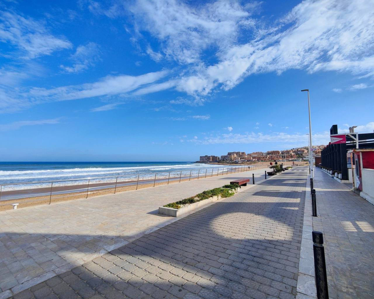 Exclusivo apartamento en planta baja y esquina orientado al sur en venta en un residencial privado ubicado en primera línea de la la playa de La Mata, una de las mejores zonas de Torrevieja. La vivienda destaca por su amplia terraza orientada al sur de unos 18 m², con agradables vistas a las zonas verdes del residencial. Un espacio perfecto para disfrutar del sol durante todo el año, desayunar al aire libre o relajarse tras un día de playa. El apartamento cuenta con 2 dormitorios con armarios empotrados, 1 baño renovado con ducha de obra y una cocina americana integrada en el salón. La vivienda ha sido parcialmente reformada, incluyendo ventanas, suelos, instalación eléctrica y baño. Se vende amueblado y con electrodomésticos. Además cuenta con muchos extras como aire acondicionado, calefacción eléctrica, persianas eléctricas, toldos, puerta de seguridad, etc. El residencial ofrece un entorno privilegiado con piscina comunitaria rodeada de césped natural, palmeras y un estanque, creando un auténtico oasis mediterráneo donde relajarse y disfrutar del clima de la Costa Blanca. También cuenta con conserje, una zona de aparcamiento comunitario, un enorme solárium comunitario con vistas directas a la playa de La Mata y una zona social. Su ubicación es inmejorable: el edificio está en primera línea, con acceso directo al paseo marítimo y a la playa, que se encuentran a tan solo 50 metros del apartamento. Una oportunidad ideal tanto como vivienda vacacional, inversión o residencia permanente junto al mar.
