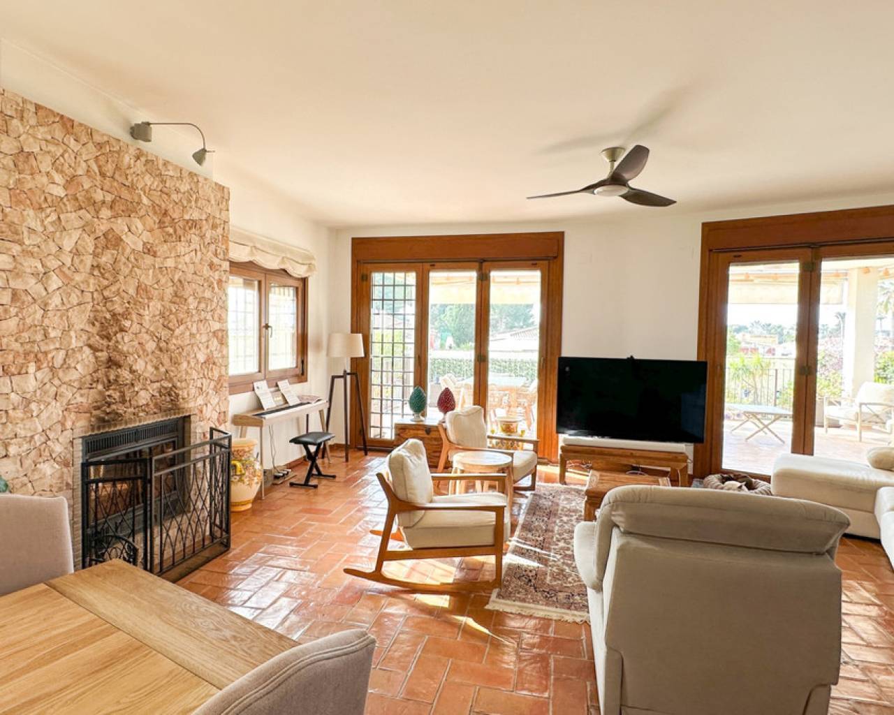 Esta excepcional villa de estilo mediterráneo se encuentra a solo 800 metros del mar, en una de las zonas residenciales más prestigiosas de Dehesa de Campoamor, en la codiciada Orihuela Costa. Con amplios espacios, total privacidad y acabados de alta gama, es ideal como residencia habitual, elegante segunda vivienda o exclusivo refugio junto al mar. Ubicada sobre una parcela privada de 725 m², la villa ofrece 450 m² construidos distribuidos en tres niveles. Su orientación sur garantiza una excelente luminosidad durante todo el año. Construida en 2006 y completamente renovada en 2020. Dispone de 7 dormitorios y 5 baños: Sótano: 2 dormitorios y 1 bañoPlanta baja: 3 dormitorios y 2 bañosPrimera planta: 2 dormitorios y 2 baños Suite principal de 32 m² con baño en suite y vestidor. Jardín con piscina privada de 27 m². Garaje para tres coches. Cocina de 23 m² de la marca Schmidt. Extras: aire acondicionado, placas solares, cargador eléctrico, sistema de seguridad, parcela en esquina, suelos de terracota, detalles en hierro forjado. Acceso a zona comunitaria exclusiva con instalaciones deportivas y restaurante privado.